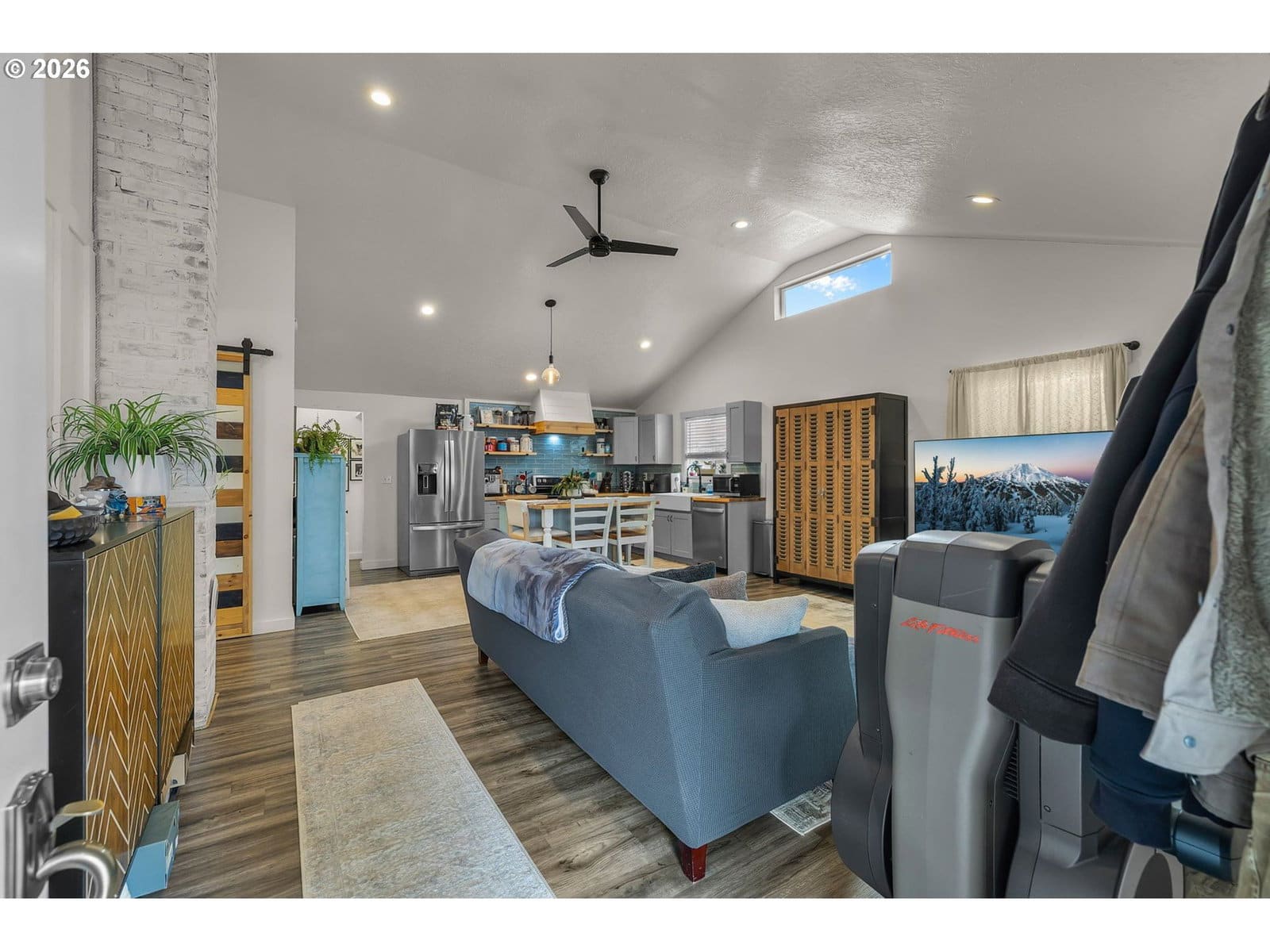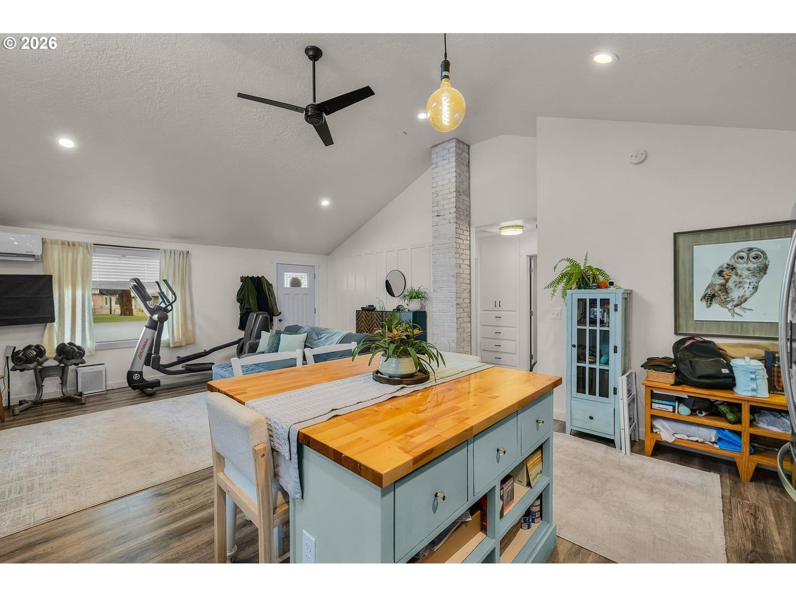 Charming Craftsman-Style Home in John Day!Welcome to this beautifully designed Craftsman-style home located in the heart of John Day. Featuring an open-concept layout with vaulted ceilings and abundant natural light, this home offers a warm and inviting atmosphere from the moment you step inside.The thoughtfully designed kitchen is a true centerpiece, complete with butcher block countertops, a farmhouse sink, tiled backsplash, and range with hood—perfect for cooking and entertaining. The kitchen flows seamlessly into the spacious living room, creating an ideal space for gatherings and everyday living.A convenient utility/laundry room provides additional storage and direct access to the back deck, making outdoor living easy and accessible. The spacious primary suite offers a relaxing retreat with a double vanity, large walk-in closet, and generous stall shower. Two comfortable guest bedrooms and a full guest bath provide plenty of space for family or visitors.Comfort is ensured year-round with a mini-split heating and cooling system, ceiling fans, and double-pane vinyl-framed windows. Interior finishes include a tasteful blend of tile, carpet, and vinyl flooring. The home is topped with a durable composition roof for added peace of mind.Step outside to enjoy the covered front porch, perfect for morning coffee or evening relaxation. The landscaped yard features a brick retaining wall that adds both beauty and functionality. The fully fenced backyard with patio offering a private space to unwind. Additional exterior features include a carport and graveled parking area for extra convenience.This well-appointed Craftsman home blends classic style with modern comfort—don’t miss the opportunity to make it yours!