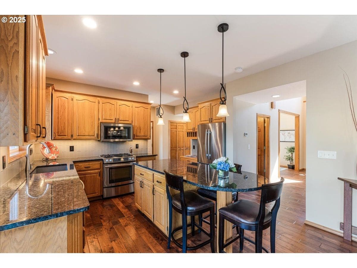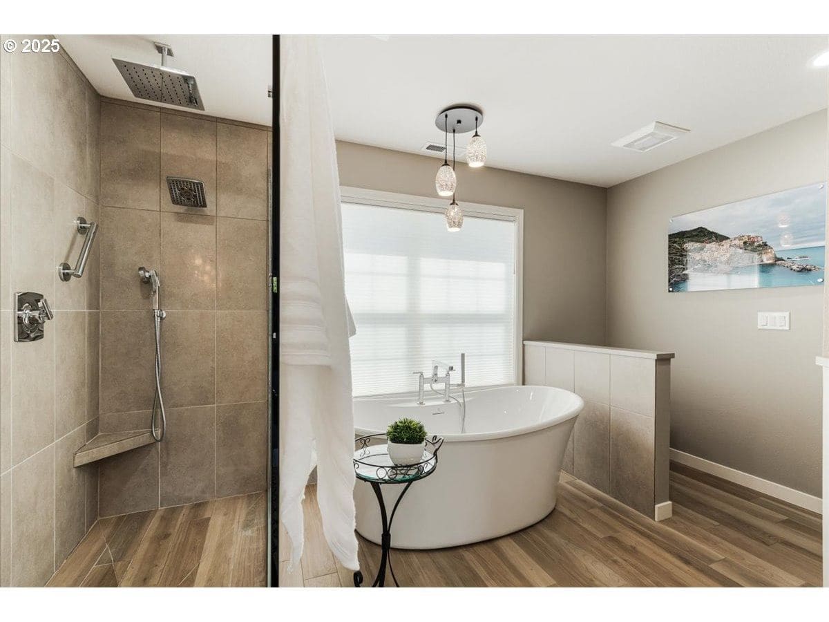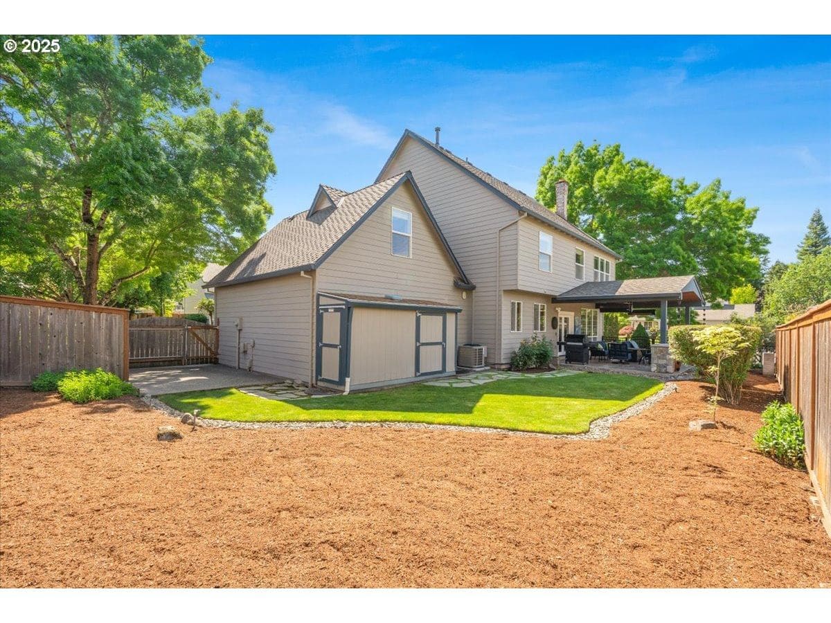 Year-round covered outdoor living and a luxury spa-style primary bath define this beautifully maintained one-owner home in Bethany’s desirable Emerald Estates. Ideally located near Intel, Nike, Columbia Sportswear, Bethany Village, Hwy 26, miles of walking/biking trails, and Pirate Park, this home sits on a professionally landscaped .19-acre lot designed for exceptional indoor-outdoor living. The approx. 360 sq ft covered outdoor space features a tongue-and-groove cedar ceiling, stamped concrete, ceiling fan with LED lighting, gas BBQ hookup, and commercial-grade natural gas infrared heaters—perfect for all-season enjoyment. The primary suite is a true retreat with heated tile floors, heated towel rack, curbless walk-in shower with multiple shower heads, soaking tub, multifunction bidet toilet with heated seat, custom cabinetry, and a wall-hung dual vanity with under-cabinet lighting. The flexible floor plan offers 4 bedrooms plus a bonus room upstairs and a formal dining room on the main level. Additional features include attic storage, space for a boat or trailer, garden shed, and a finished garage with epoxy floors and overhead storage. Recent updates include new A/C and high-efficiency furnace (2024), water heater (2024), 50-year roof, fresh paint, new carpet, remodeled primary bath, and outdoor living addition. Move-in ready in an exceptional location.