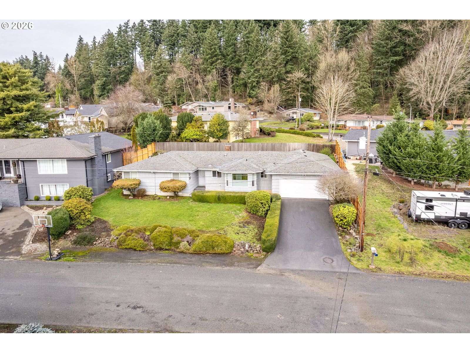 One level home located on a quiet dead end street in the desirable Cascade Way neighborhood. 4 Bedroom, 1.75 bath home. Living room with wood burning fireplace, Family room with woodstove plus a rec room with a pool table. Kitchen with wall oven, cooktop and dining area. Primary bedroom has 2 closets- one a walk in. Sewer line was replaced in 2005. Large private fenced lot. Double car garage. Walking distance to schools, restaurants and shopping.