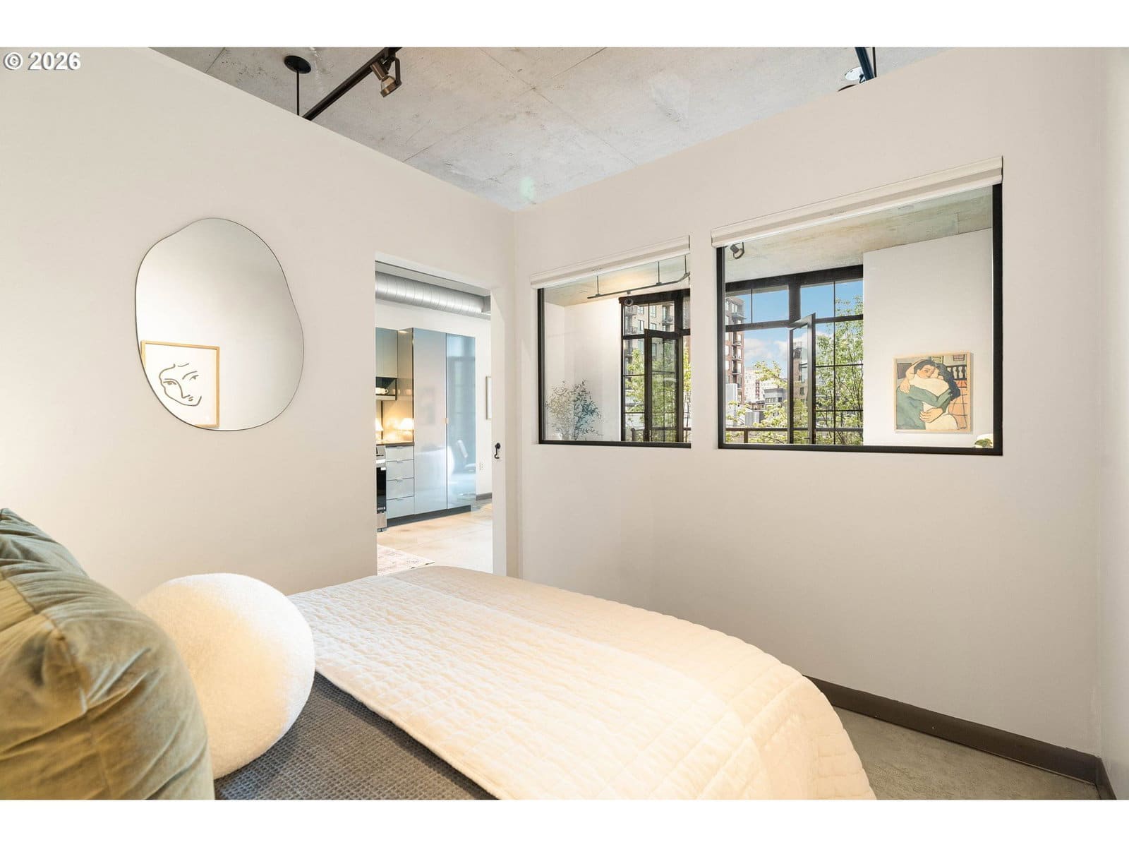 Live large by living simply. This beautifully styled 663 sq ft residence at Streetcar Lofts proves that less space can mean more life. Thoughtfully designed with soaring ceilings, expansive windows, and a bright, open layout, this home feels anything but small—inviting you to slow down, spread out, and truly enjoy where you live. A private balcony overlooking the landscaped courtyard offers the best of both worlds—lush greenery and city energy—while maintaining a sense of calm and privacy that’s rare in urban living.Set in the heart of Portland’s coveted Pearl District, you’re surrounded by the best of the city—morning coffee, gallery strolls, evening dinners, First Thursdays, and the streetcar just steps away. Industrial-chic architecture meets modern comfort, creating a space that feels both grounded and inspired.The building itself elevates everyday living, with a beautifully landscaped courtyard offering a peaceful, green escape, a well-appointed fitness center to keep your routine effortless, and inviting common spaces that are perfect for gathering, hosting, or simply enjoying a change of scenery.Inside, a newly updated kitchen features a sleek induction oven for precise, efficient cooking, while a spacious walk-in closet provides exceptional storage. A brand new HVAC system installed in 2026 adds comfort and peace of mind, rounding out the home’s thoughtful upgrades. With peaceful outlooks and the rare ease of deeded parking, this is effortless urban living at its finest. Whether you’re seeking an elegant flat or a stylish everyday retreat, this home delivers a lifestyle that feels expansive, connected, and undeniably cool.