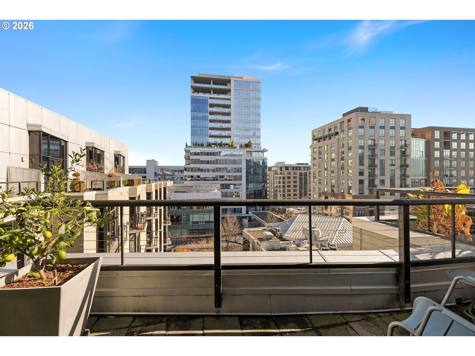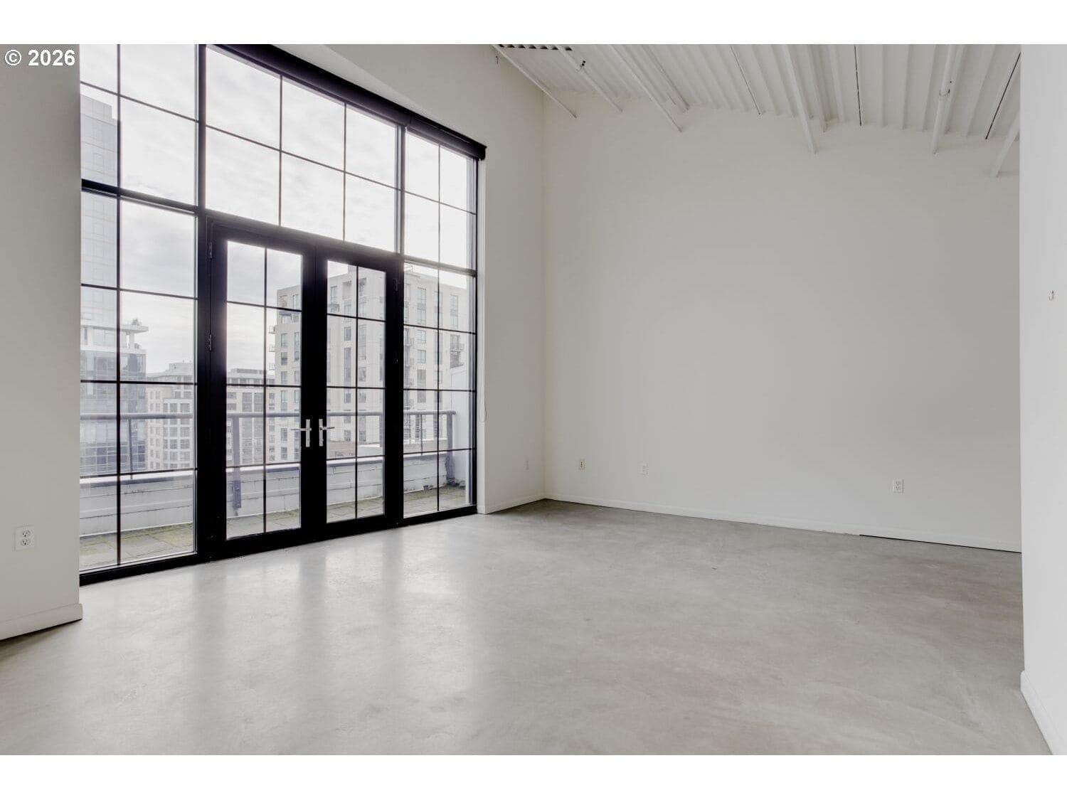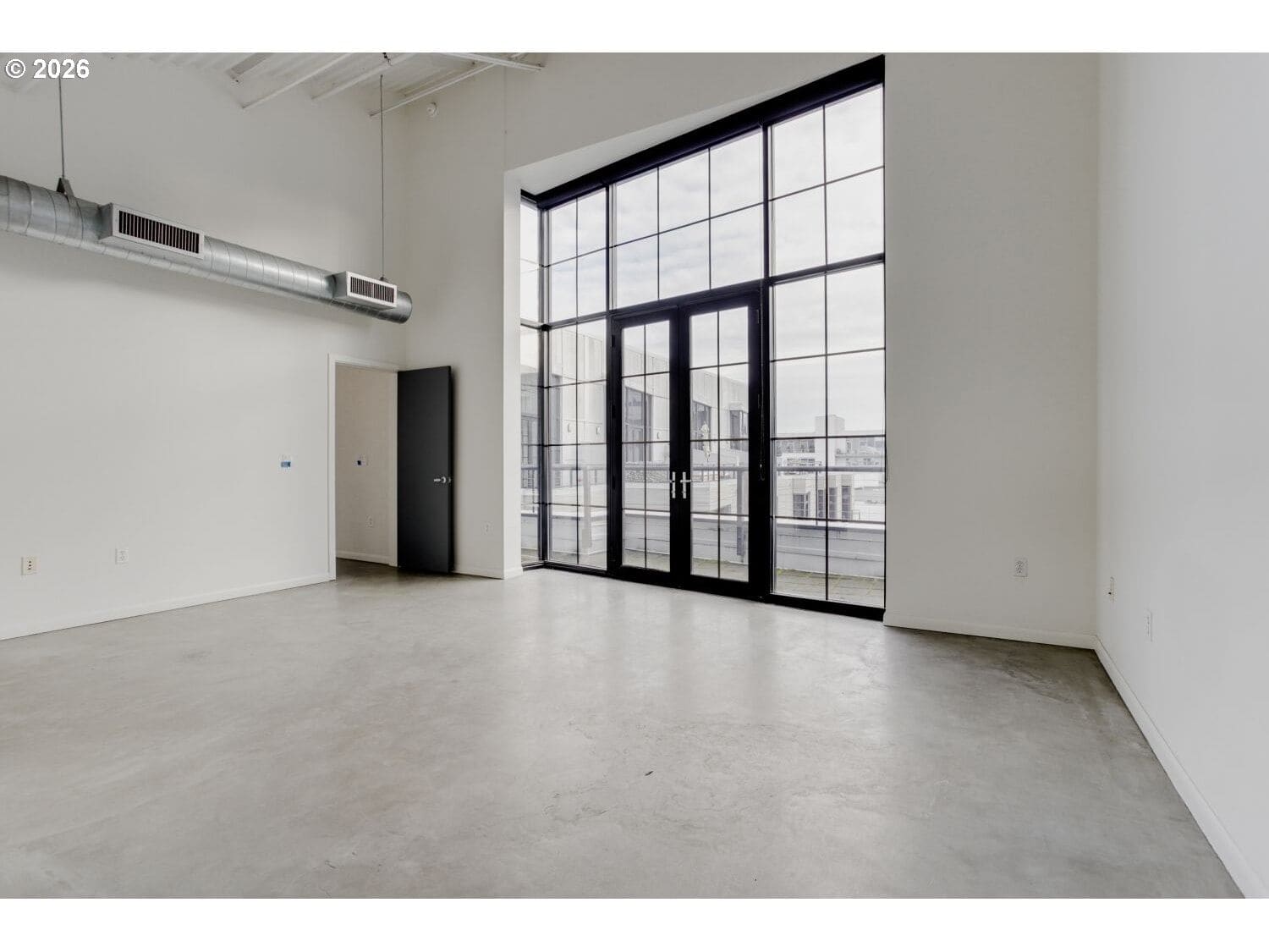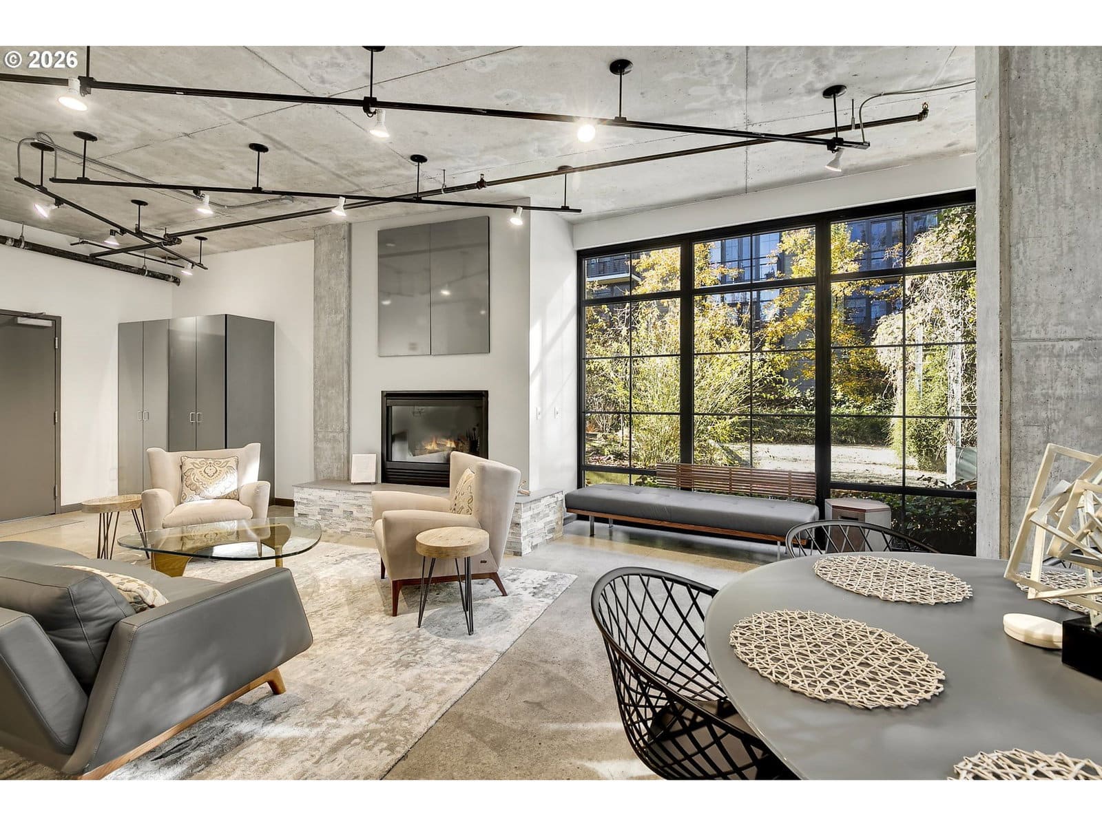 Step into this distinctive industrial-style condo in Streetcar Lofts. This two-story unit features 10–14 ft ceilings, polished concrete floors, and expansive east-facing windows that fill the space with natural light and offer city views overlooking a beautifully maintained courtyard.The main level offers an open-concept layout that connects the kitchen and living area with an electric fireplace next to the floor to ceiling windows. This floor also includes a bedroom with an ensuite bath, making it a versatile flex space that can be used as a dining room, home office, or guest suite.Upstairs, you’ll find a second living area well suited for a den, media room, or creative workspace. The primary suite features french doors that open to a private balcony, a walk-in closet, and a full bathroom with soaking tub, walk in shower, and washer/dryer. Streetcar Lofts offers a range of amenities including a security team, fitness center, community room, and a lush shared garden with BBQ areas. Water, sewer, and garbage are included in the HOA dues. The unit also comes with two side-by-side deeded parking spaces.
