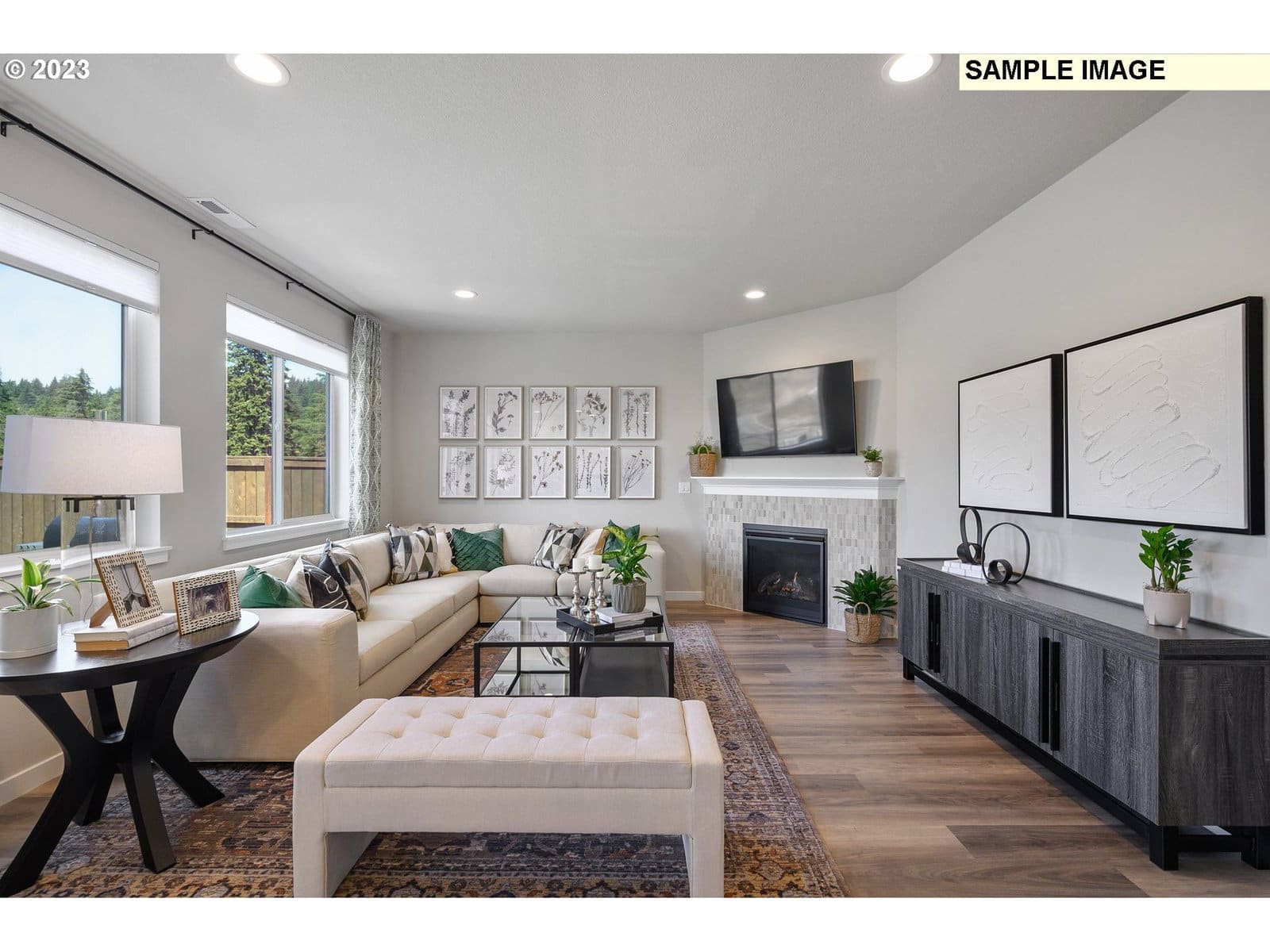 1609 Floor Plan - Ready in April - Hurry to Choose Your Finishes! Beautiful 3-bedroom home with 2.5 bathrooms and a 2-car garage. Home features a great room with gas fireplace, 9ft ceilings on spacious main level, quartz countertops, gas range, kitchen island, a primary suite with walk-in closet, heat pump with A/C, front yard with irrigation, on a fully fenced lot! Community features walking trails, green spaces, and park areas. Sample images - actual finishes and colors will vary. Other homes also available.
