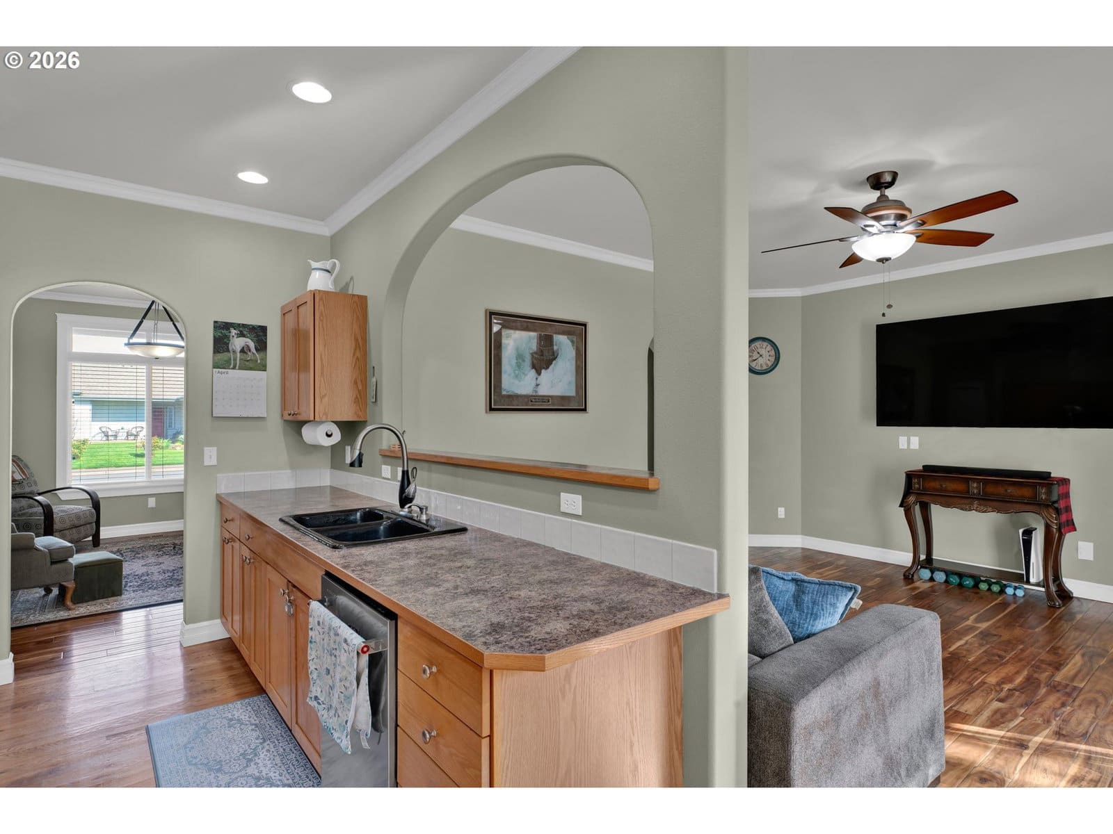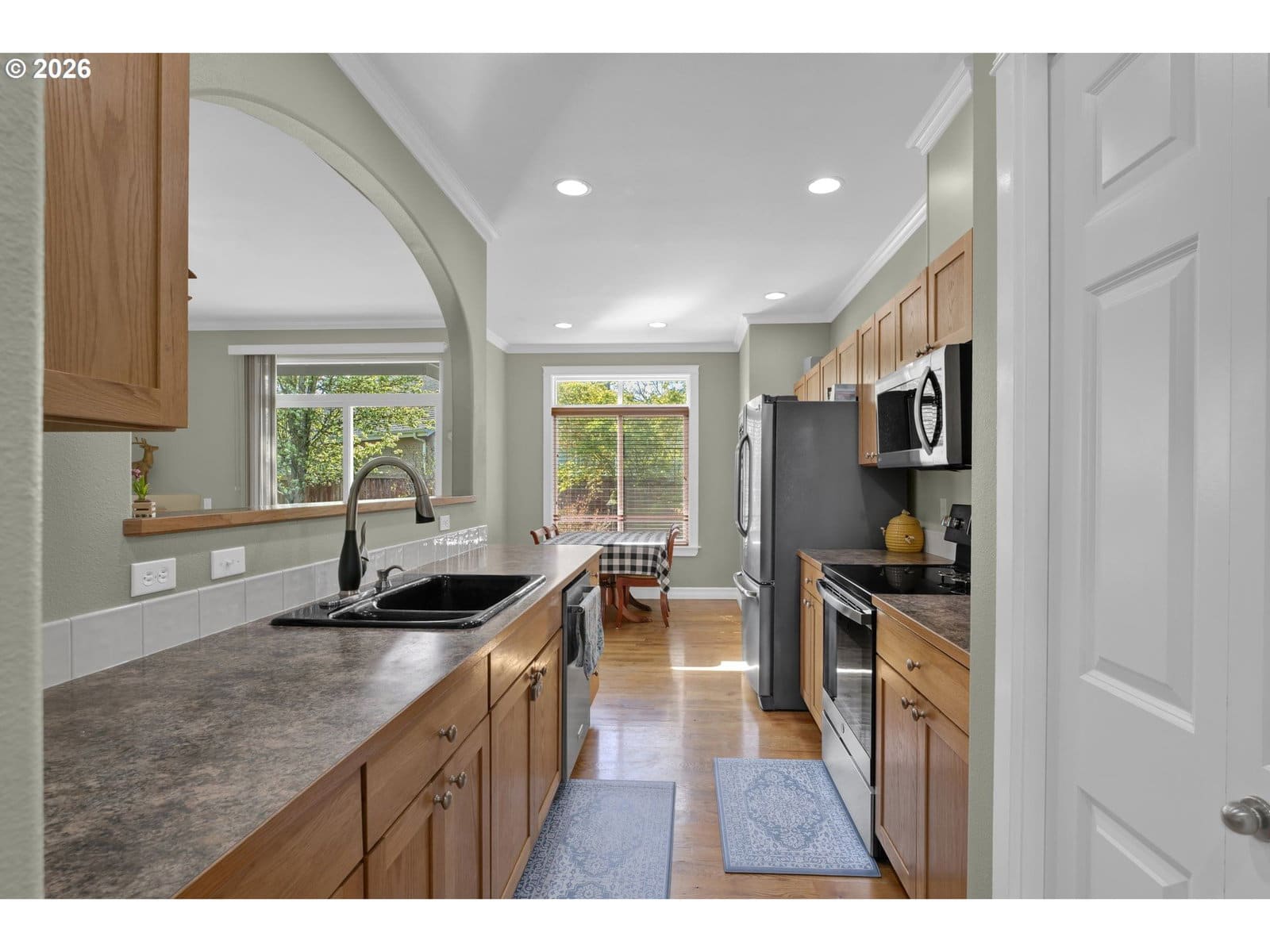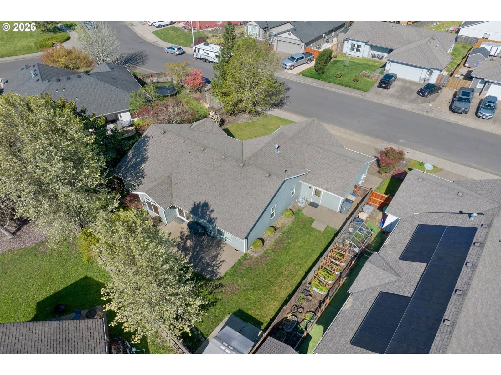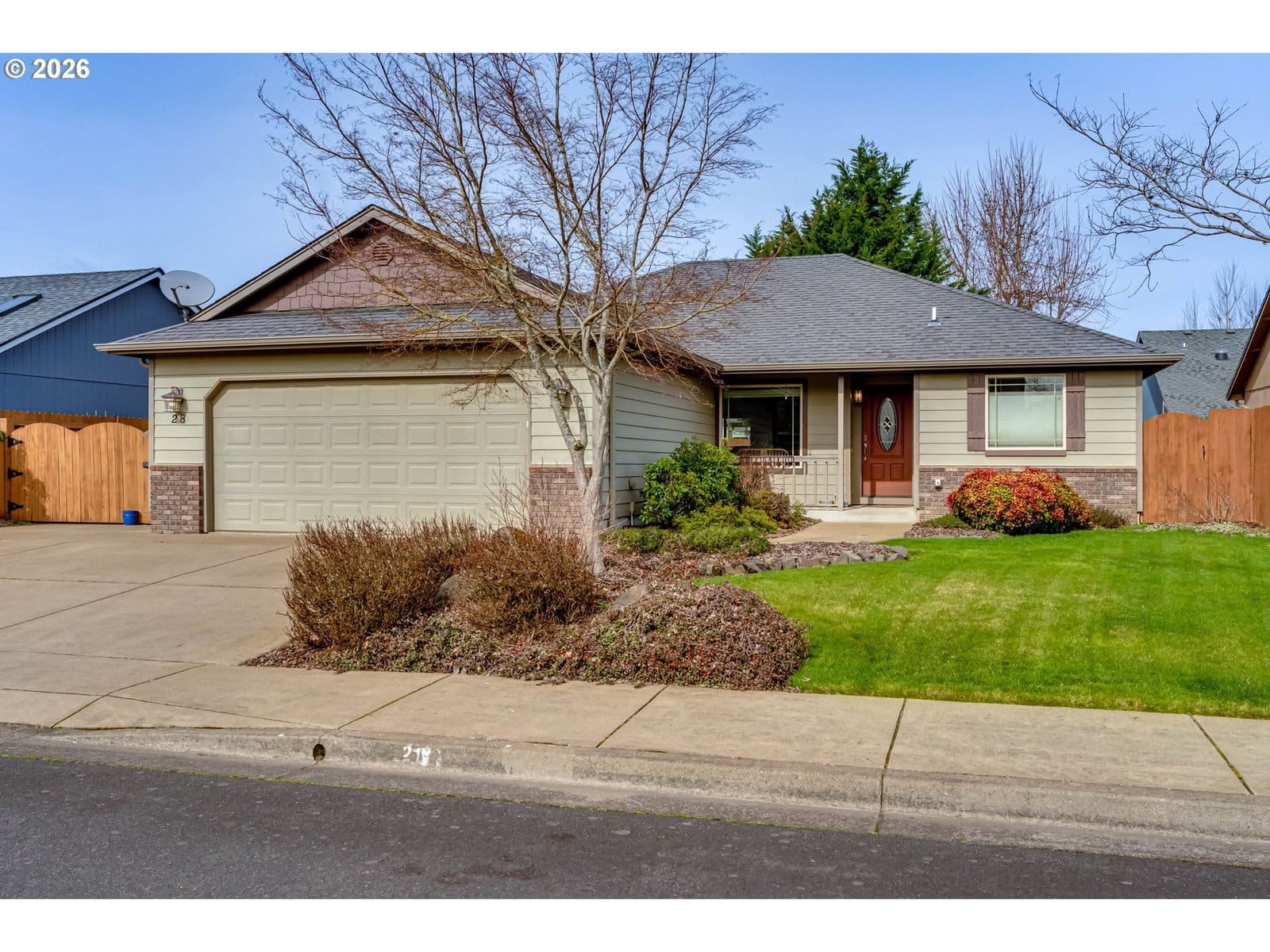 Tucked in SW Albany, this 1,487sf single-level 3bd/2ba by Schneider Homes offers a vaulted great room, gas FP & crown moulding. Split bedroom plan w/private primary suite - 2 BRs on opposite side of house. Kitchen features abundant cabinets, built-in desk, bkfst nook & a formal dining/sitting room. Mud/utility rm off a 3-car garage that features overhead storage. Fenced yard w/lg patio, shed, UG sprinklers & easy-care landscaping. Less than 1 block to park; easy commute to Lebanon, Corvallis & Interstate 5. Association assessments are due Feb. 15th of each calendar year.