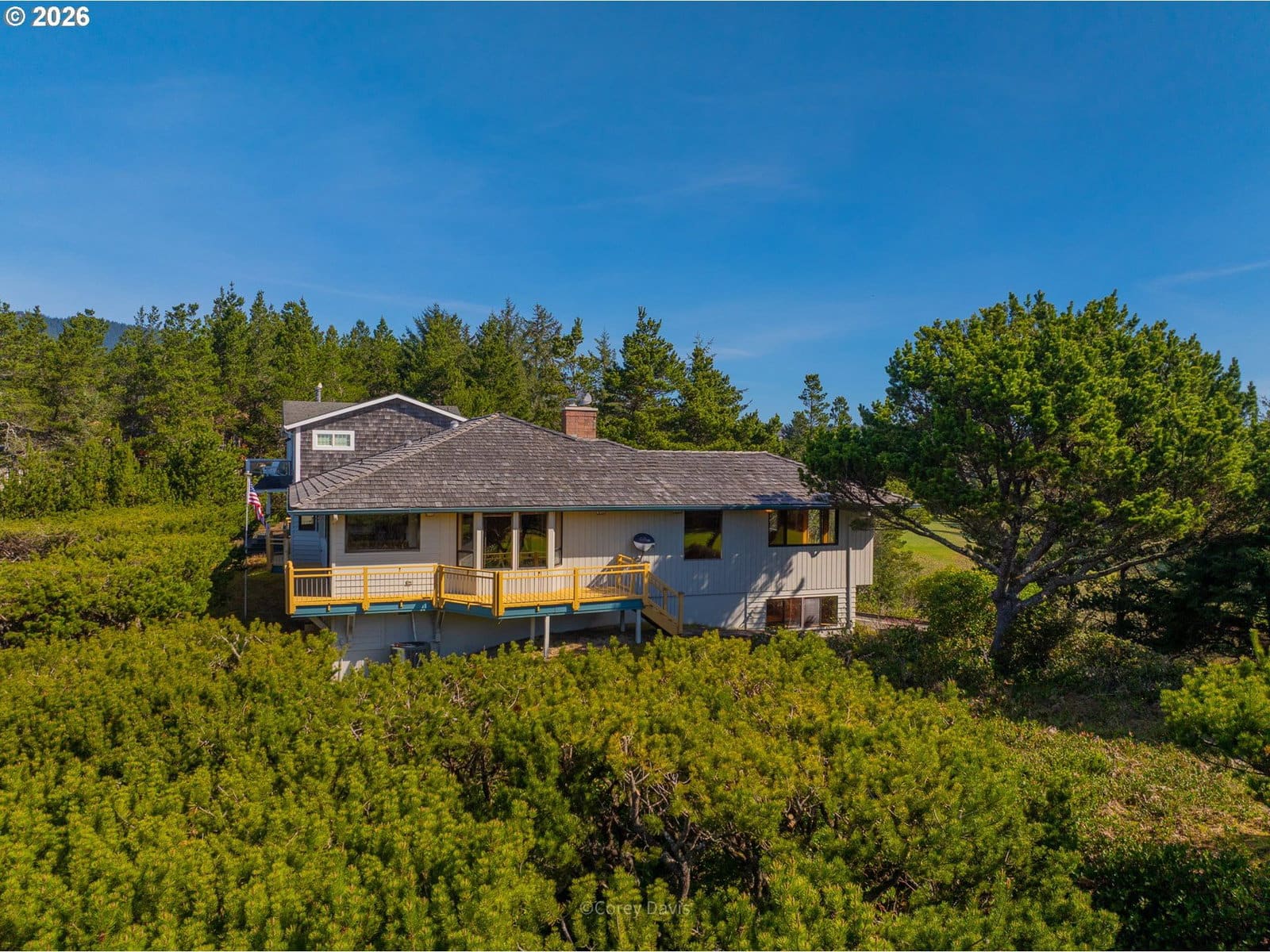 On the market for the first time, this exceptional home at Manzanita Links offers a rare chance to own a legacy property set between the first and second fairways on a double golf course lot. Designed by Manzanita golf course founder Ted Erickson in 1985, the 3,448-square-foot residence is defined by cedar-lined living spaces, four bedrooms, three full baths, elevator access, a large 840-square-foot deck, and a lower level with game room, full bar, and workshop. Just steps from the first tee, a short walk to town, and only blocks from the beach, the setting is as special as the home itself — private, memorable, and filled with future potential.