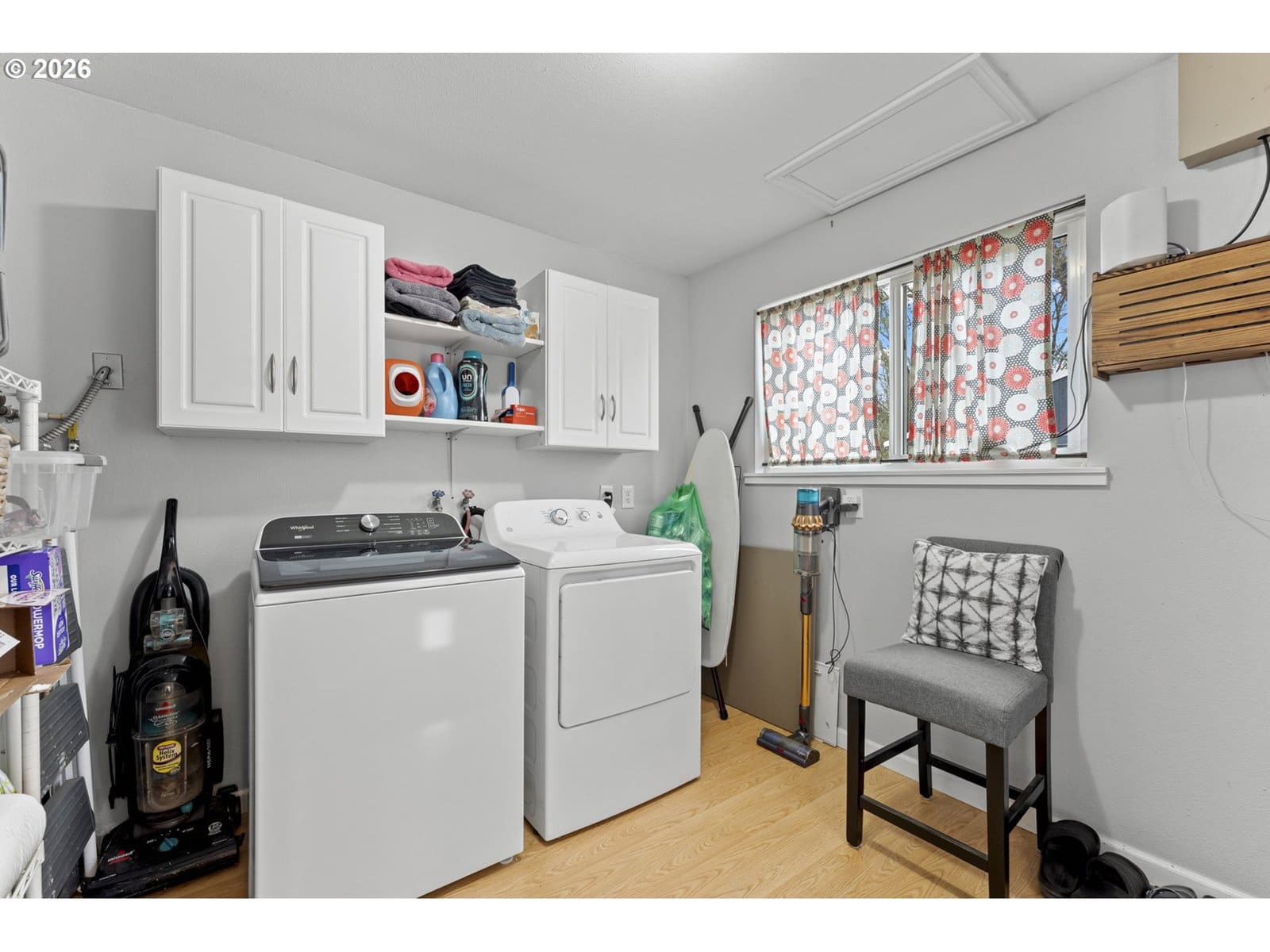 Need a shop with room to spare on a .41-acre lot? This property checks all the boxes. The 24x36 heated shop features an 11x11 door—perfect for boats, RVs, or multiple vehicles—plus concrete floors and a spacious 24x12 loft that works great as an office or storage area. A 20x24 carport extends off the back of the shop, and a separately metered 220-amp electrical service makes this space as functional as it is versatile. Wide open floor plan with 10 foot ceilings. Huge living room open to dining area and kitchen. Updated kitchen with nice cabinets, new frig and portable island. The main level of the home features two bedrooms and a full bathroom, while the upper floor offers an oversized bedroom or office/bonus room with a half bath. Engineered hardwood floors, a dedicated laundry room, and gas forced-air heating. A spacious driveway provides ample parking for multiple vehicles or recreational toys. This charming farmhouse is privately tucked away yet just minutes from Multnomah Village. The roof was replaced in 2017, and the exterior was freshly painted in 2024. An added bonus: Washington County taxes instead of Multnomah County. Also Beaverton schools!