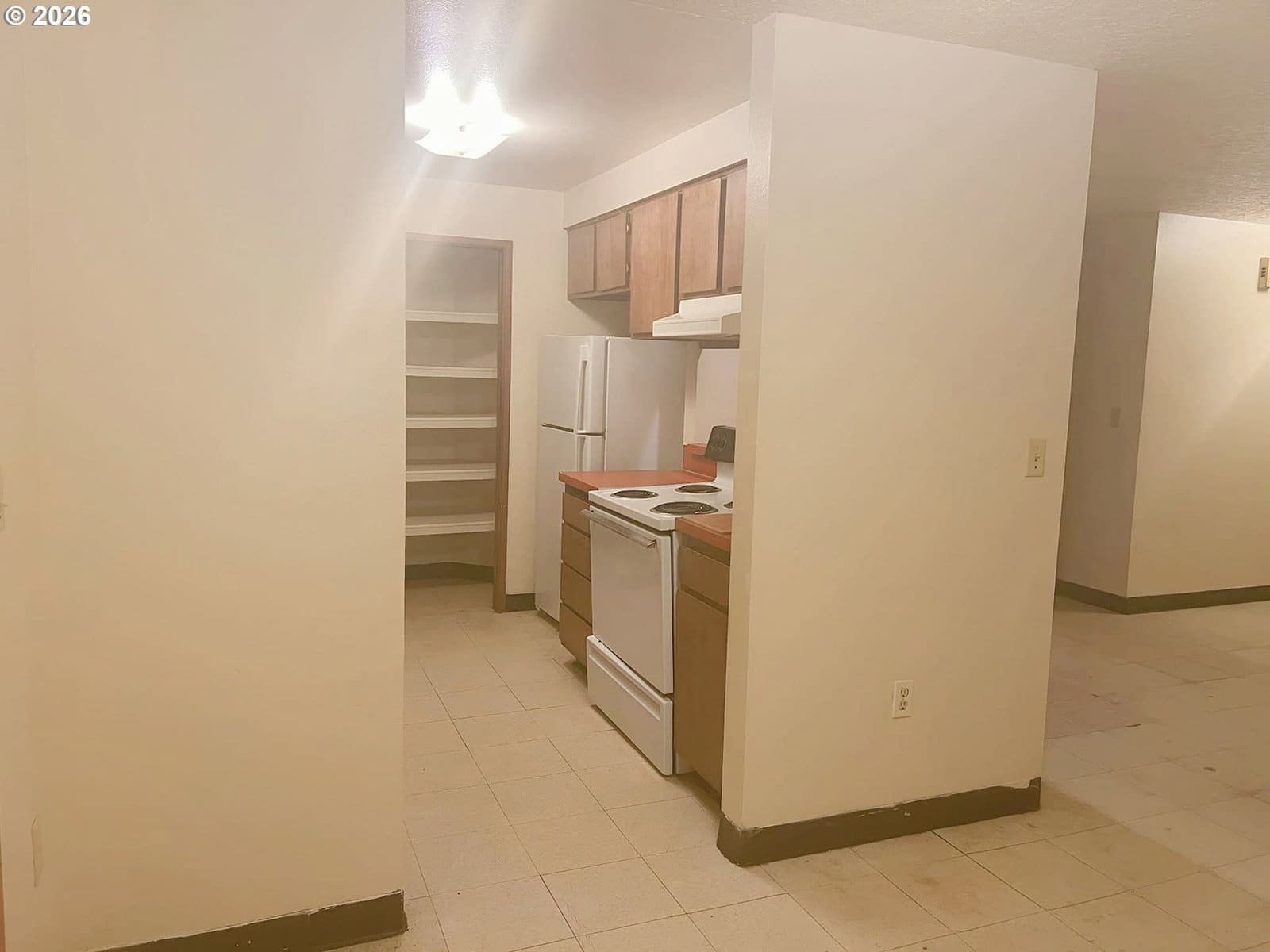 Cosmetic fixer cute 3 bed, 2 bath One-Level Ranch with attached 1-car garage and fenced yard. Bring your toolbelt and ideas! Comfortable open lay-out. Vinyl tile flooring throughout. All 3 bedrooms on one end of the home. Primary Bedroom has attached Bath. Kitchen with laminate cabinets and combo Dining area with door to the backyard. Kitchen has free standing stove and fridge. No dishwasher. Laundry hook-ups in hall adjacent the main bathroom. Newer roof, vinyl windows, hardiplank siding. This is a Housing Authority of Clackamas County owned property, there are no income limits to purchase. Closeby to amenities and conveniences.