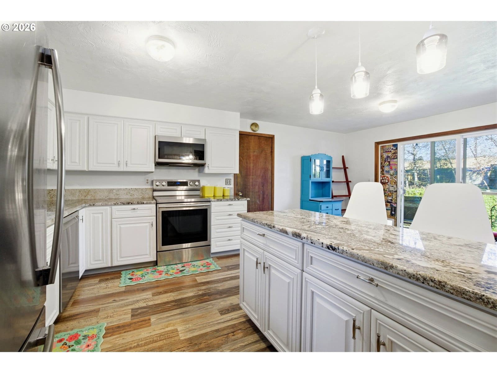 Hard to find single-level home with an amazing 2332sf of spacious living in the heart of Monmouth! Situated in a solid, established neighborhood, this home delivers both comfort and value. The kitchen features granite countertops, stainless steel appliances, an eating bar, along with space for a cozy nook. The oversized family room is both expansive and inviting, complete with a homey woodstove and new carpet w/double padding for added comfort. Enjoy lively colors and unique character throughout. Numerous updates over the past 10 years include roof, siding, double paned windows, appliances, woodstove, jetted tub, flooring, mini splits, exterior paint and more! The fenced backyard with mature growth offers fruit trees galore - cherry, plum, peach, pear and apple along with raspberries. A tremendous amount of home for the price - don't miss this exceptional value in the charming town of Monmouth!