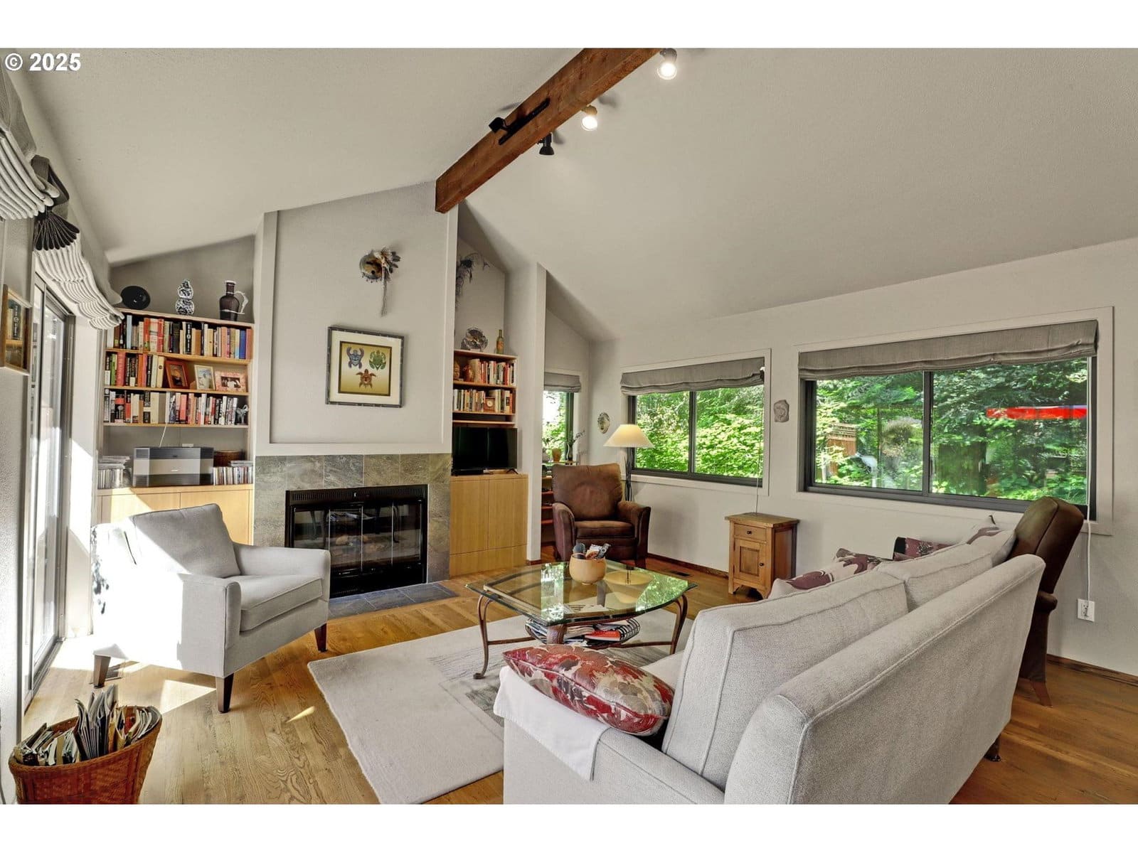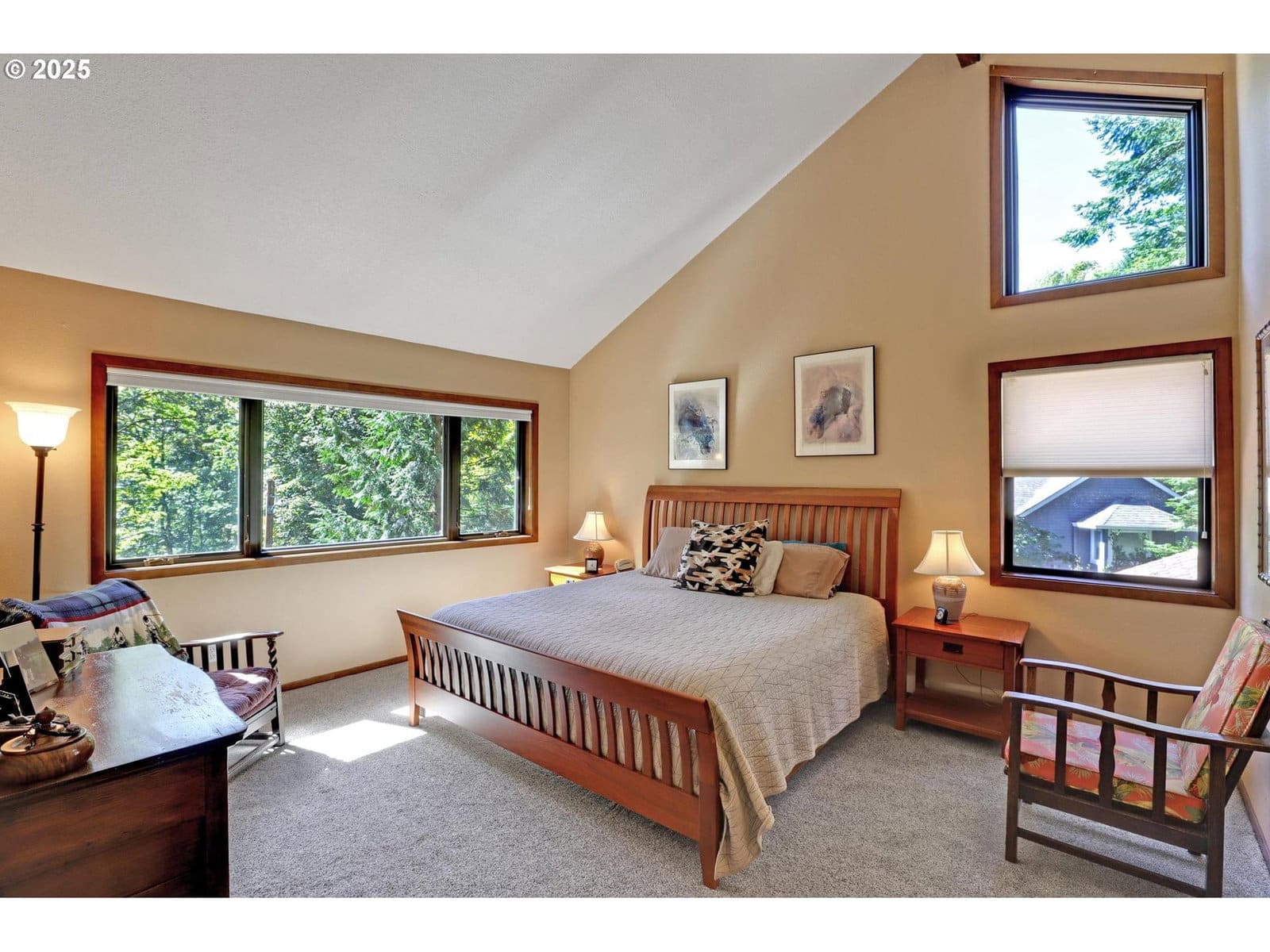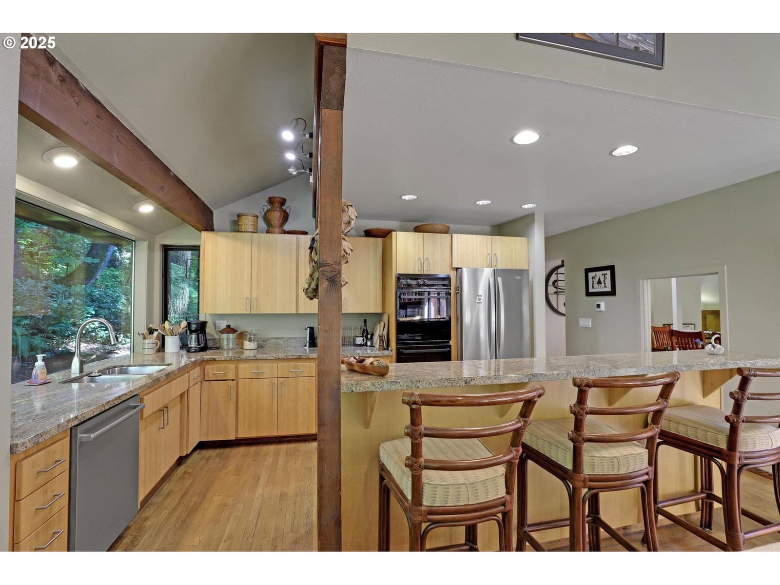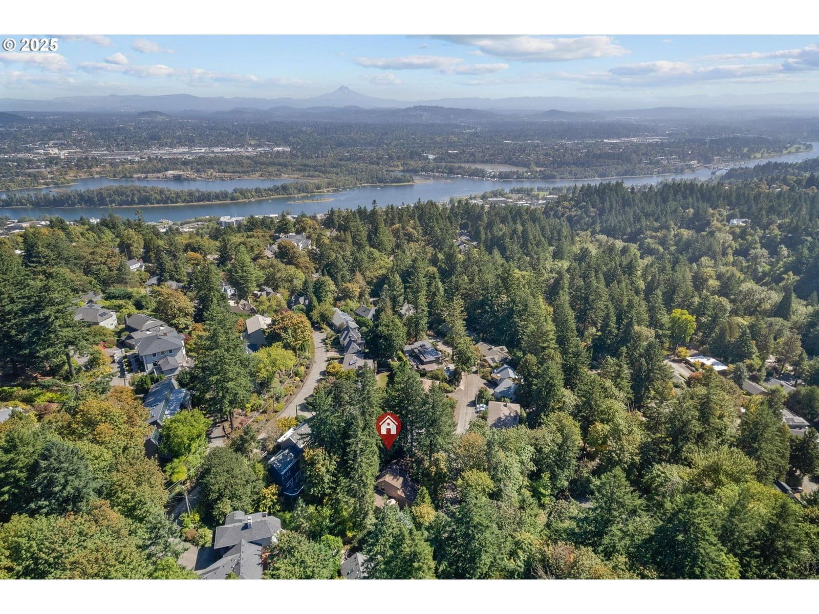 Architect designed NW Contemporary in the heart of the West Hills, perfectly situated between the Hillsdale shopping area, the Farmer's Market, a public library, transit, a short walk to the village, OHSU and the SW Trails. Filled with warm wood accents and soaring ceilings, and with walls of windows that bring the outside in, this home represents everything that the Pacific NW has to offer. The airy and open living and dining space is the heart of the home and has stunning vaulted ceilings, a gas fireplace, and sliding doors out to a sunny deck with forest views. Built to accommodate both elegant and casual entertaining, the kitchen features a Great Room, complete with vaulted ceilings, a wall of glass doors and a wood burning fireplace. The kitchen is a host's delight, with granite countertops, thoughtful storage, copious bamboo cabinets, double ovens, 5 burner gas cooktop and a breakfast bar. The primary suite features stunning South facing views of the forest with 2 walk-in closets, skylights and a special "port window" in the bath. There is a separate entrance to the guest suite, which features vintage cedar paneling in both the bedroom and bathroom. The two-car garage has plenty of space for vehicles and additional storage. [Home Energy Score = 1. HES Report at https://rpt.greenbuildingregistry.com/hes/OR10242008]