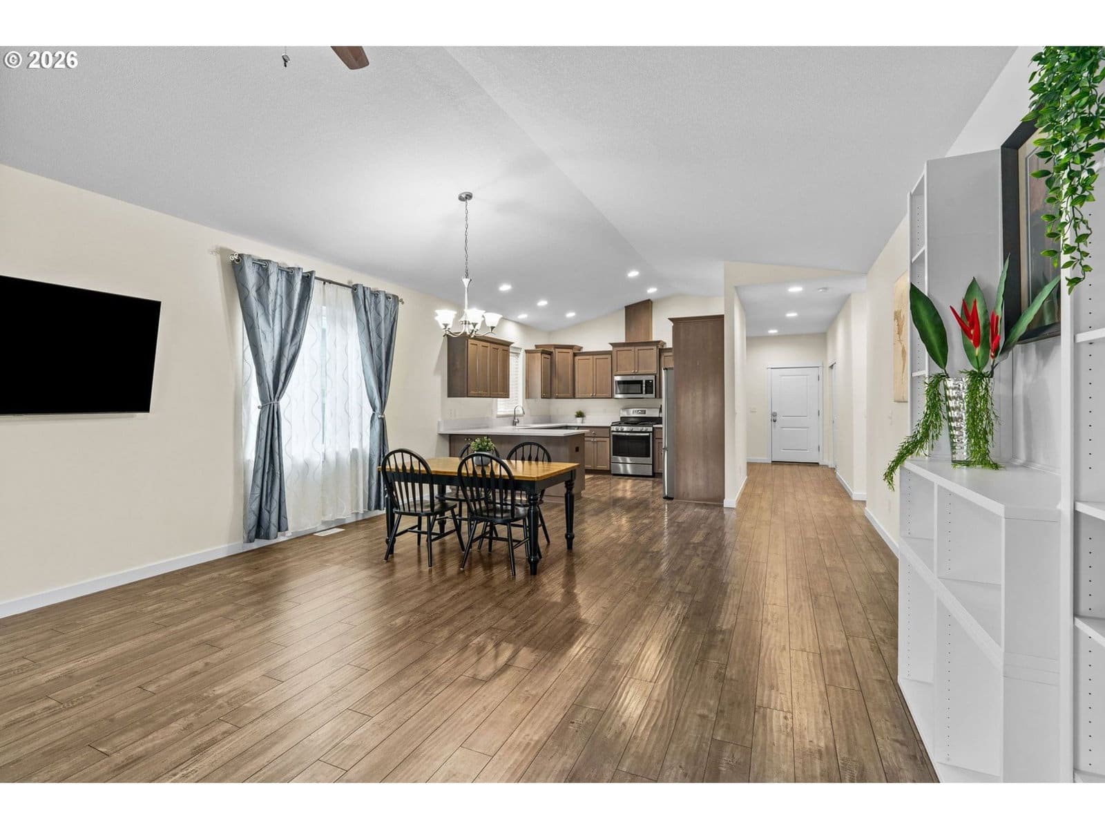 Meticulously maintained and turnkey single-level home in the heart of Gervais offering modern comfort, energy efficiency, and thoughtful upgrades throughout. This 4 bedroom, 2 full bathroom home features an open concept layout with vaulted ceilings, a gas fireplace, and a spacious kitchen with quartz countertops, gas range, soft-close cabinetry, and stainless steel appliances. The primary suite includes a double vanity and a spacious walk-in closet. Smart home features include a smart thermostat, smart garage door and wireless switches throughout. Recent upgrades add incredible value including solar panels for reduced energy costs, Level 2 EV charging, a new hot tub (2024), sprinkler system, and an added patio with negotiable patio furniture. Solar panels will be fully paid off at closing, offering energy efficiency, reduced utility costs, and long-term savings with no additional loan or payment. The covered patio with a gas stub-out creates seamless indoor and outdoor living, while the fully fenced yard offers privacy and space to enjoy. An additional 10 feet was added to the backyard, providing even more flexibility and usable space. The spacious two car garage offers plenty of room for storage or hobbies. The home is ideally positioned with homes set farther back across the street, creating a more open feel and added sense of privacy. Located in a USDA eligible area with potential for zero down financing, this home combines efficiency, comfort, and modern living in a growing community. Schedule your showing today and experience everything this home has to offer.