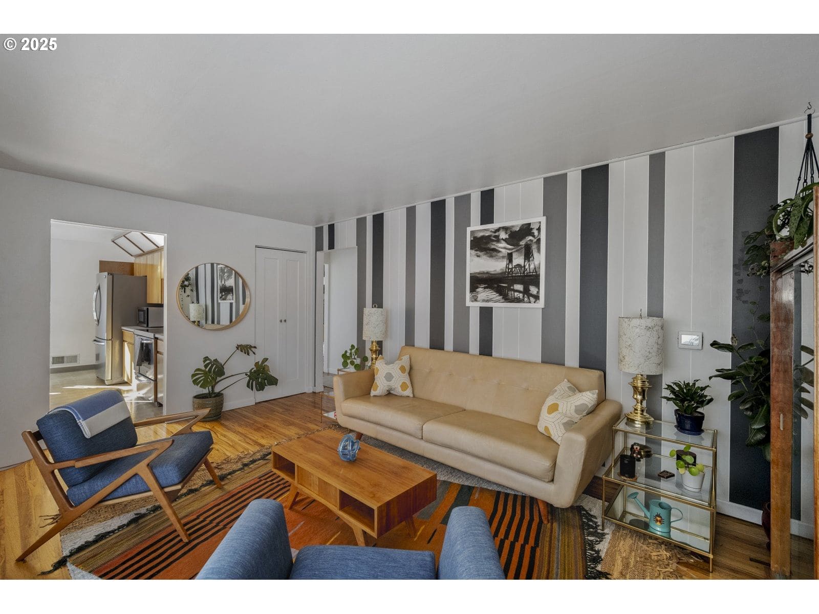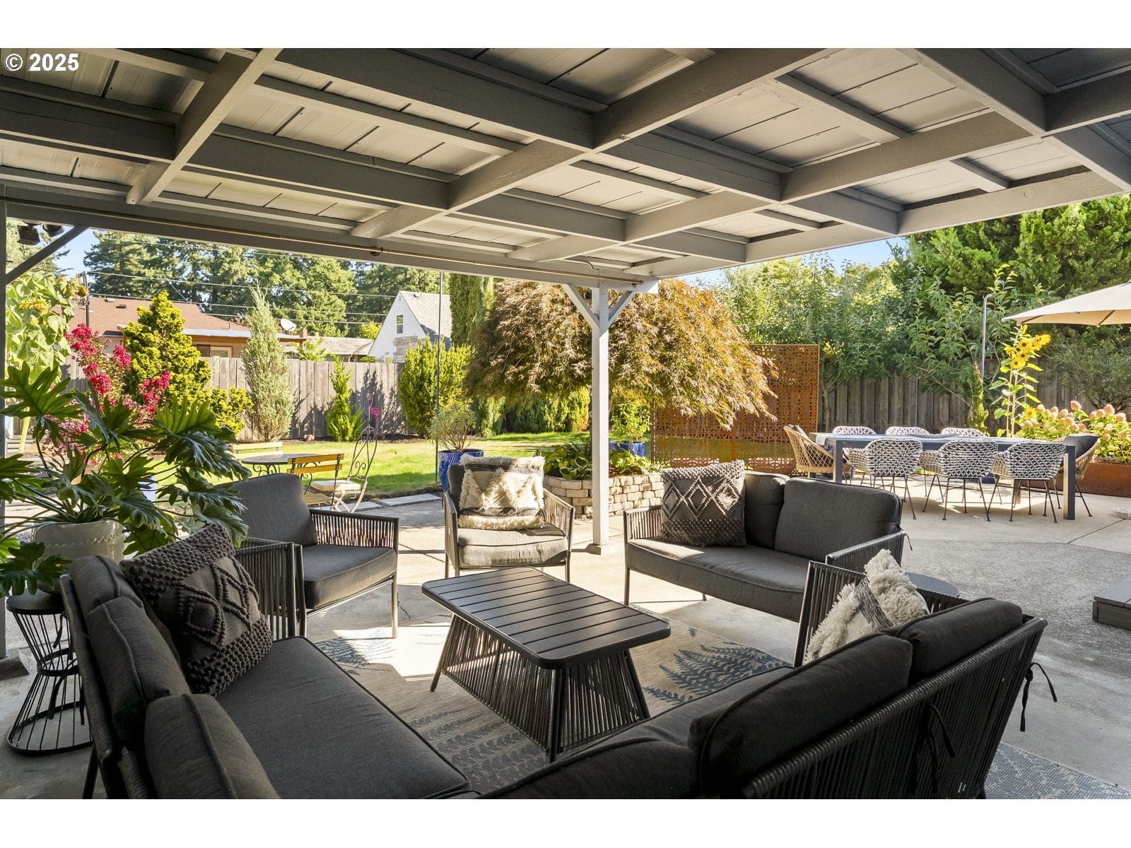 This classic ranch-style home in the Mill Park neighborhood combines vintage charm with everyday comfort. Inside, you’ll find gleaming hardwood floors, original oak trim, and a south-facing living room that stays bright all year. The kitchen features a cozy breakfast nook, while the dining room opens to a large patio and fully fenced backyard—ideal for entertaining, gardening, and relaxing on the lawn. The property has a lovely collection of trees, including evergreens, maples, and fruit trees for added privacy and seasonal beauty, along with a sizable shed. The garage provides additional storage space and an EV charging port. The finished basement adds living space for a family room, office, or play room. Recent upgrades include exterior paint, refinished oak floors, new flooring on the upper level, a high-efficiency furnace, new hybrid water heater and updated electrical panel. Just a short walk from the recently redesigned Mill City Park and the renovated Midland Library, this move-in-ready home offers a blend of vintage character, energy-efficient updates, and spacious indoor-outdoor living. Don’t miss your chance to make it yours! [Home Energy Score = 3. HES Report at https://rpt.greenbuildingregistry.com/hes/OR10137491]