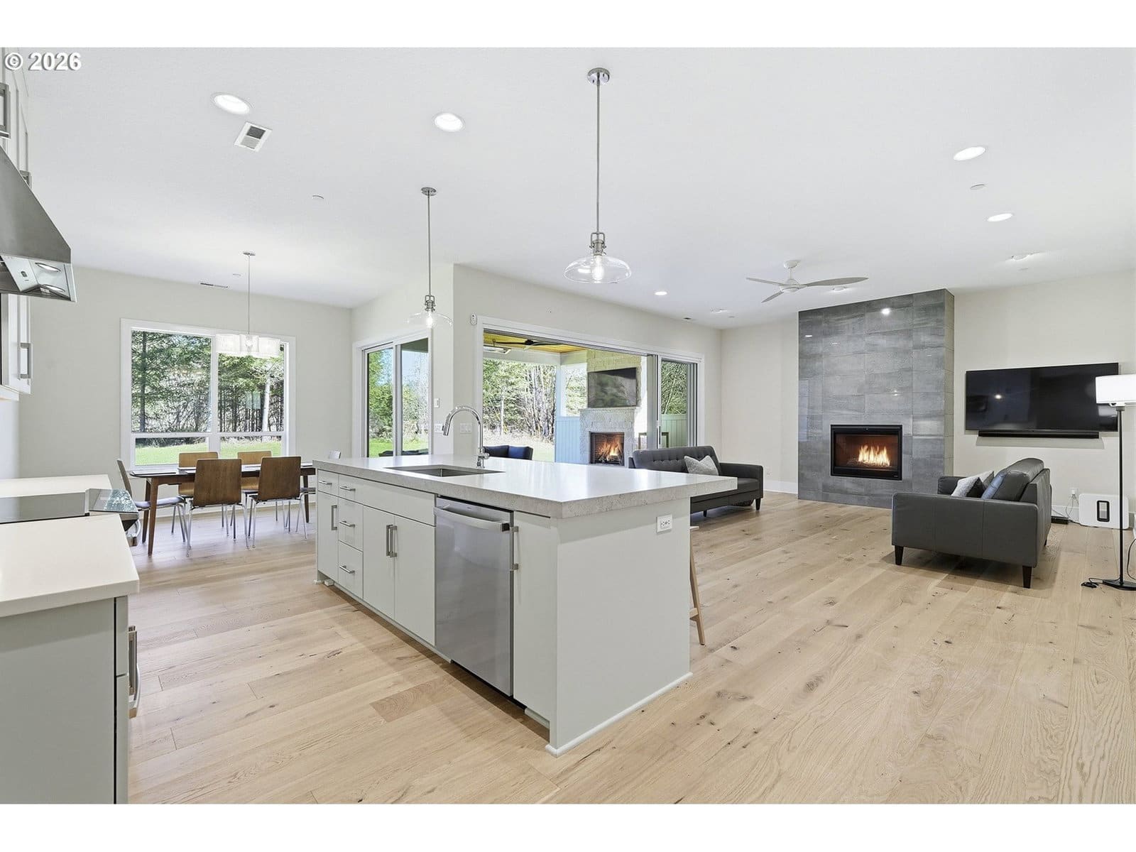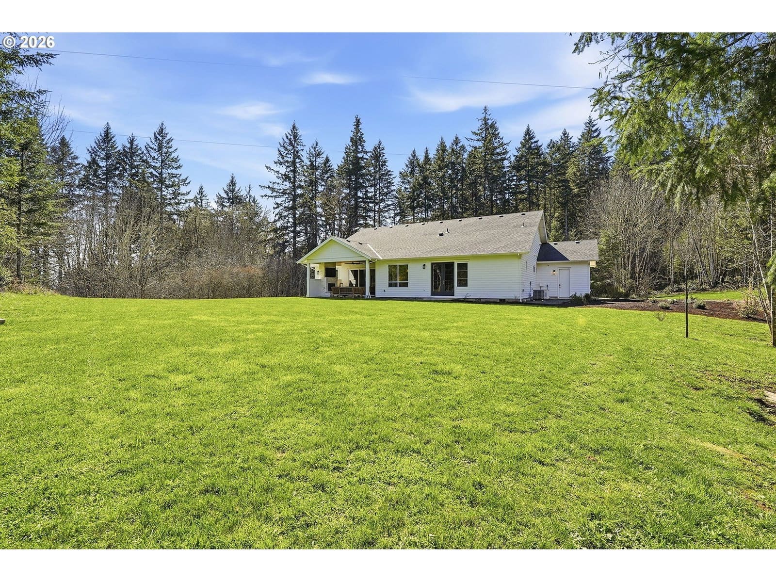 This beautiful single level Farmhouse was built by Renaissance Custom Home in 2024! Sitting on almost 16 acres in the hills above North Plains, this custom-built home offers all of the privacy and serenity you want while being just 20 minutes to Intel and the Sunset Corridor. This home offers everything you could want and more including extended engineered oak floors throughout as well as 10’ ceilings allowing tons of natural light! The gourmet kitchen includes designer quartz counters with an electric cooktop, island with eating bar and a HUGE walk-in pantry. The Great Room has a gas fireplace and an upgraded stacking sliding door that leads to your outdoor covered living area which includes a second fireplace and overhead heaters, so you can sit outside year-round and enjoy the peace and serenity of your property! The Primary suite has French doors that lead outside, a spa-like bathroom including heated tile floors, a zero threshold walk-in tile shower, dual sinks with quartz counters and a soak tub, as well as a generously sized primary walk-in closet. All 4 bedrooms include engineered oak hardwoods and have French doors that open to the yard. There are multiple closets and tons of storage! The 3-car garage enters into the laundry room which includes built-ins, a folding table and sink. The home has a private well, Air Conditioning, a tankless hot water heater, is prepped for an electric car charger, a robust owned solar system as well as a whole house generator. Pad poured and prepped w/gas for future firepit. There is a fruit orchard with over 30 fruit trees including plum, peach, pear and apple.