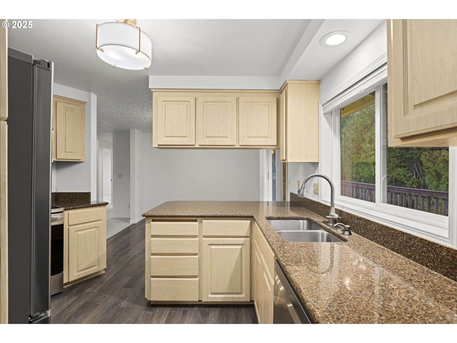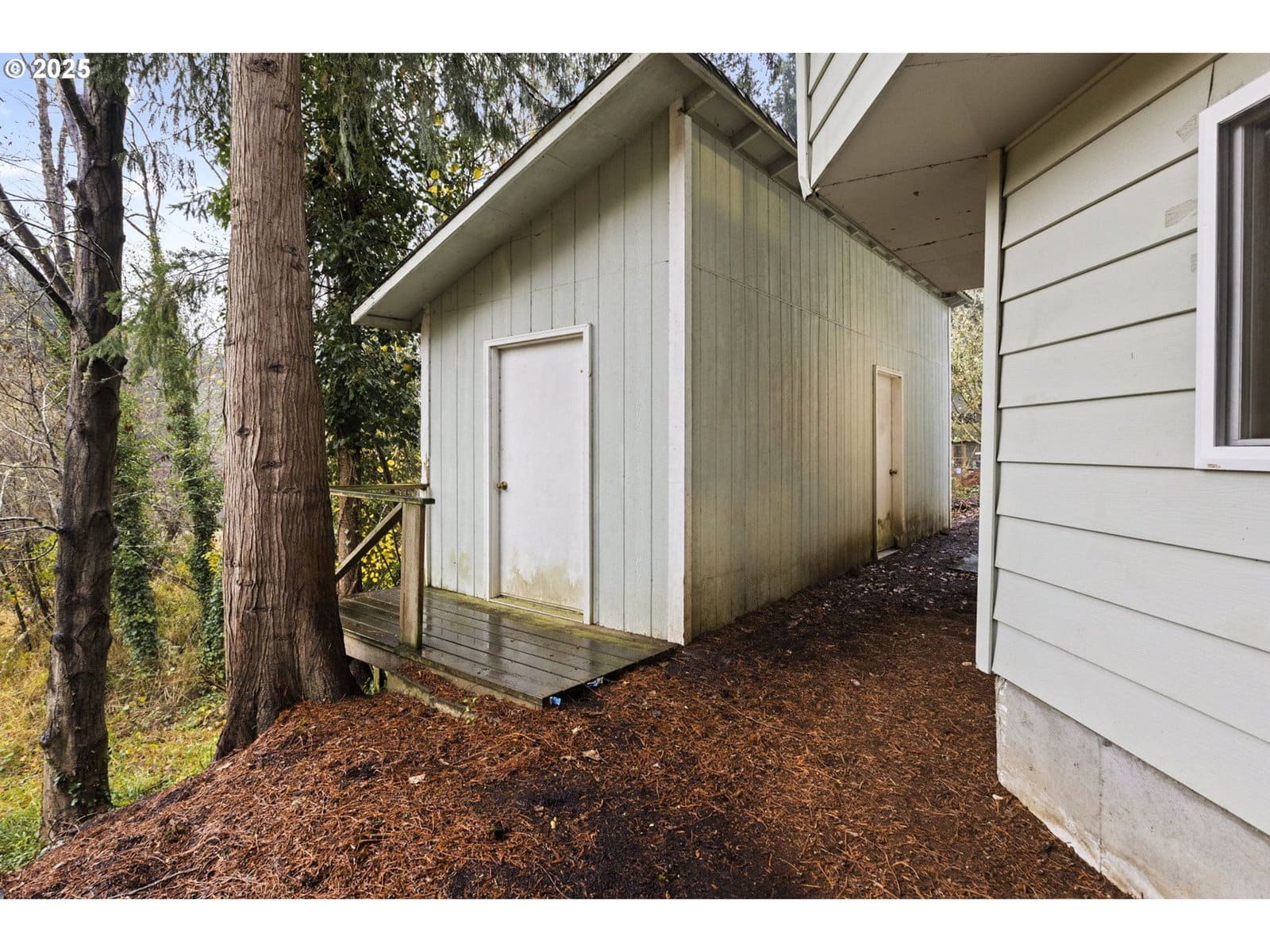Discover serene living in this daylight ranch, perfectly situated at the end of a quiet cul-de-sac on over half an acre. This rare setting backs to a beautiful wooded natural area with a creek, abundant wildlife, and peaceful views in every season. Step inside to dynamic main-level living featuring a spacious family room, 2 bedrooms and 2 bathrooms, plus a bright kitchen and access to the expansive deck overlooking the trees. The daylight basement adds exceptional flexibility with a bonus room, 2 additional bedrooms, and a full bathroom—ideal for multi-generational living, guest quarters, supplemental family space, or potential short- or long-term rental income, including Airbnb. Enjoy effortless indoor-outdoor entertaining from either the main-level deck or the lower-level patio, both designed to take full advantage of the stunning natural backdrop. A hobbyist’s dream, the property includes an attached workshop with extensive storage and shelving, along with a detached full-size matching shed featuring dual entrances and abundant space for tools, equipment, or creative projects. Relax, unwind, and enjoy daily visits from birds and wildlife in this truly one-of-a-kind home & setting. [Home Energy Score = 4. HES Report at https://rpt.greenbuildingregistry.com/hes/OR10242843]