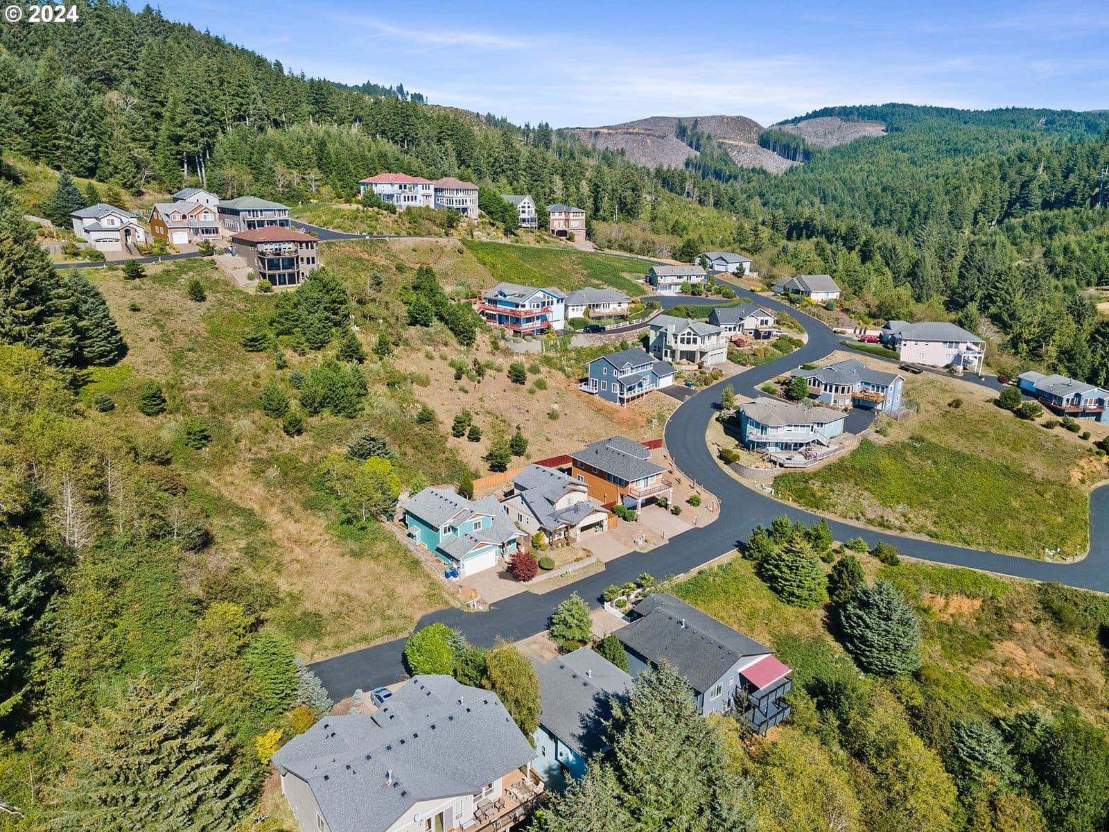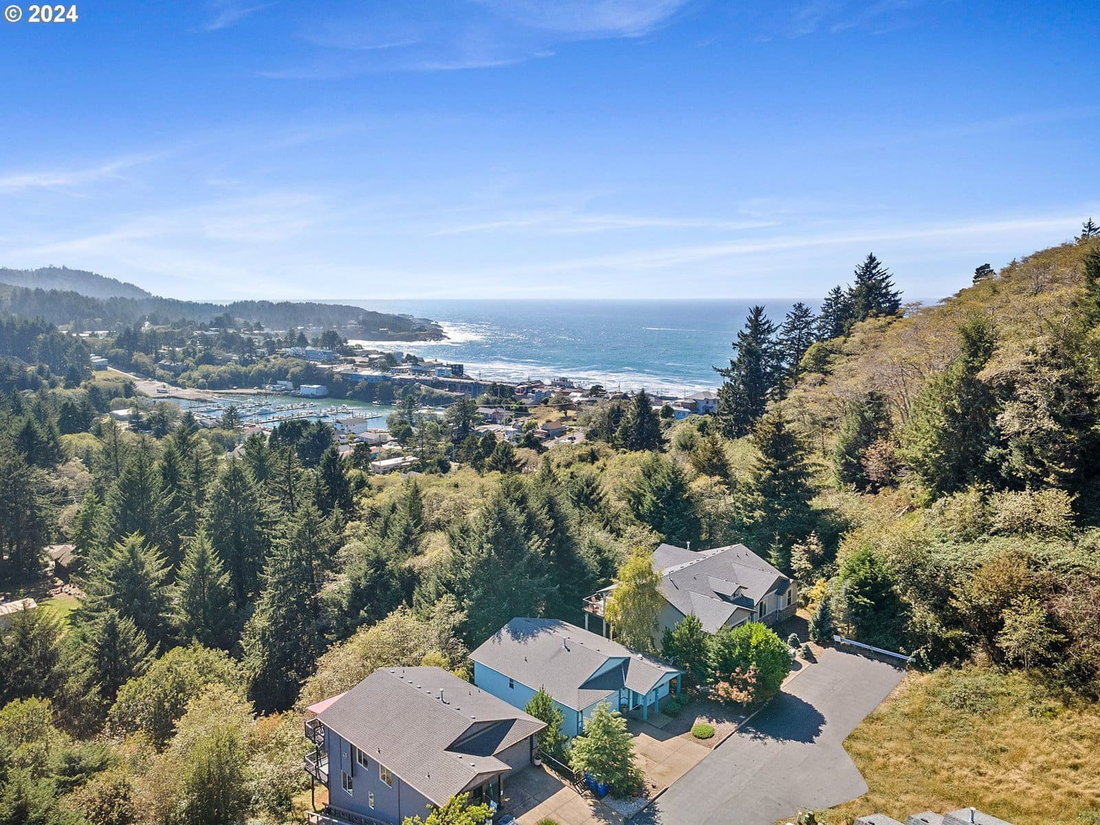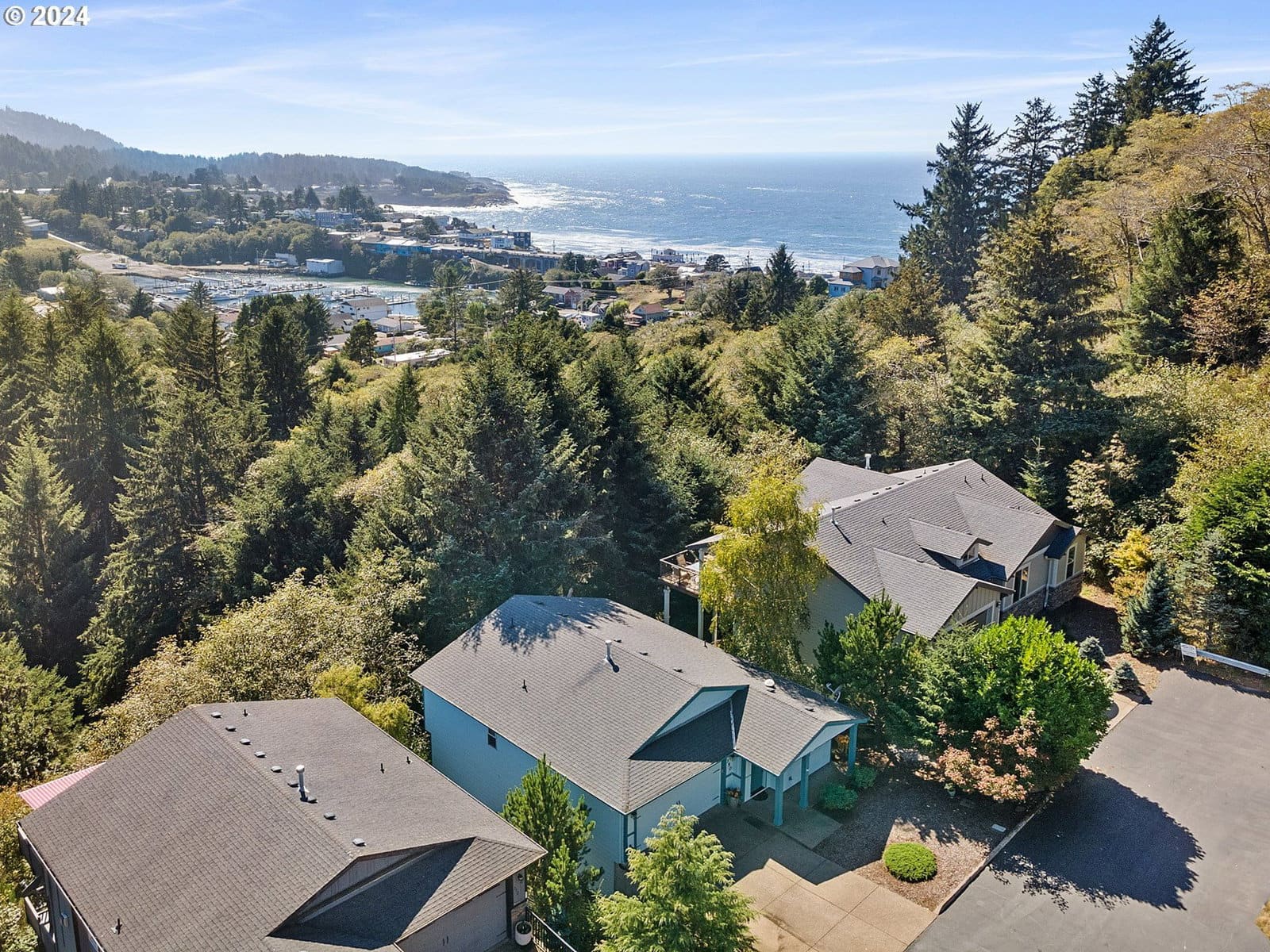 Great hillside home just above downtown Depoe Bay with beautiful southern mountain views and a peek of the ocean. The living room has a cozy gas fireplace and opens to the upper deck. The kitchen features cherry cabinets, granite counters, hardwood floors, gas range, pantry, and stainless steel appliances. Main-level primary bedroom makes for easy living, with two more bedrooms and a bonus/flex space downstairs.Recent updates include a new dishwasher and flex room flooring (2024), added backyard stair handrail (2024), LeafGuard gutters (2025), new basement door (2025), and refreshed upper and lower decks (2026). Move-in ready and easy to enjoy!