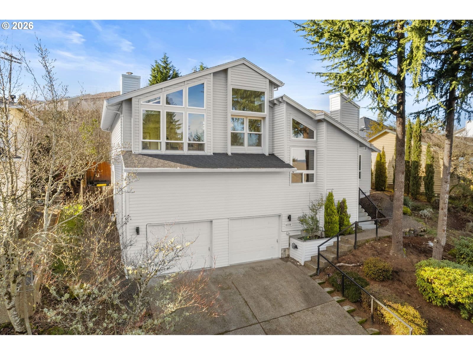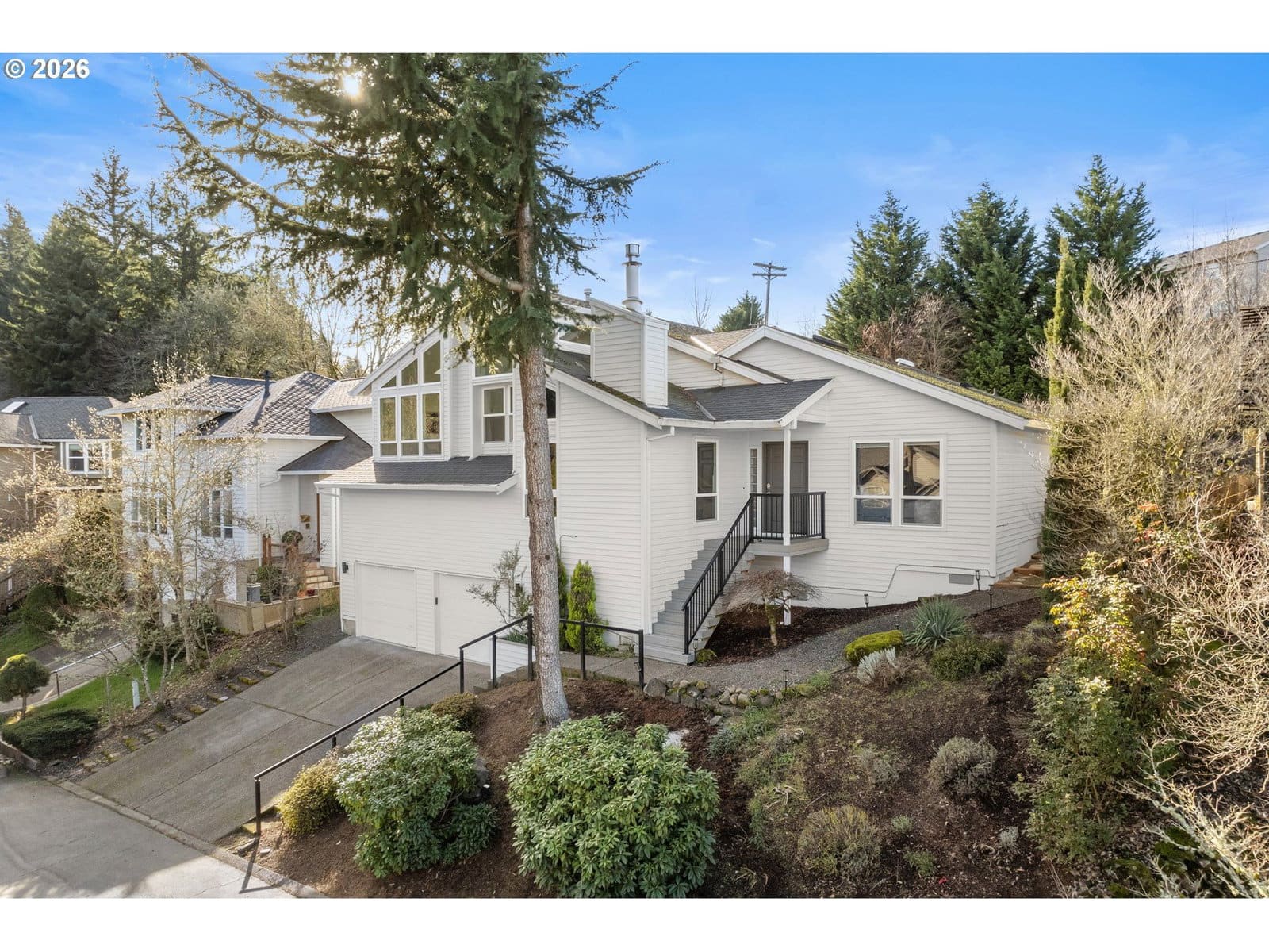Tucked away on a peaceful street in sought-after Cooper Mountain, this contemporary 1989 home offers 3 bedrooms and 2.1 baths with a distinctive, light-filled design. Soaring ceilings and an inviting open layout make an immediate impression, while the dining room—set one level above the sunken living room—creates both architectural interest and thoughtfully defined living spaces.The chef’s kitchen is equipped with premium appliances, including a Dacor double oven, Jenn-Air 5-burner range, and Fisher & Paykel refrigerator. A sunny dining nook and sliding door to the back deck make indoor-outdoor living and entertaining effortless.Just off the kitchen, the second living room is a true highlight. Skylights and expansive windows invite sunlight from all directions, creating a warm and uplifting atmosphere throughout the day. A cozy gas stove adds charm and comfort, while views of Mt. St. Helens provide a stunning natural backdrop—making this space an exceptional year-round retreat.The owner’s suite, two additional bedrooms, and a full bath are thoughtfully positioned along the west side of the main level for privacy and tranquility. One of the bedrooms features French doors that open directly to the backyard, offering a seamless indoor–outdoor connection.Downstairs, you’ll find a convenient half bath, a spacious laundry room, and access to the oversized double garage. With abundant storage and a lofted workshop area, the garage is ideal for hobbies, projects, or additional gear. Central air conditioning ensures comfort in every season.Beyond the backgate is trail access which connects with nature trails around the neighborhood that providing easy access nature and abundant fruit trees, adding charm, beauty, and a true sense of connection with the outdoors.