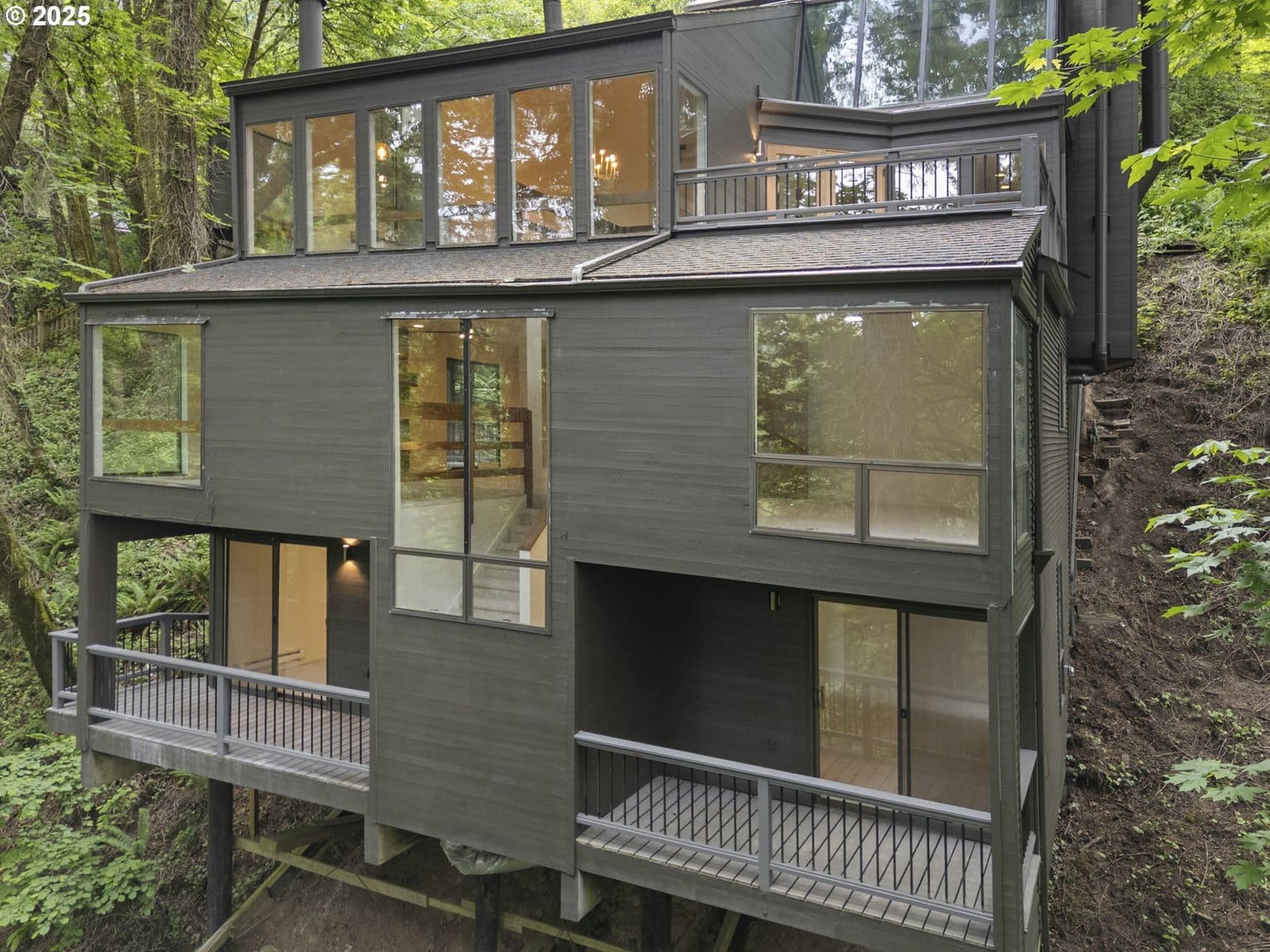 Tucked along tree-lined Fairmount Blvd, this Northwest Contemporary home offers layered privacy just minutes from downtown Portland and OHSU.Perched in a lush, forested setting, this four-level architectural gem blends seamlessly with nature. Expansive windows flood the interiors with natural light and offer a front-row seat to the changing seasons—creating the feeling of living in a private treehouse. Clean lines, open spaces, and thoughtful details throughout make this modern home ready for its Dwell Magazine debut.Two fireplaces and hardwood floors add warmth and atmosphere, while recent updates—including new carpet, exterior paint, and a new roof—make it move-in ready with room for your personal touch.Multiple decks provide serene outdoor spaces in the treetop canopy, with forest views in every direction. Just beyond the doorstep, trails lead to Council Crest and Marquam Nature Park, and the 3.5-mile Fairmount Loop offers a favorite route of walkers, runners, and cyclists.This is a rare opportunity to own a light-filled, contemporary retreat—grounded in privacy, shaped by its surroundings, and full of potential for its next chapter. [Home Energy Score = 1. HES Report at https://rpt.greenbuildingregistry.com/hes/OR10238515]