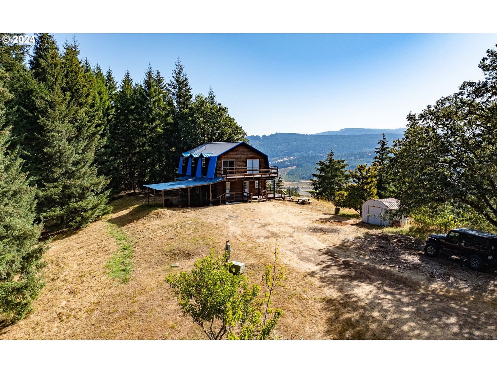 Here is your private Oregon mountain top getaway! Come experience a quiet and peaceful setting with gorgeous evergreens swaying gently in the breeze, and spectacular views from the windows and decks. This beautiful, entirely wood interior and exterior home features many upgrades including an impressive new granite kitchen, 3 large bedrooms and 3 quality bathrooms. Each and every room has built-ins, large windows and wonderful views. Explore the private park-like forest right outside your door. Host your visiting friends with full RV hookups. Call to explore this unique opportunity.