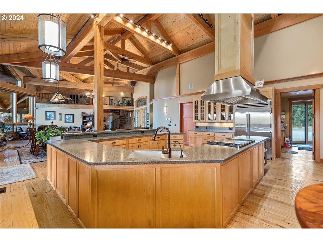 Set on 400 acres of pristine, park-like land, this property is a remarkable blend of natural beauty and architectural excellence. The landscape features open meadows, forested areas, and several ponds, including a trout-stocked pond over an acre wide. The 9,800 sq ft home featuring 5 bedrooms, 4.5 baths, and an energy-efficient structure. The exterior has custom rock finishes, while inside, hickory floors with black walnut trim. The main floor includes an open-concept kitchen with custom maple cabinetry, a Wolf range, Sub-Zero refrigerator, wine cooler, and Hans Grohe fixtures. The master suite offers a walk-in closet, custom-tiled shower with sauna settings, and high-end finishes. A daylight basement includes a bar made from 300-year-old barn wood, fully equipped for entertaining. The property boasts abundant wildlife, including elk, deer, bear, turkeys, and upland birds, and is eligible for two landowner tags for both deer and elk in Unit 52.The property includes multiple outbuildings.
