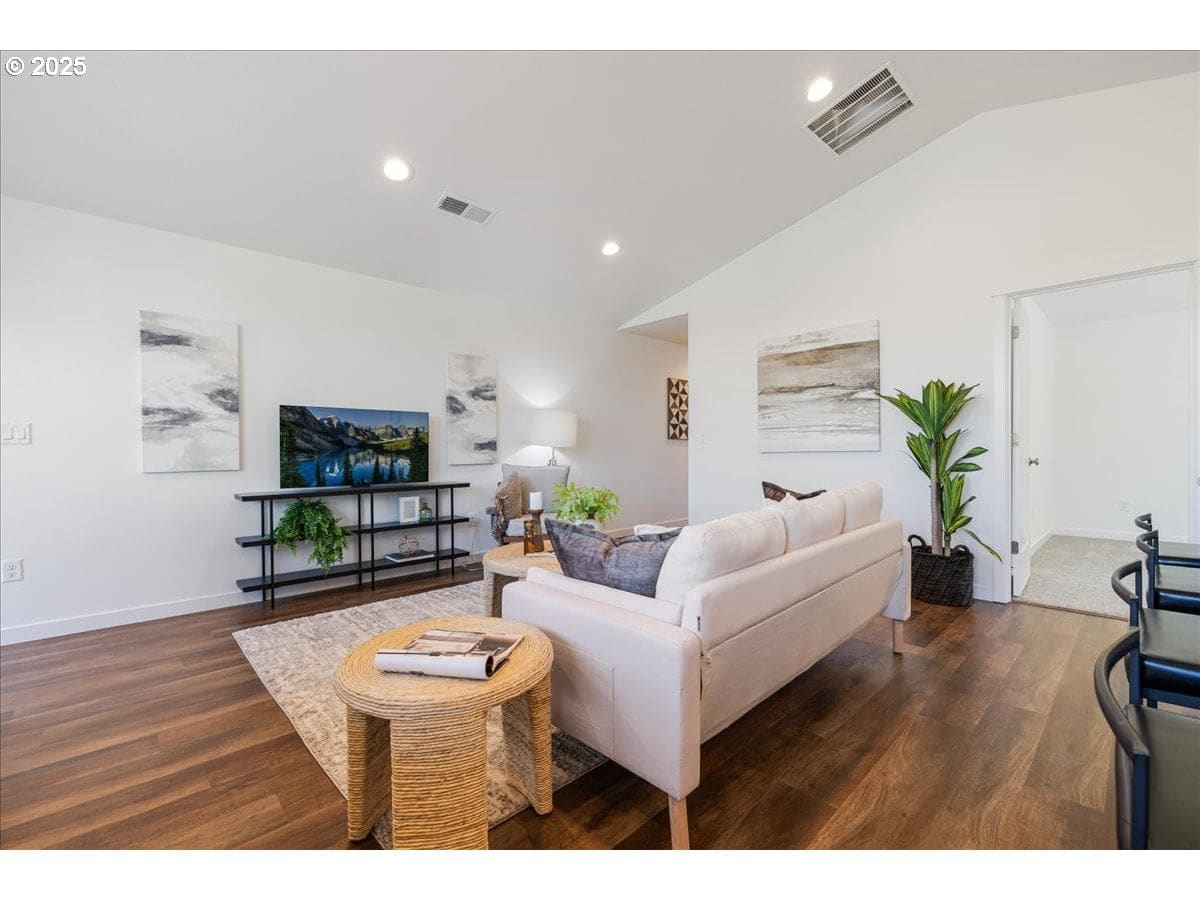 $$$ Seller Incentive $$$ Enjoy flexible living in this completed 2 bed, 2 bath home featuring live/work or hobby space with a 20x15 tuck-under shop/storage area, 2-car garage, and office. The granite island kitchen opens to a 16x15 great room and includes soft-close shaker cabinets, walk-in pantry, and stainless gas appliances. Side-by-side refrigerator, front-load washer/dryer, and window treatments included. Outdoor spaces include two covered patios, rear deck, front porch, landscaped and fenced yard with sprinklers. No HOA. LA related to seller. Lender rate programs available. Completed construction!