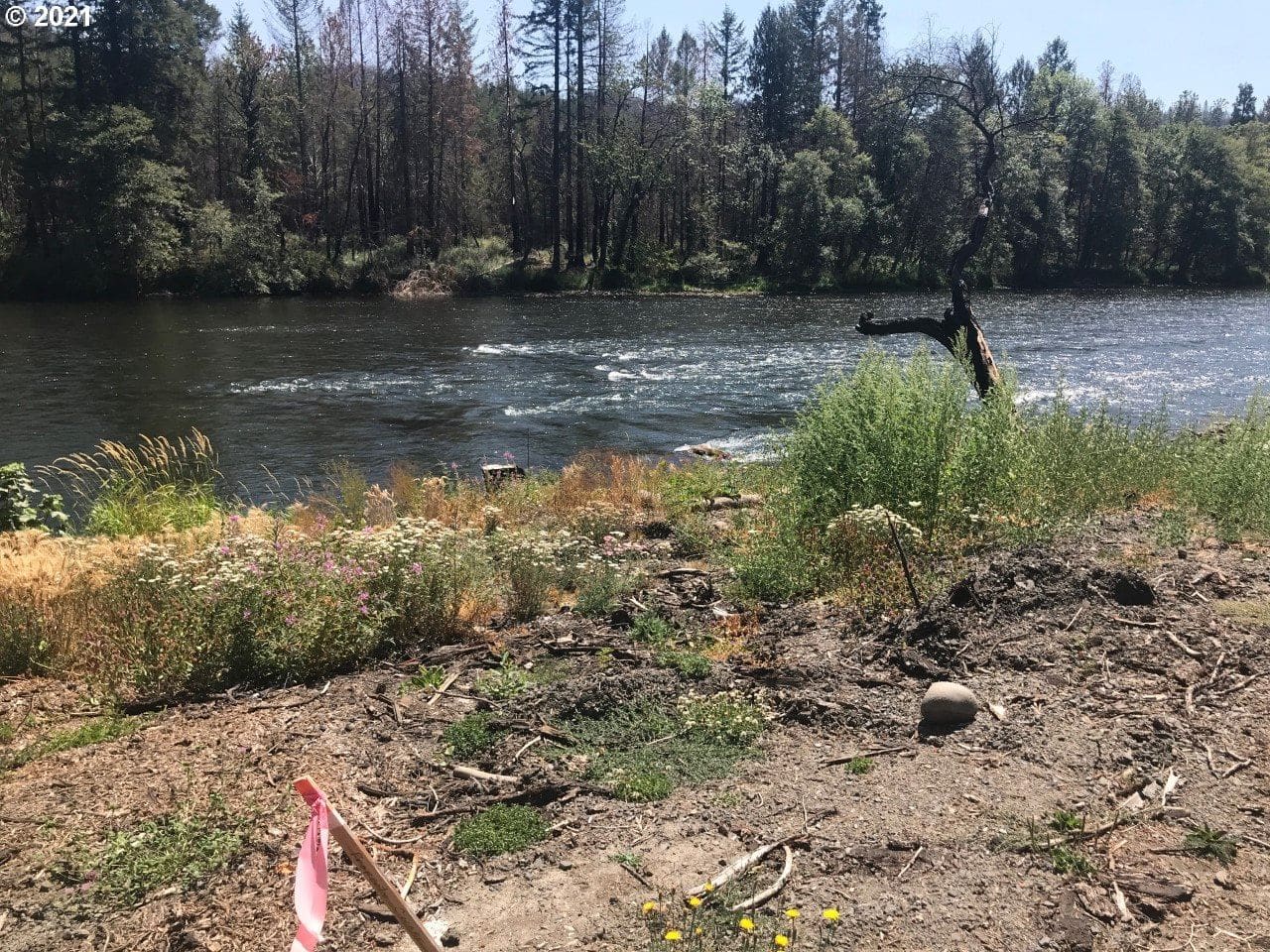 Approved HR 2289 Intent to Build and Type 1 Zoning applications approved by Lane County for 412 sq ft house built in the same footprint, next to the river's edge. You could add second story for additional sq ft. extension is to have approved plans by 2030. The McKenzie is coming back strong. Beautiful riverfront property with surveyed foundation after the fire of 2020. Shared well and shared septic system have both been repaired and replaced and current owner paid for her portion of the expenses. Power available. RC zoning, rural commercial, allows you to live on the property with a home business or rent it out part time for extra income. Perfect VRBO or family retreat. In the heart of the McKenzie Recreational Valley. Prior to fire the cabin was 591 sq ft studio with loft, heat pump, fireplace and large deck overlooking the river. Buyer to do own due diligence. Photos #8-#14 are what the cabin looked like before the fire and gives a new buyer an idea of what could be put back again or build more modern as the cabins next door have decided to do. All of the other lots have been sold and are being built on. Buyer to do own due diligence.