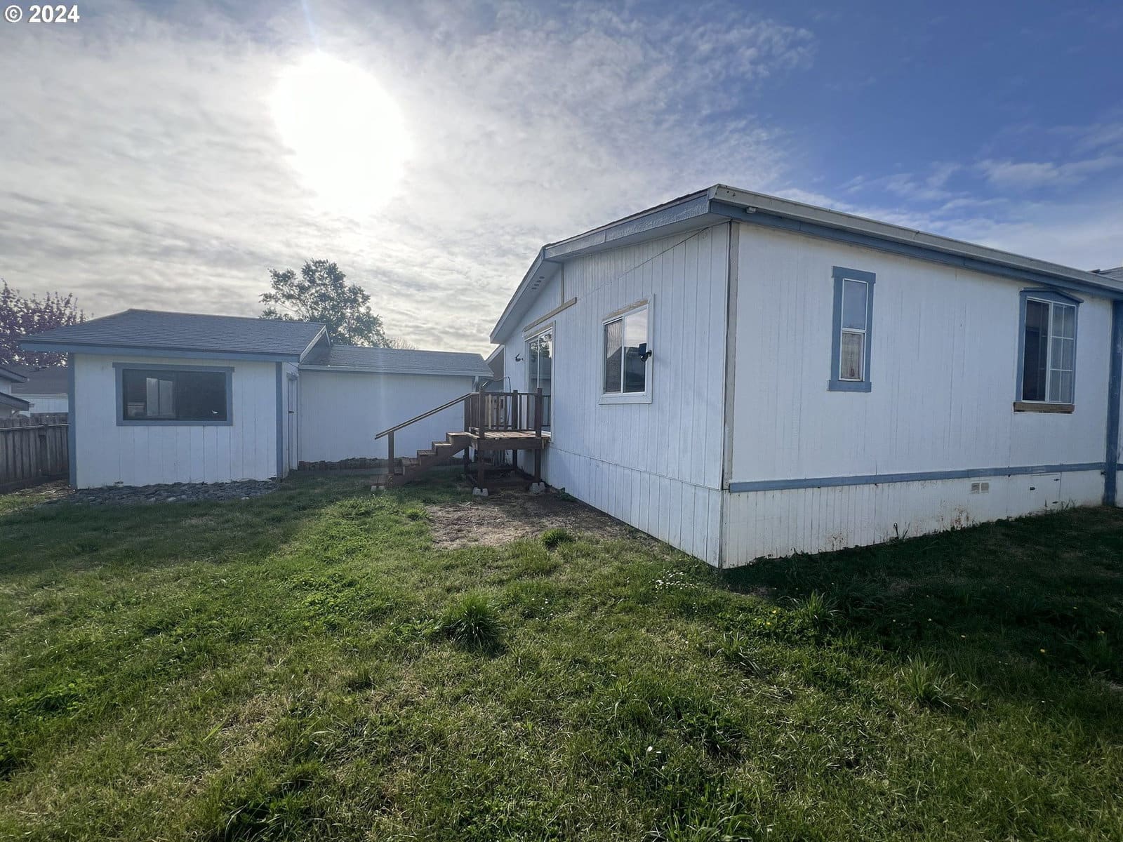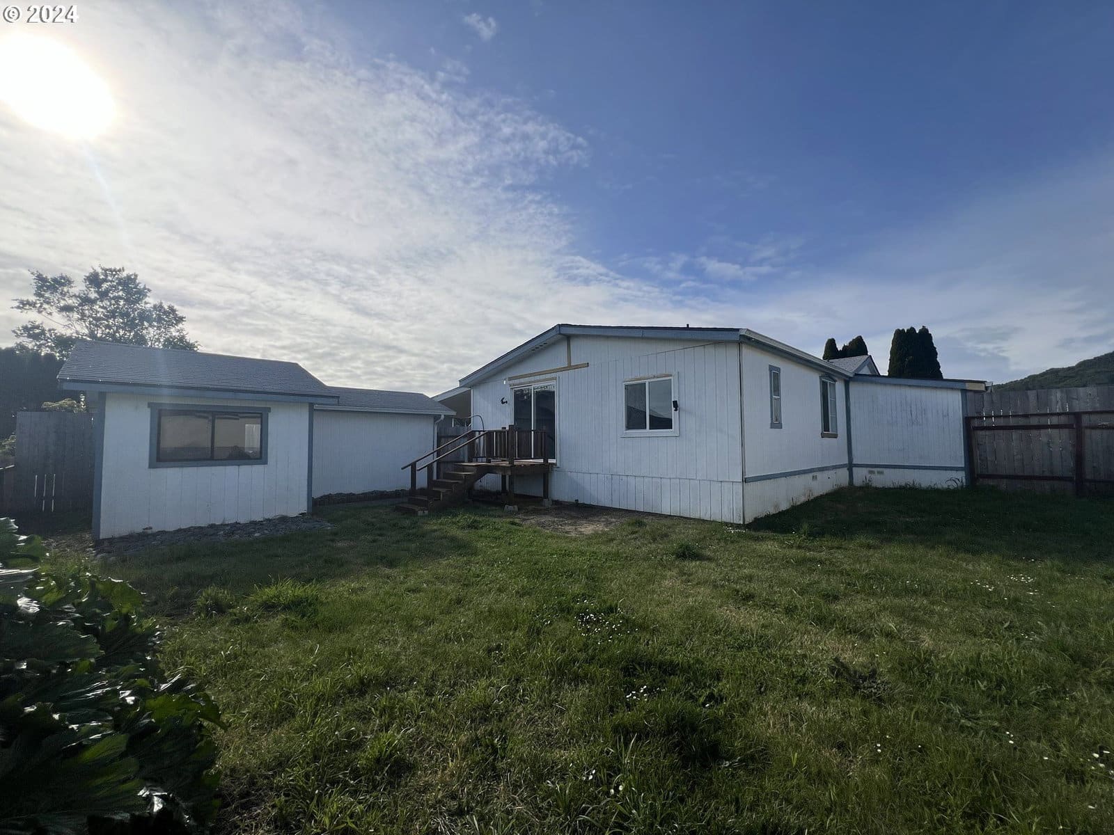 This home is located in a very nice neighborhood. OWN YOUR OWN HOME and LAND at this price is a fantastic deal. Just a hop skip and jump to the Port of Brookings Harbor for shopping, restaurants and much more. Walking distance to the Beach as well. Kitchen is roomy and open to the living room. It has new stainless steel appliances, New laminate and tile flooring installed approximately two years ago. Two Bedrooms, two full baths with The master bedroom being remodeled approximately 2 years ago. New sliding glass door out the master bedroom to the deck to enjoy your fully fenced yard for all your fur babies and barbeque gatherings. A new privacy fence was just installed. It has a detached garage with a long car port. No HOA, No CC&R. Located in harbor and on a a Cul-de-sac. Home is being sold as-is. Call your Realtor for more information today.