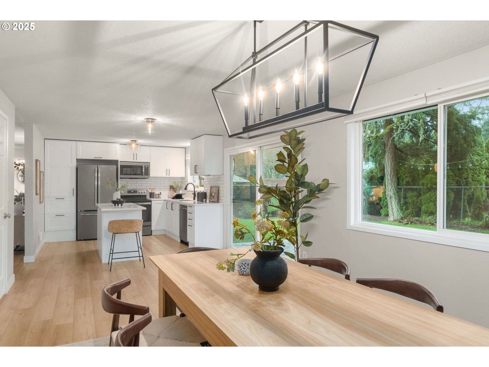 Welcome to this move-in ready single-level ranch in a quiet Hillsboro neighborhood. Step inside to discover luxury vinyl flooring flowing throughout the home, leading to a beautifully remodeled kitchen where quartz countertops, tile backsplash, and stainless steel appliances create a modern gathering space. The thoughtful updates continue with central air conditioning installed in 2020, ensuring year-round comfort in this single-level layout. Natural light fills the living spaces throughout the day. The attached two-car garage features an automatic opener for everyday convenience. Outside, the 7,405 square foot lot offers multiple outdoor living zones. The stamped concrete patio provides an ideal spot for entertaining, while garden beds and a tool shed support your outdoor hobbies. Mature landscaping frames the property beautifully. Located in a quiet neighborhood with a 6 minute walk to the nearest Max Station. No HOA fees. [Home Energy Score = 6. HES Report at https://rpt.greenbuildingregistry.com/hes/OR10243138]