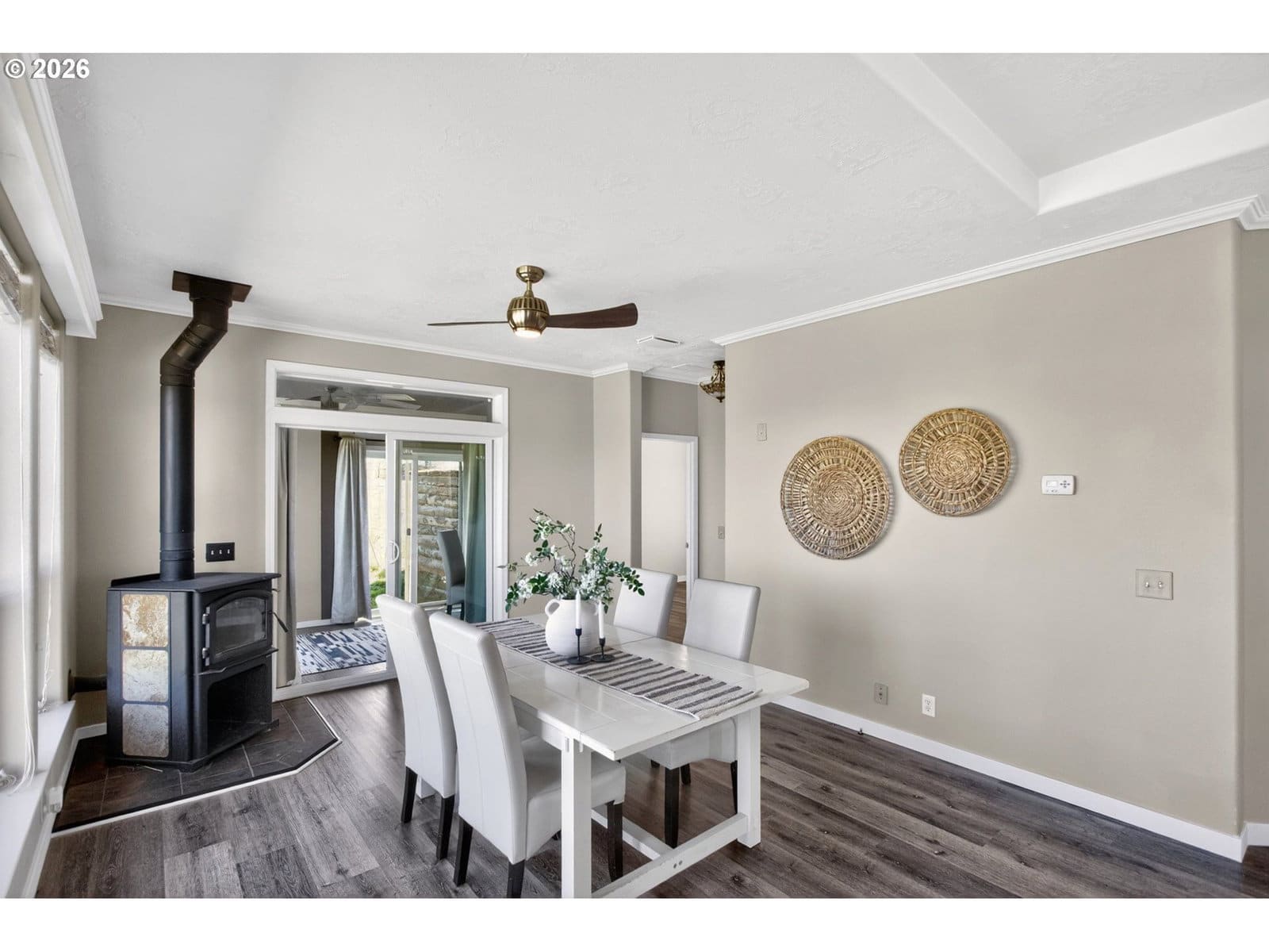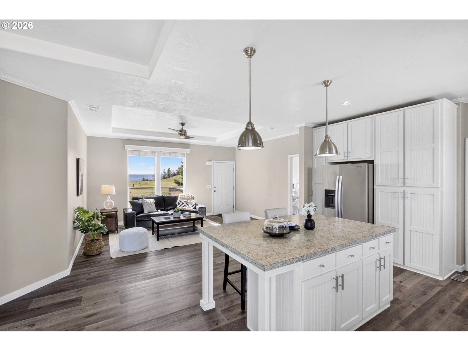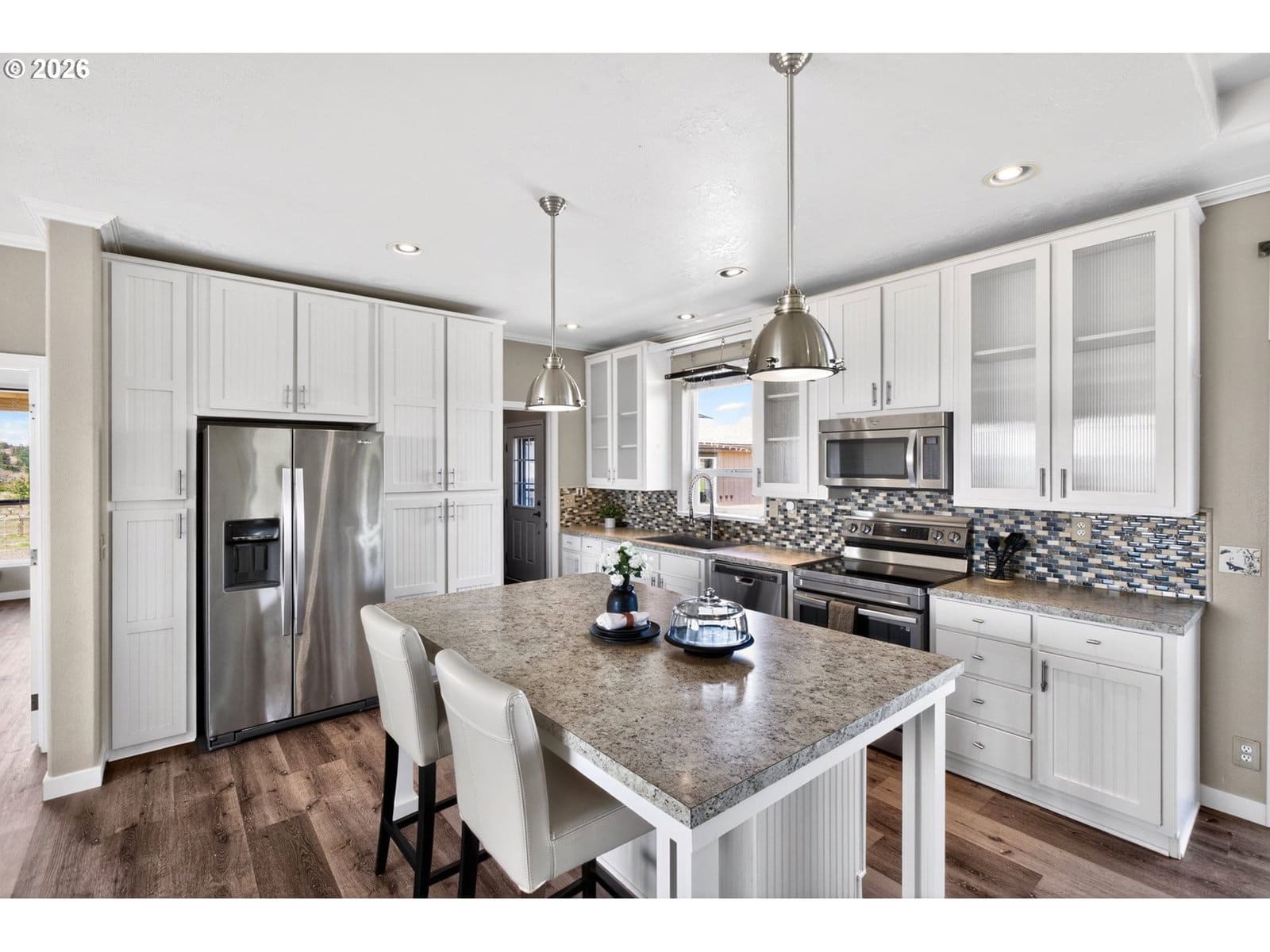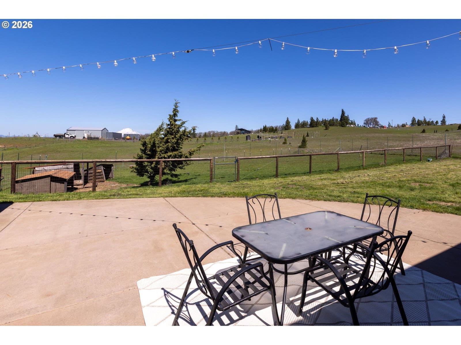Perched atop a hill on almost 6 acres, this beautifully maintained 2015 manufactured home offers sweeping views of Mt. Adams and the perfect blend of comfort and country living. Ideally situated on the dividing line between The Dalles and Mosier, you'll enjoy quick access to both The Dalles and Hood River while savoring your own private retreat. Inside, soaring 10-foot ceilings and an open floor plan fill the home with natural light. The cook's kitchen features a stainless farm sink and large island, while the living area centers around a cozy wood-burning stove. The large primary suite is joined by two additional bedrooms, a full bath, and a laundry room with direct deck access. A heat pump provides efficient year-round comfort, and a connected Starlink system ensures lightning speed internet access. Outside, a deck, hot tub patio, fenced yard, and dog run make outdoor living easy. Wildlife — birds, deer, and wild turkeys — roam freely around the property. A 16 ft electric steel gate and 4 ft man-gate provide privacy and security. This equestrian-ready property includes a 24x24 metal barn with water and separate power, a 14x24 hay extension (approx. 10 tons capacity), and a 12x12 Noble Horse Shelter. Roughly 3 acres are divided into three areas with 4 ft no-climb electrified fence and cross-fencing. A seasonal pond and a large graveled turnaround — with space for horse trailers and RVs — complement the detached oversized garage and 10x20 shed.Recent upgrades include new flooring and baseboards, fresh exterior paint (2024), a converted sunroom/office, and a 10 kW solar system with battery storage for energy efficiency and grid resilience. The home is built on the Cornerstone Foundation System, exceeding requirements for tie-downs, and is also wired for a portable generator for backup power. EFU tax deferral adds further value.A rare opportunity for peaceful country living with modern amenities, room for animals, and easy access to town.