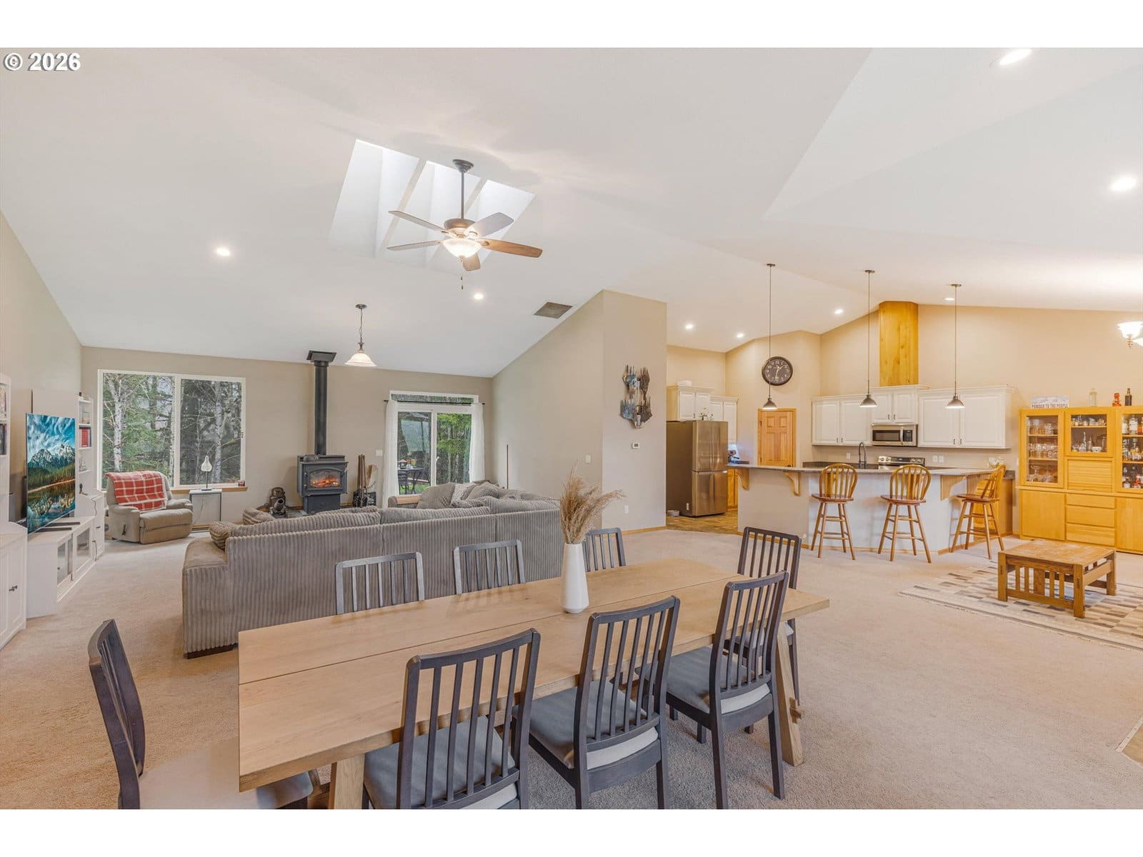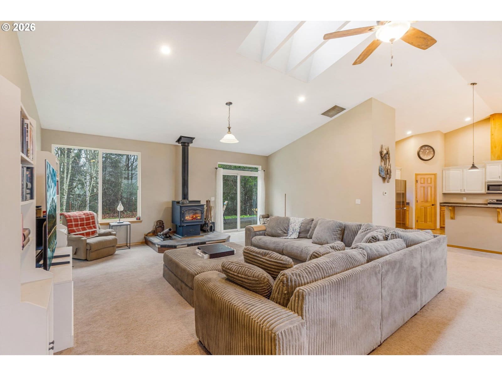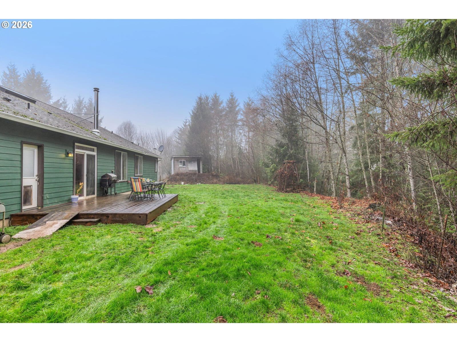 2014 custom built 2650 sq ft 3 bed 2-1/2 single level home with oversized 2 car attached garage on 17.2 acres. Warm yourself by the wood stove in the vaulted living room and watch the wildlife pass through the area out the large windows. Huge kitchen with sink in island to improve workflow and allow socializing, two large pantries, stainless steel appliances and vaulted ceiling. Primary bedroom with ensuite bathroom plumbed and ready for new custom tub/shower, large walk in closet. second bedroom has walk-in closet. Vaulted oversized covered front porch, apple trees, plum trees, blackberries, wild cherries, chicken coop, man made pond with ducks, large area for camping, cross fencing, pasture, marketable timber (part of property is in deferral), compacted driveway can handle heavy vehicles, well with holding tank that is regularly inspected, 6in fire main, Detached 24x40 shop-insulated with separate 220amp service and concrete floor. RV parking pad with electric hook up next to shop. New exterior paint in 2024