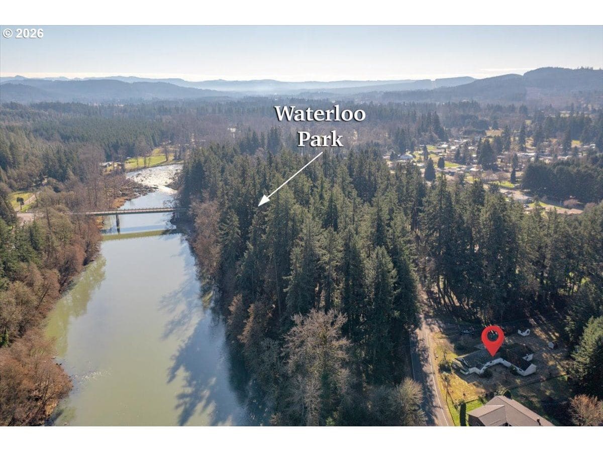Almost riverfront! Waterloo County park and river fun are just right across the street. Large garage / possible workshop area. Flat corner lot and possible area for boat, RV, or work equipment. Country living for a town price on this half acre lot. Ready for your vision and priced to reward it. See Instructions.