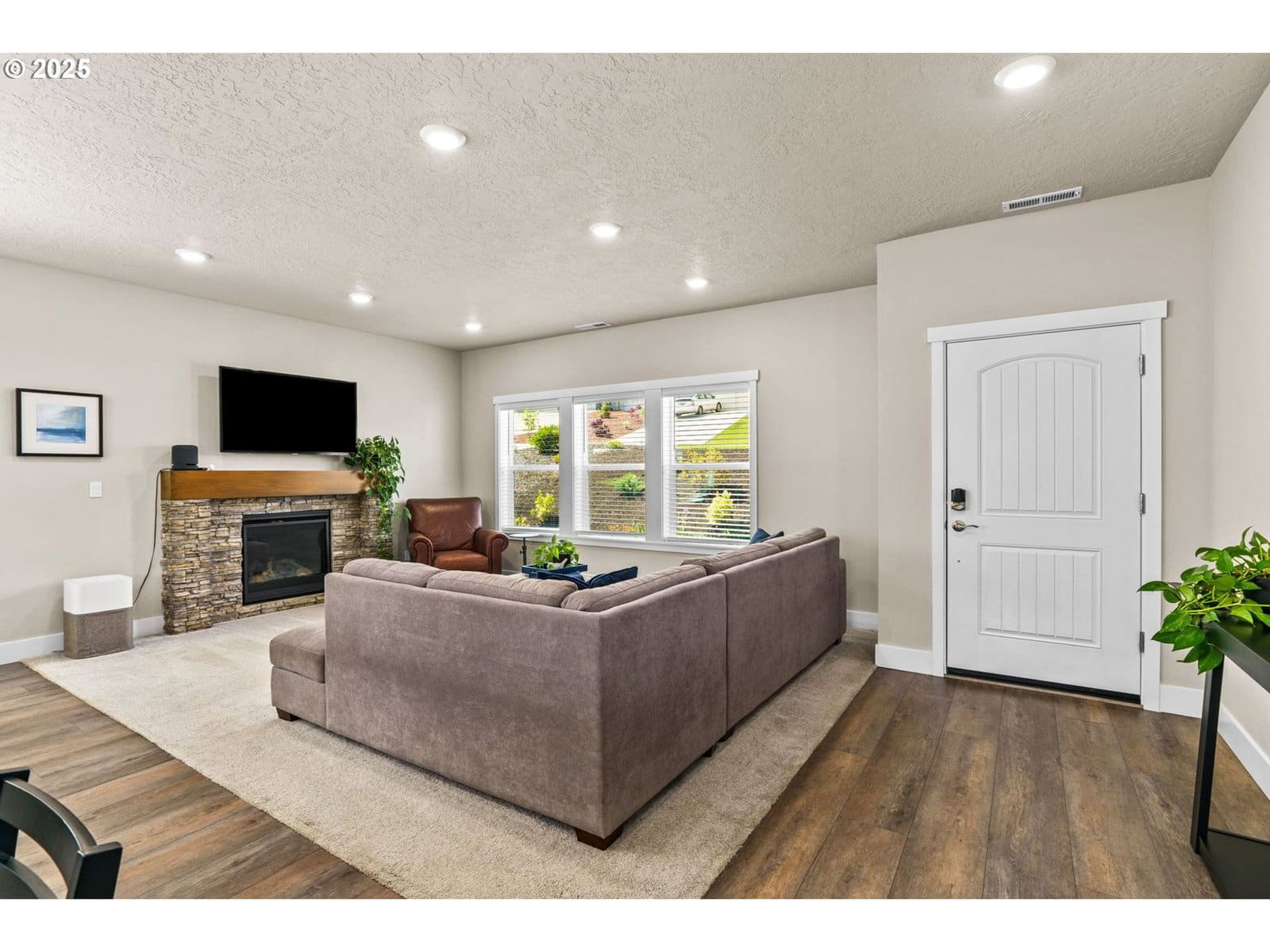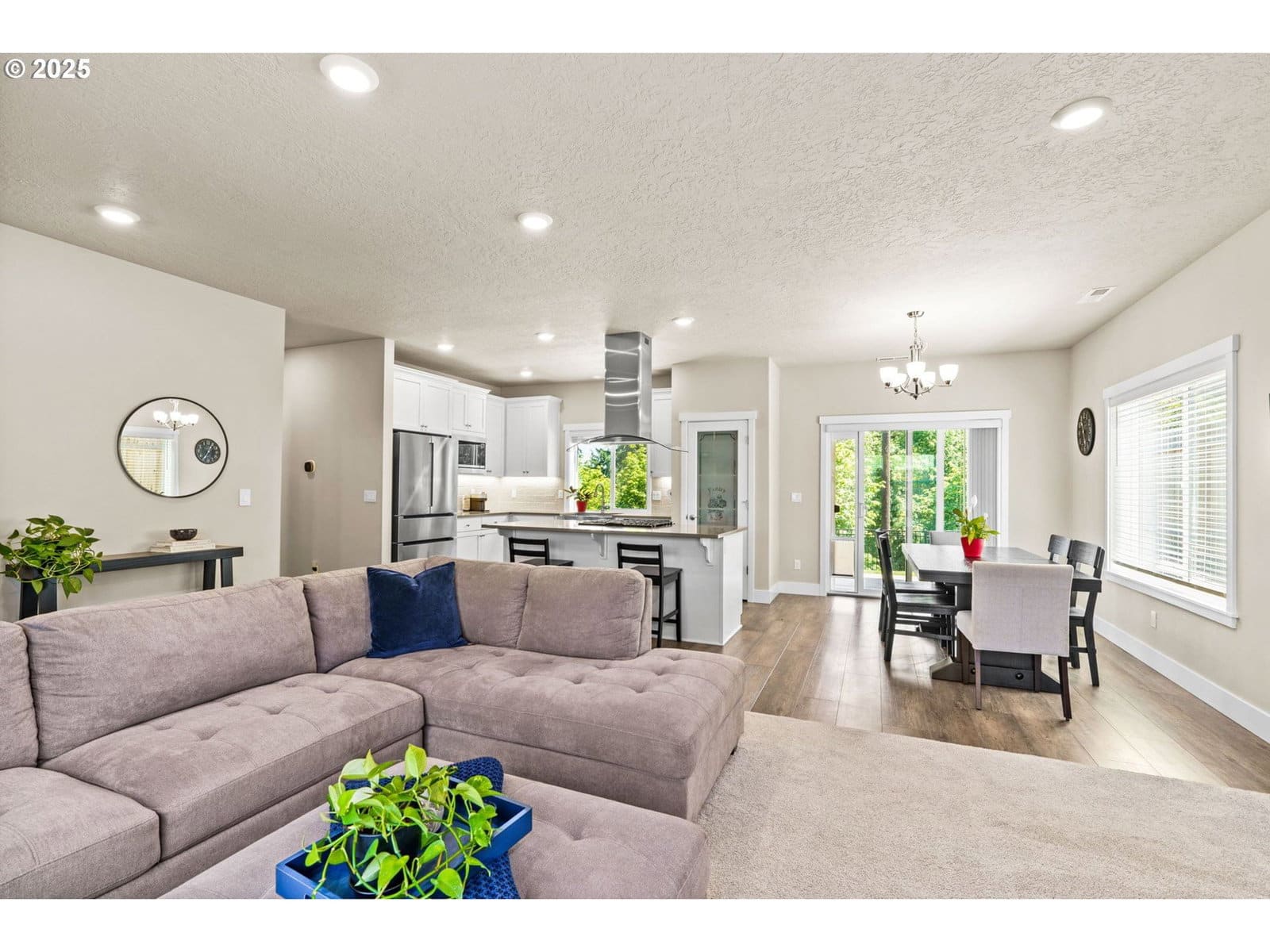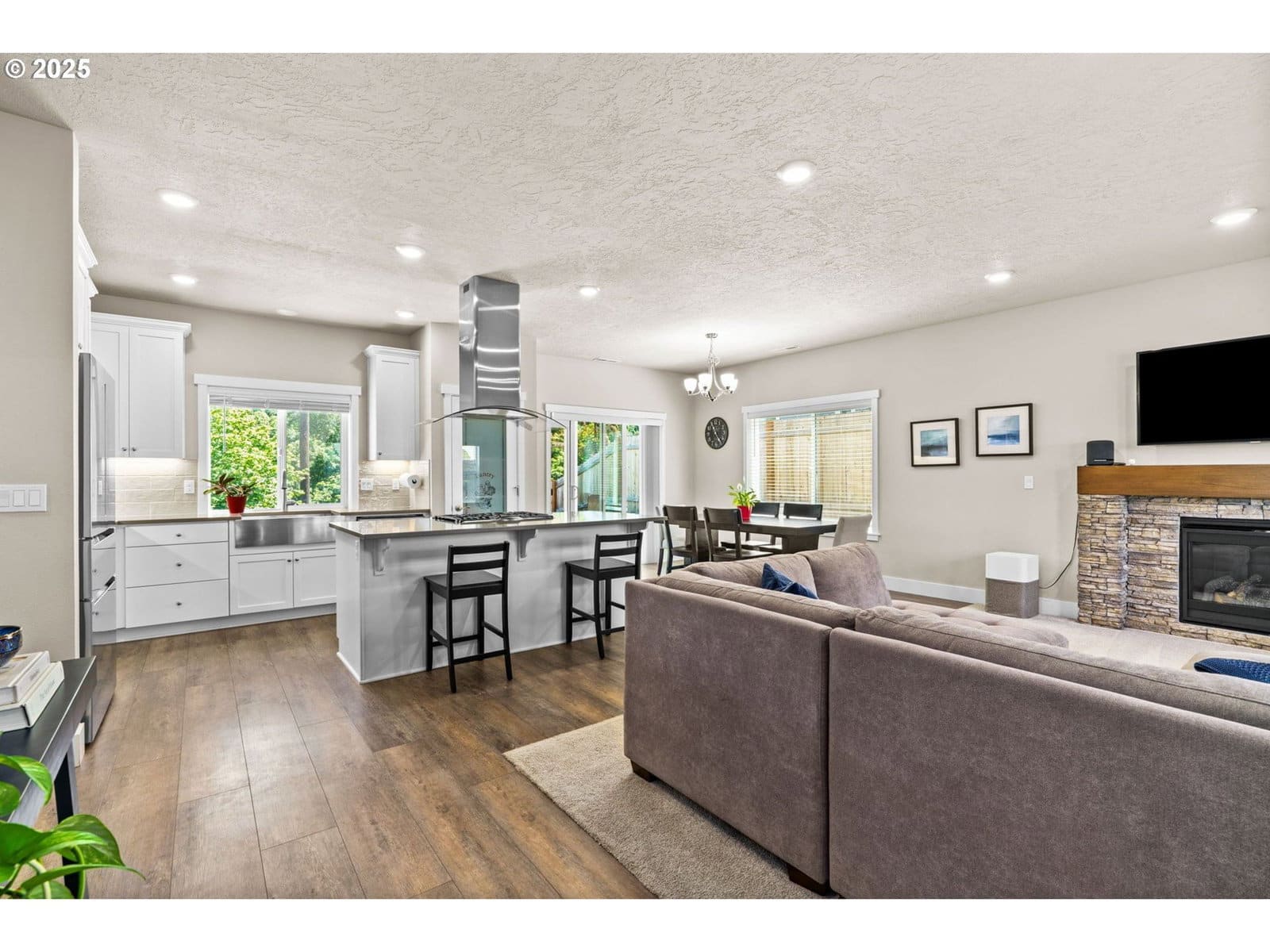 Located in South Eugene’s prestigious Moon Mountain subdivision, this beautifully built 2023 home by award-winning MonteVista Homes showcases the popular Douglas Floorplan, offering 4 bedrooms, 3 full baths, and 2,479 sq ft of thoughtfully designed living space.The open-concept kitchen is a chef’s dream, featuring quartz countertops, stainless steel appliances, a farmhouse sink, large island with 5-burner gas range, and a custom designer range hood. The kitchen flows effortlessly into a spacious living area complete with a gas fireplace and expansive views—ideal for both entertaining and everyday relaxation. Upstairs, you'll find a versatile bonus room, two well-sized bedrooms, and a stunning primary suite with a spa-like bath that includes a soaking tub, tiled shower, and dual vanities. On the main level, a private guest suite with full bath provides the perfect space for visitors or a home office. Enjoy outdoor living year-round on the covered patio overlooking a professionally landscaped yard with a sprinkler system—and take in breathtaking views of the city and surrounding mountains. All of this just minutes from the University of Oregon, I-5 access, and the vibrant amenities of downtown Eugene.