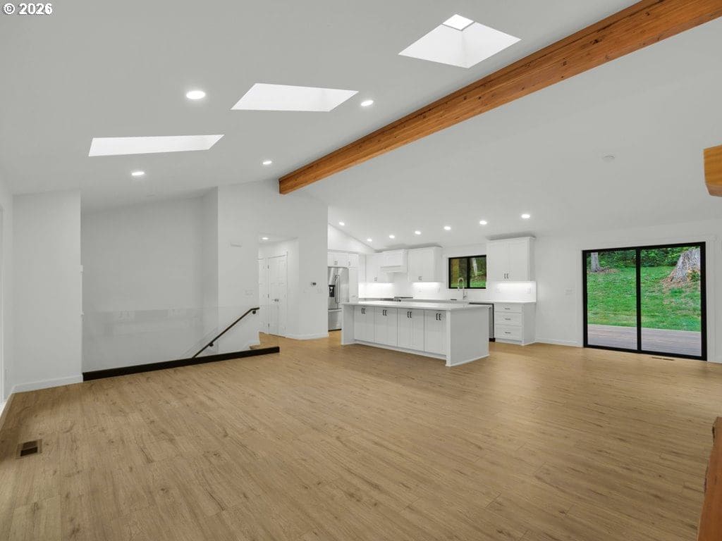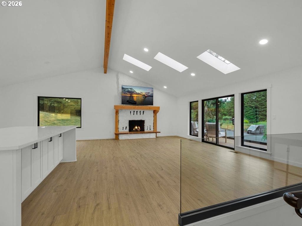 To be featured on HGTV’s hit show House Hunters this spring! Step into a true masterpiece where modern luxury meets nature. This meticulously custom-rebuilt home is unlike anything else on the market—every detail brand new from the ground up and thoughtfully designed for exceptional comfort and functionality. Soaring ceilings with dramatic wood-sawn timber beams anchor the interior, leading to a gourmet kitchen with KitchenAid appliances and sleek quartz countertops. The spa-inspired primary suite impresses with a custom enclosed shower featuring six showerheads. Added conveniences include upstairs laundry, a second kitchen on the lower level, and a full-size utility room. Outdoors, enjoy a private retreat with an expansive Brazilian hardwood deck with glass railing—ideal for entertaining—plus a secluded backyard featuring Indonesian hardwood decking and a hot tub hookup. A detached 720 sq ft finished and heated shop offers endless possibilities for hobbies or storage. Additional highlights include lush landscaping, a treehouse, new cedar fencing with RV gate, and eco-friendly upgrades such as a new heat pump, furnace, and A/C, along with two EV charging stations. Backing onto state land, this home offers direct access to hiking and biking trails while remaining conveniently located.Don’t just imagine this extraordinary home—experience it. Use of preferred lenders may unlock maximum incentives.