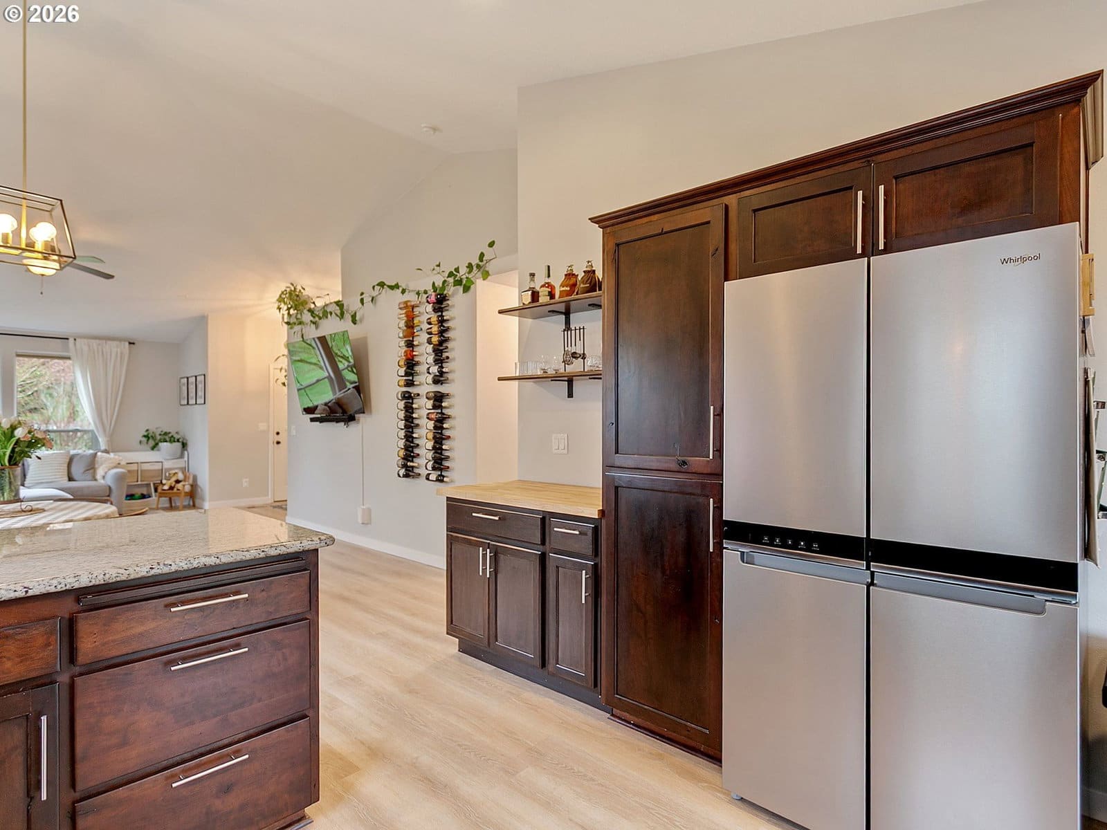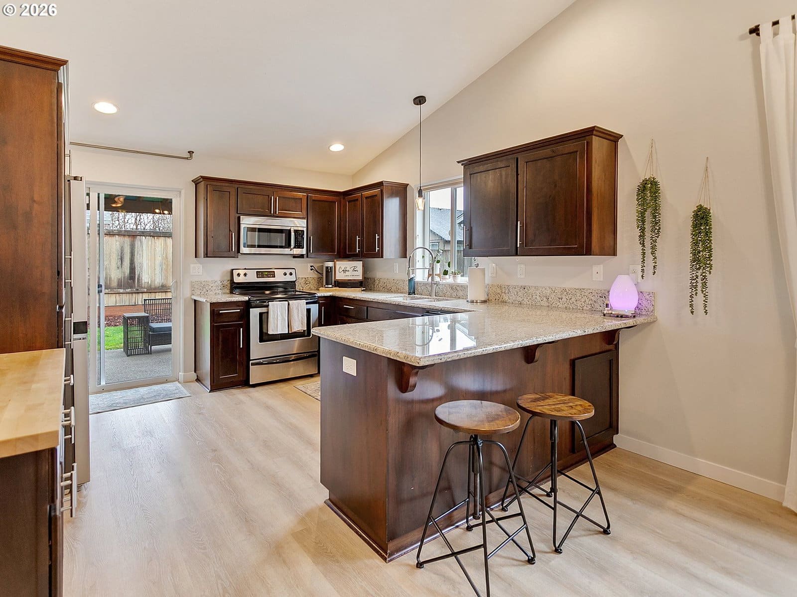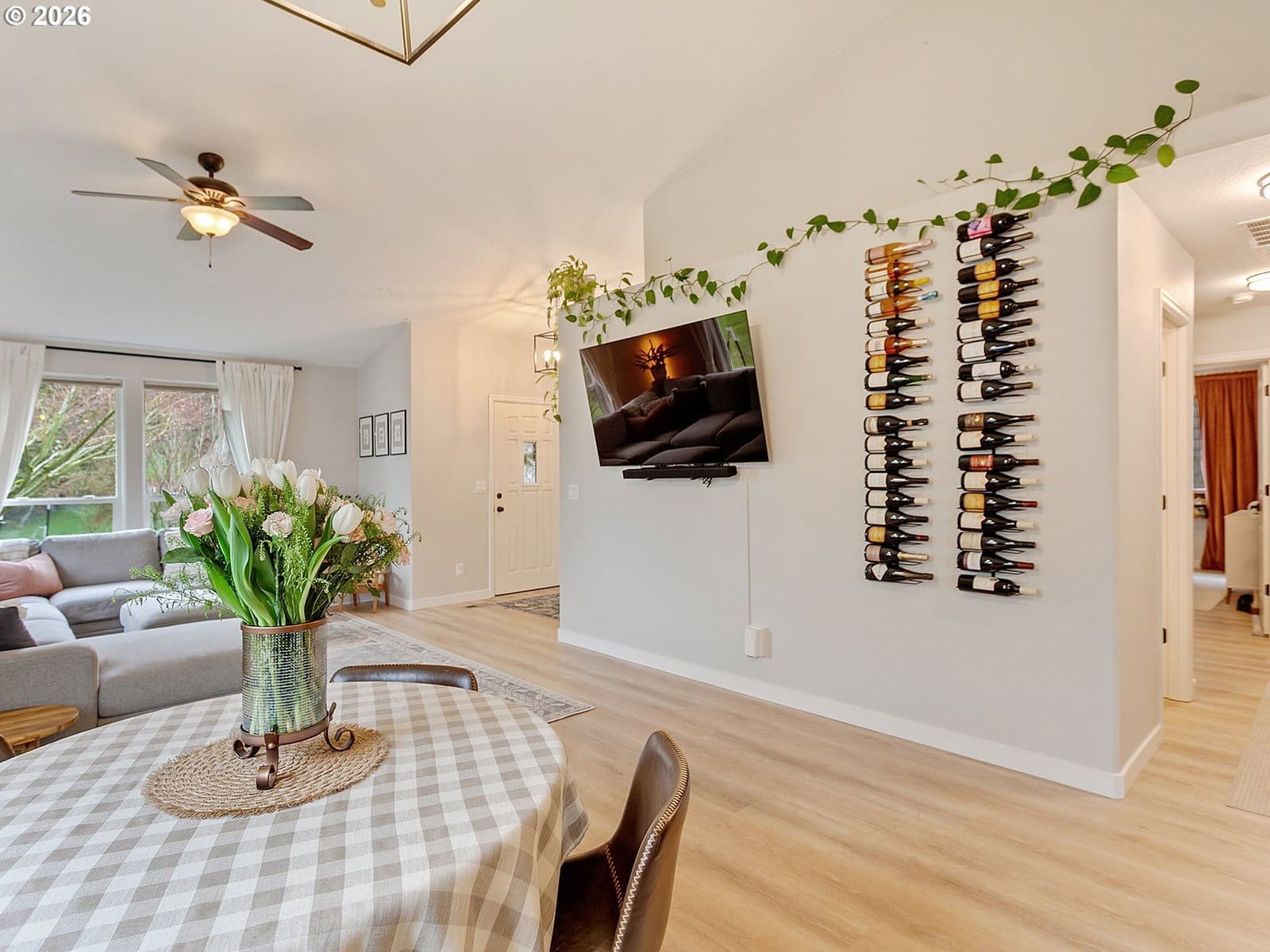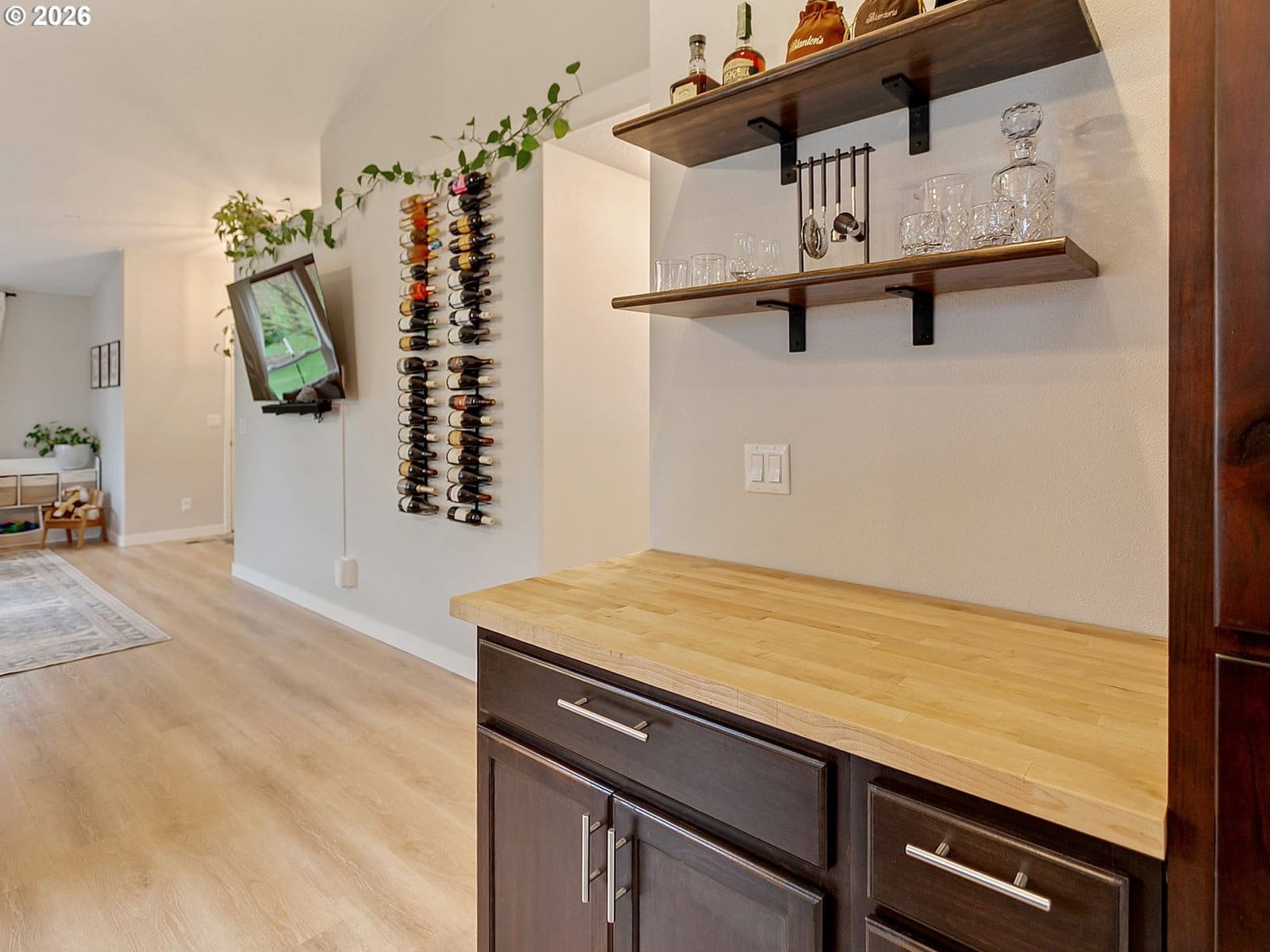 Located in sought after West Salem, this inviting and updated one level offers a comfortable and functional layout designed for easy living. Tall ceilings, light filled rooms and durable LVP flooring run throughout the home, while the open floor plan seamlessly connects the living room, dining area, and kitchen. The kitchen features stainless steel appliances and a built-in butcher block bar that adds warmth and functionality. The private primary suite includes a walk-in closet with built-ins and a full bathroom, while two additional bedrooms and a second full bath provide flexibility for guests, hobbies, or a home office. A dedicated laundry room with shelving and direct access to the two-car garage adds everyday convenience.Outside, the backyard opens to a large green space, creating a peaceful extension of the property. A covered patio and garden beds offer space to relax, entertain, or grow your own seasonal favorites. Recent improvements including updated flooring, interior and exterior paint, fixtures, and a newer water heater enhance the homes comfort and move-in-ready appeal. Request a list of updates and improvements provided by the seller. This home is turn-key!