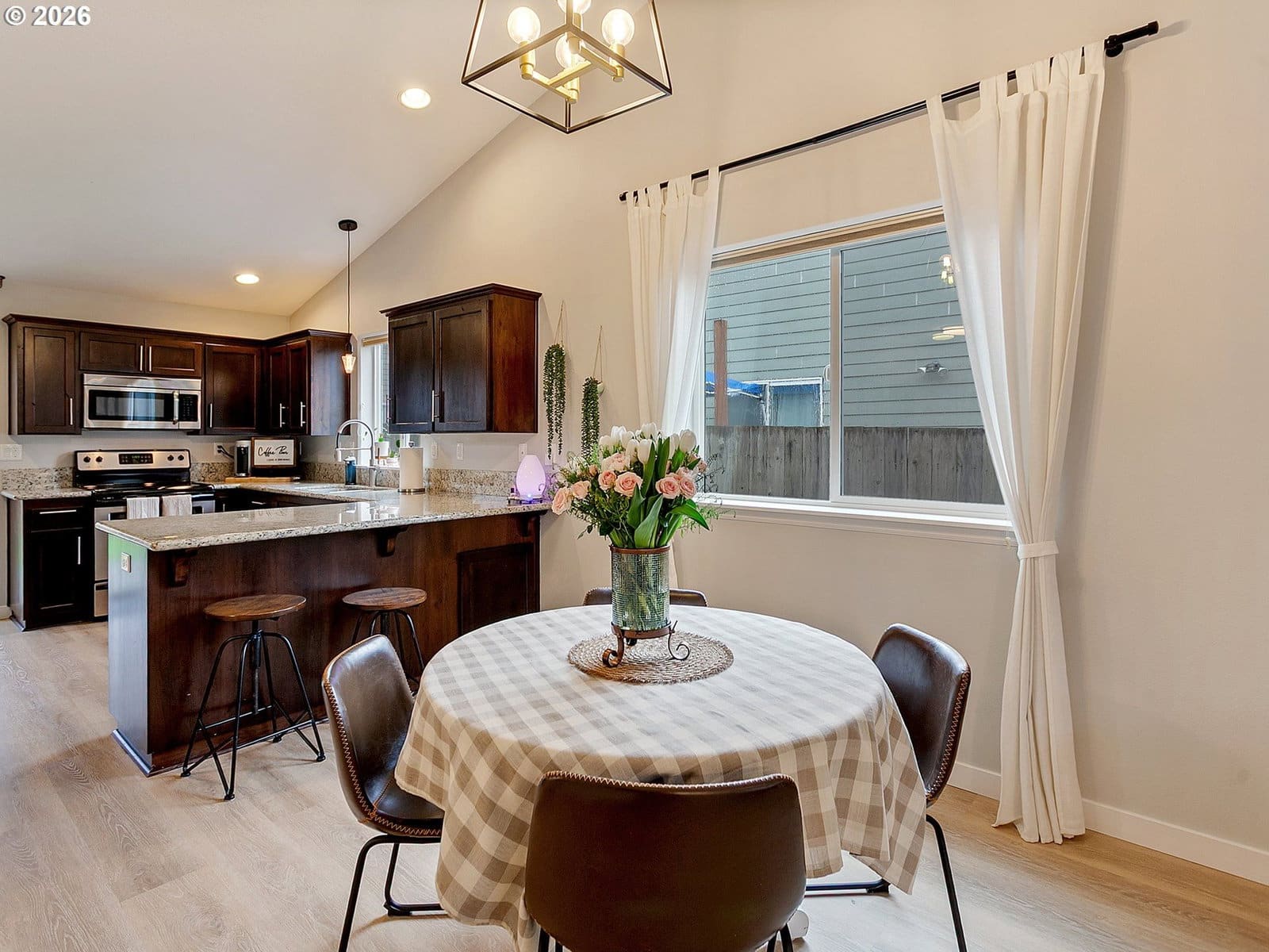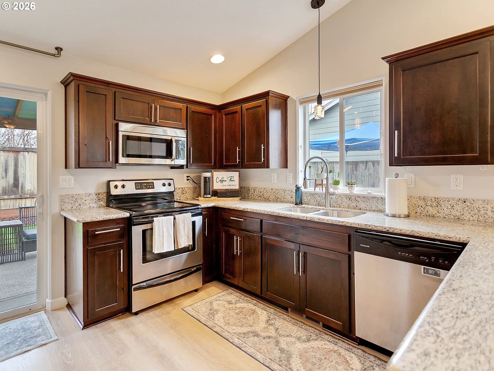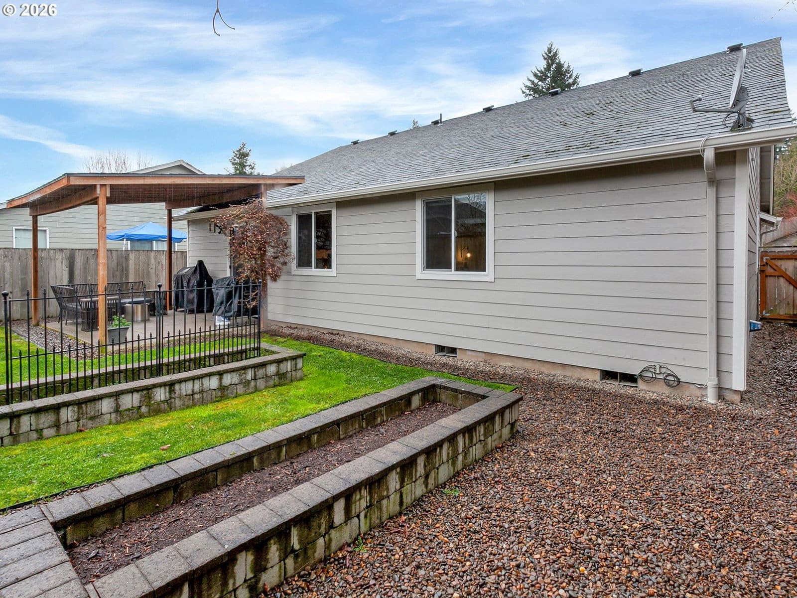 Located in sought after West Salem, this inviting and updated one level offers a comfortable and functional layout designed for easy living. Tall ceilings, light filled rooms and durable LVP flooring run throughout the home, while the open floor plan seamlessly connects the living room, dining area, and kitchen. The kitchen features stainless steel appliances and a built-in butcher block bar that adds warmth and functionality. The private primary suite includes a walk-in closet with built-ins and a full bathroom, while two additional bedrooms and a second full bath provide flexibility for guests, hobbies, or a home office. A dedicated laundry room with shelving and direct access to the two-car garage adds everyday convenience.Outside, the backyard opens to a large green space, creating a peaceful extension of the property. A covered patio and garden beds offer space to relax, entertain, or grow your own seasonal favorites. Recent improvements including updated flooring, interior and exterior paint, fixtures, and a newer water heater enhance the homes comfort and move-in-ready appeal. Request a list of updates and improvements provided by the seller. This home is turn-key!