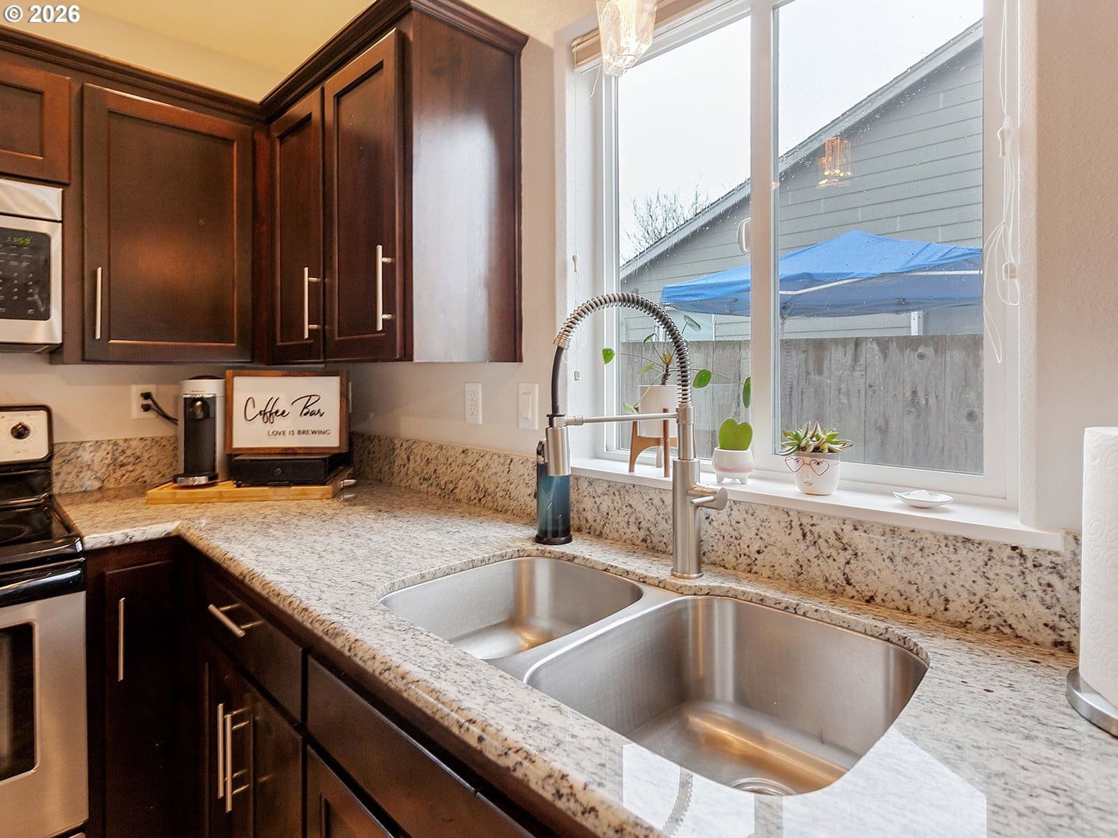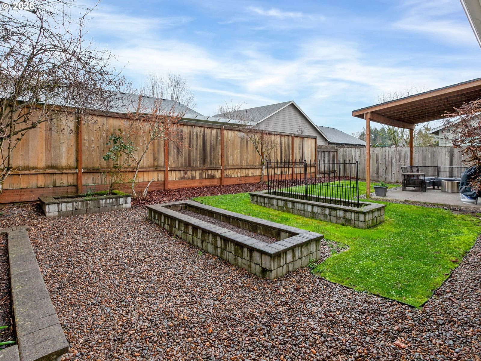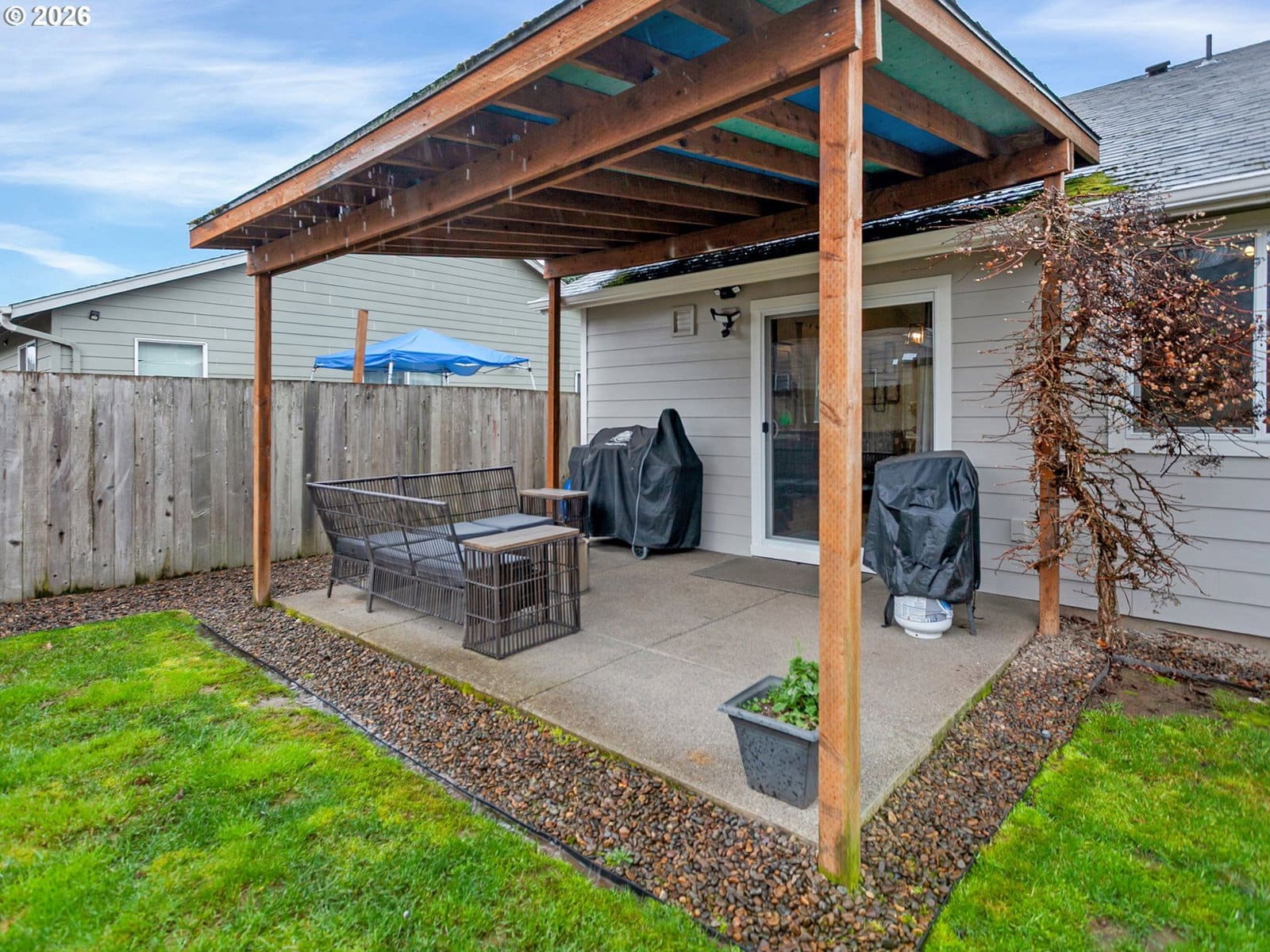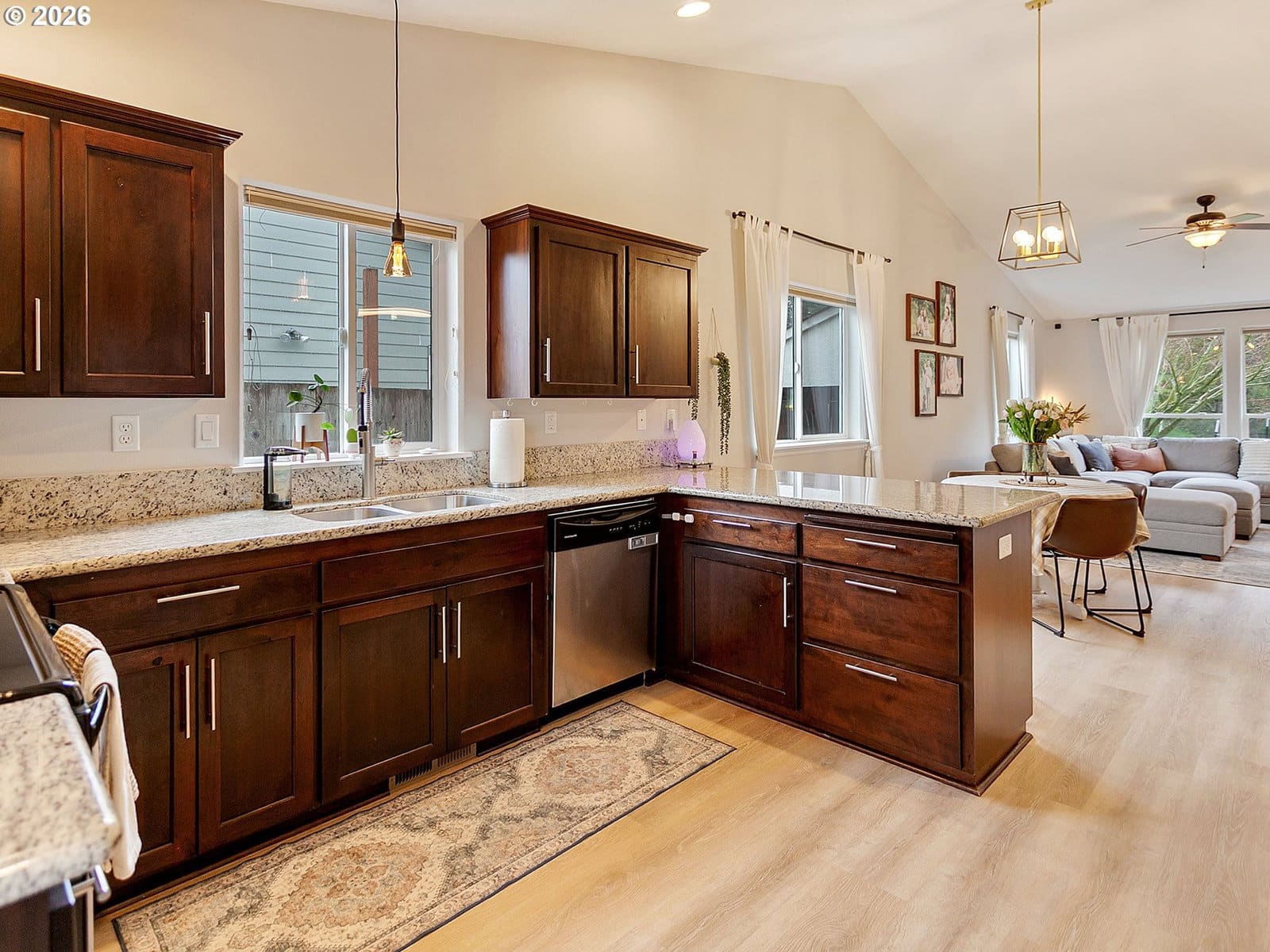 Located in sought after West Salem, this inviting and updated one level offers a comfortable and functional layout designed for easy living. Tall ceilings, light filled rooms and durable LVP flooring run throughout the home, while the open floor plan seamlessly connects the living room, dining area, and kitchen. The kitchen features stainless steel appliances and a built-in butcher block bar that adds warmth and functionality. The private primary suite includes a walk-in closet with built-ins and a full bathroom, while two additional bedrooms and a second full bath provide flexibility for guests, hobbies, or a home office. A dedicated laundry room with shelving and direct access to the two-car garage adds everyday convenience.Outside, the backyard opens to a large green space, creating a peaceful extension of the property. A covered patio and garden beds offer space to relax, entertain, or grow your own seasonal favorites. Recent improvements including updated flooring, interior and exterior paint, fixtures, and a newer water heater enhance the homes comfort and move-in-ready appeal. Request a list of updates and improvements provided by the seller. This home is turn-key!