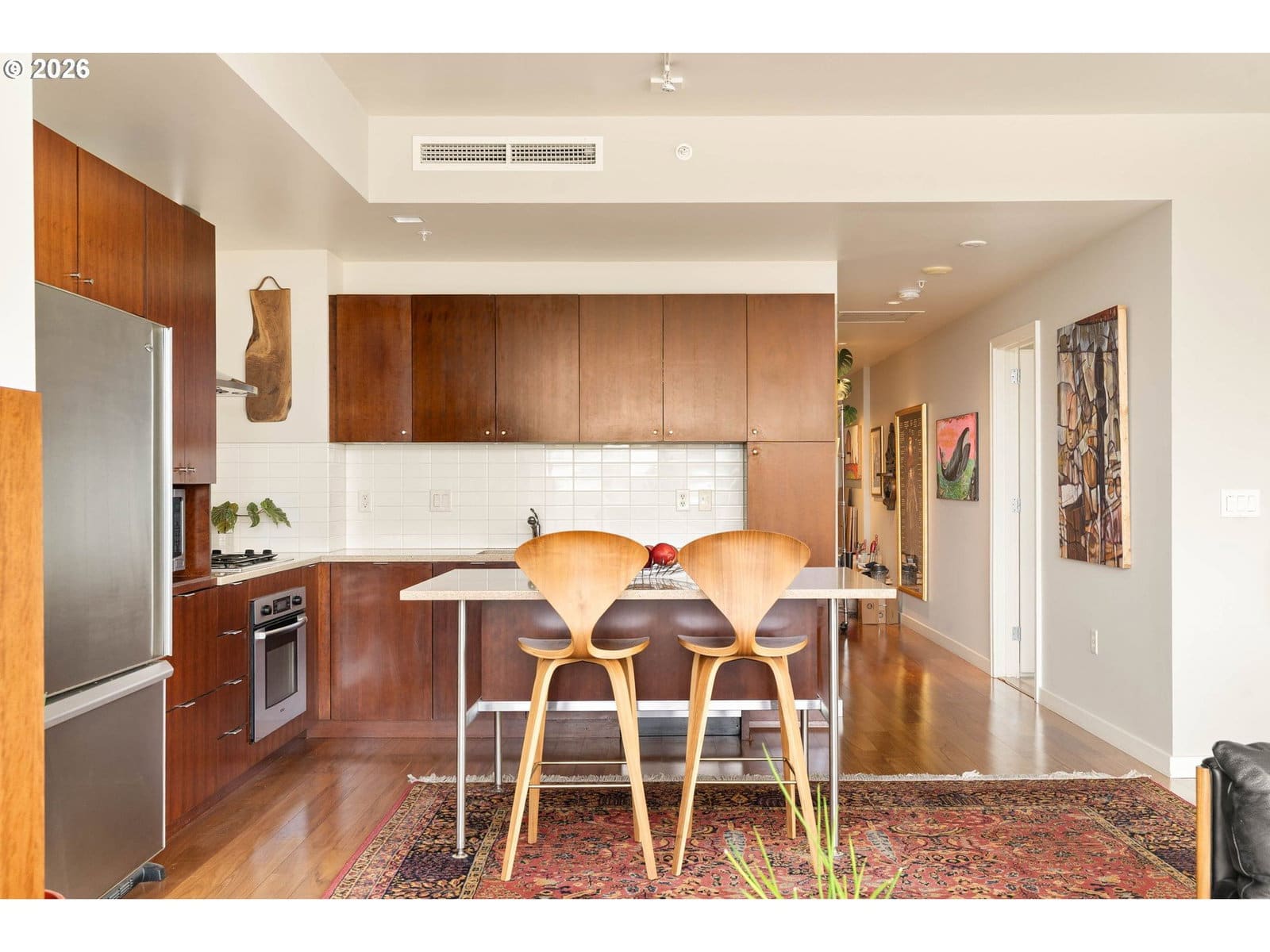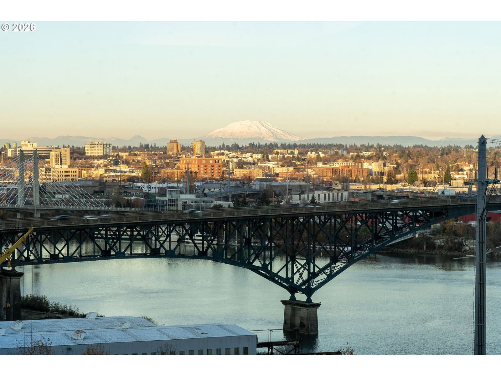 Soak in breathtaking views of Mt. Hood, Mt. St. Helens, the Willamette River, and Portland’s skyline from this exceptional Meriwether home. This spacious one bedroom layout offers a rare, fully enclosed den/office with a sliding door, two full baths, fireplace, generous primary suite with walk-in closet & bathroom with double sinks, large covered deck and amazing views from every room. Home is complete with 2 single parking spaces & storage unit. Truly one of the best floor plans & view homes in South Waterfront - a tranquil neighborhood where nature meets city with the river, parks, restaurants, fitness clubs, Streetcar, OHSU & more.