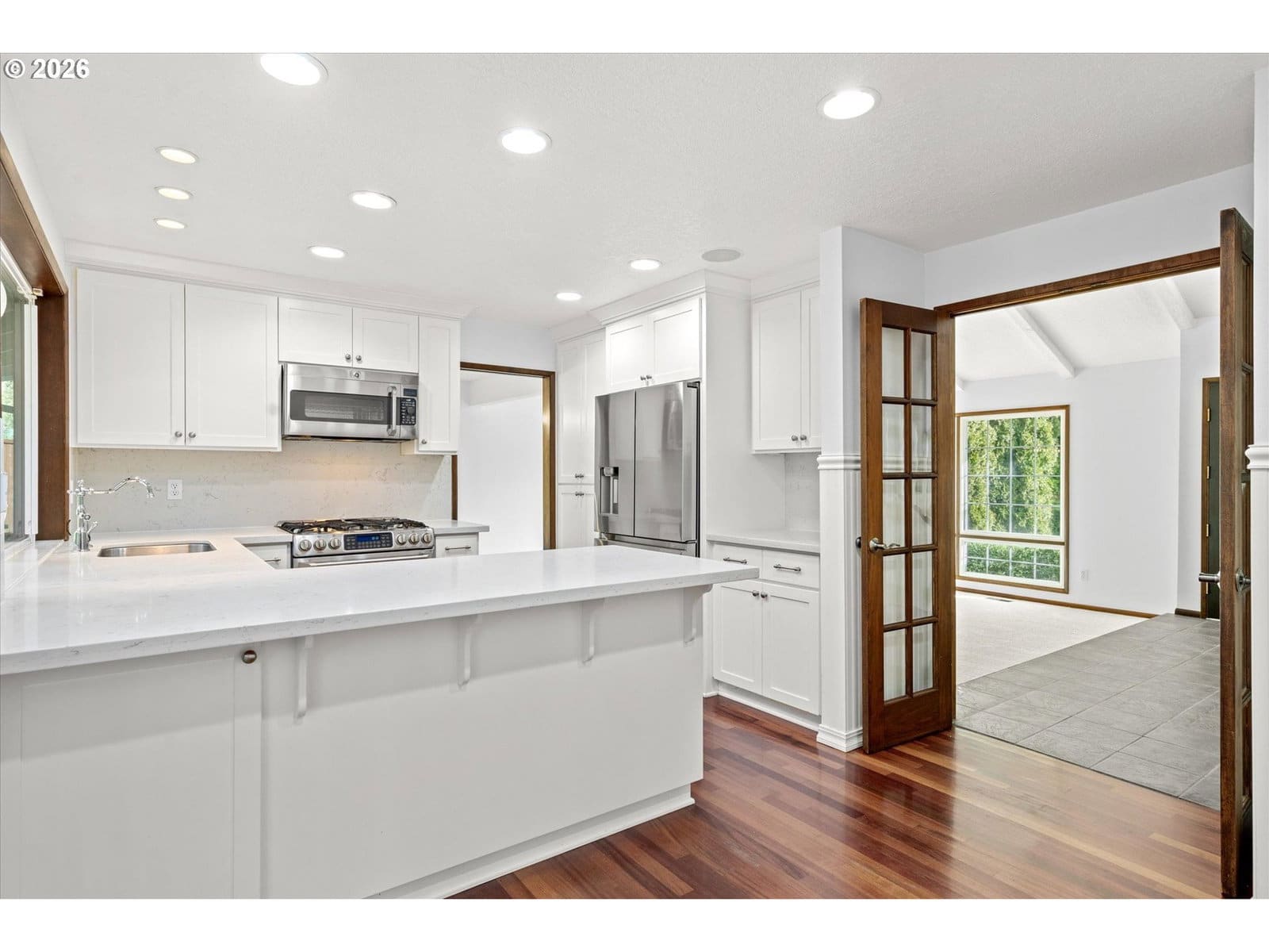 Welcome to a home where character meets contemporary convenience. This 2234 sqft tri-level home is tucked away on a peaceful cul-de-sac, offering privacy and curb appeal from the moment you arrive. A striking vintage extra-large front door and classic cedar siding set the tone for the warmth found inside. The vaulted living room creates an open, airy atmosphere and is anchored by a dramatic floor-to-ceiling brick gas fireplace. The thoughtfully designed floor plan flows effortlessly through the main level, where two sliding doors provide seamless access to the backyard—perfect for indoor-outdoor living. Step outside to a custom paver patio ideal for summer gatherings, along with a private garden area and convenient storage shed. Recent updates add peace of mind, including a brand-new 30-year roof, new carpet, and a new furnace. The spacious lower-level family room features a stand-alone gas fireplace, built-in surround sound speakers, and full networking capabilities—making it an excellent option for a media room, work-from-home setup, or flexible living space. With four generously sized bedrooms and three full bathrooms, this home offers classic charm, thoughtful updates, and a highly livable layout in a serene setting.
