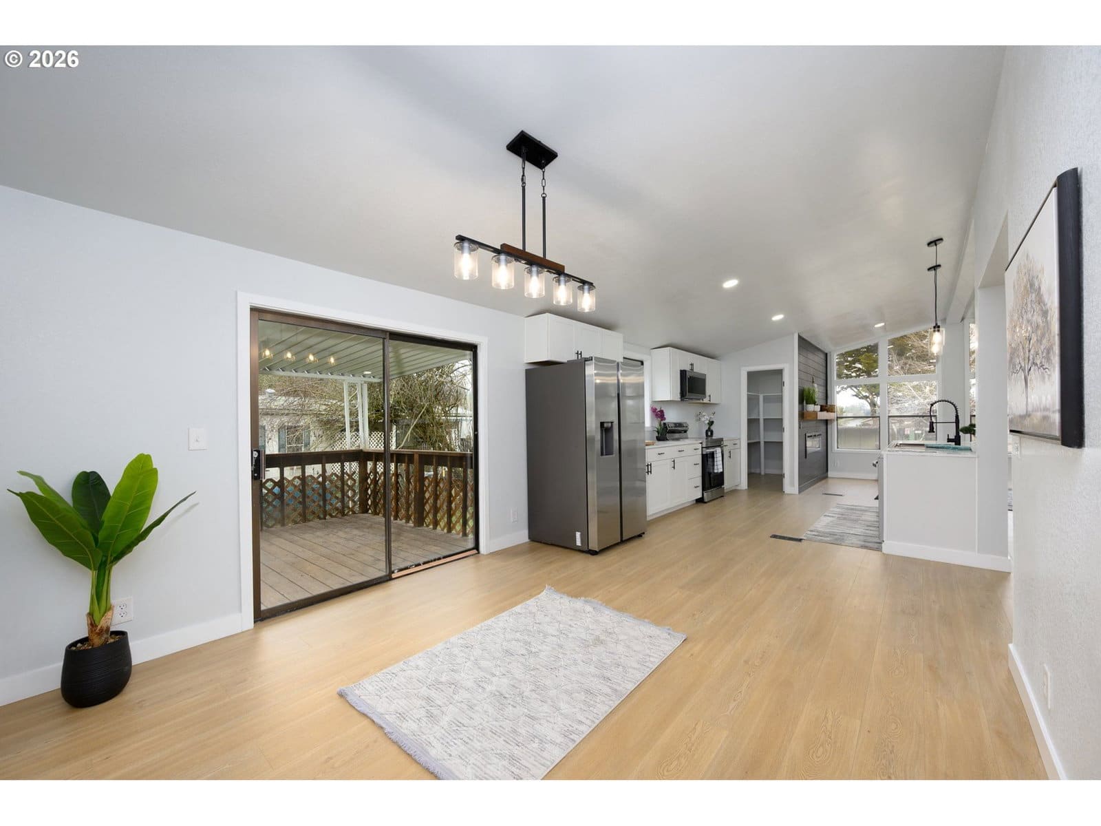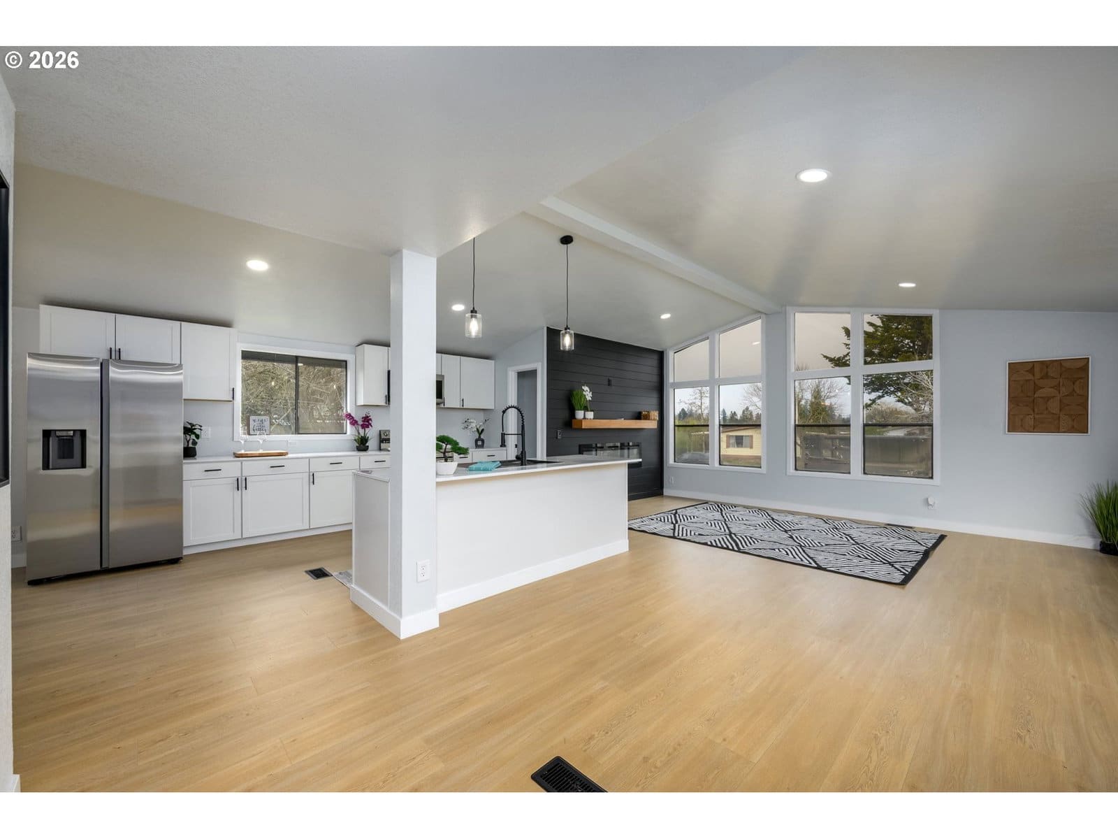 Beautifully remodeled 3-bedroom, 2-bath Manufactured home in-park that has been updated throughout in 2025/2026. Open, inviting layout with all-new fresh drywall, modern lighting, recessed lights, and high-quality waterproof laminate flooring. Major upgrades include a new composition roof, fresh exterior and interior paint, and new interior doors. The remodeled kitchen offers new cabinetry, island, a walk-in pantry, modern finishes, and stainless steel Samsung appliances that are included. Remodeled bathrooms feature new tubs, fixtures, and lighting; the primary bedroom includes a ceiling fan and the bathroom has a 72-inch dual-sink vanity, 60-inch walk-in shower. Bedrooms feature new carpet and padding. Stylish electric fireplace enhances the focal point of the living room, all-new electrical plugs and switches throughout, plus a carport and storage shed for added convenience. The heat pump is approx. 4 years old with A/C. This home is gorgeous and move-in ready-a must-see! Space rent for the land is $500.00 per month.