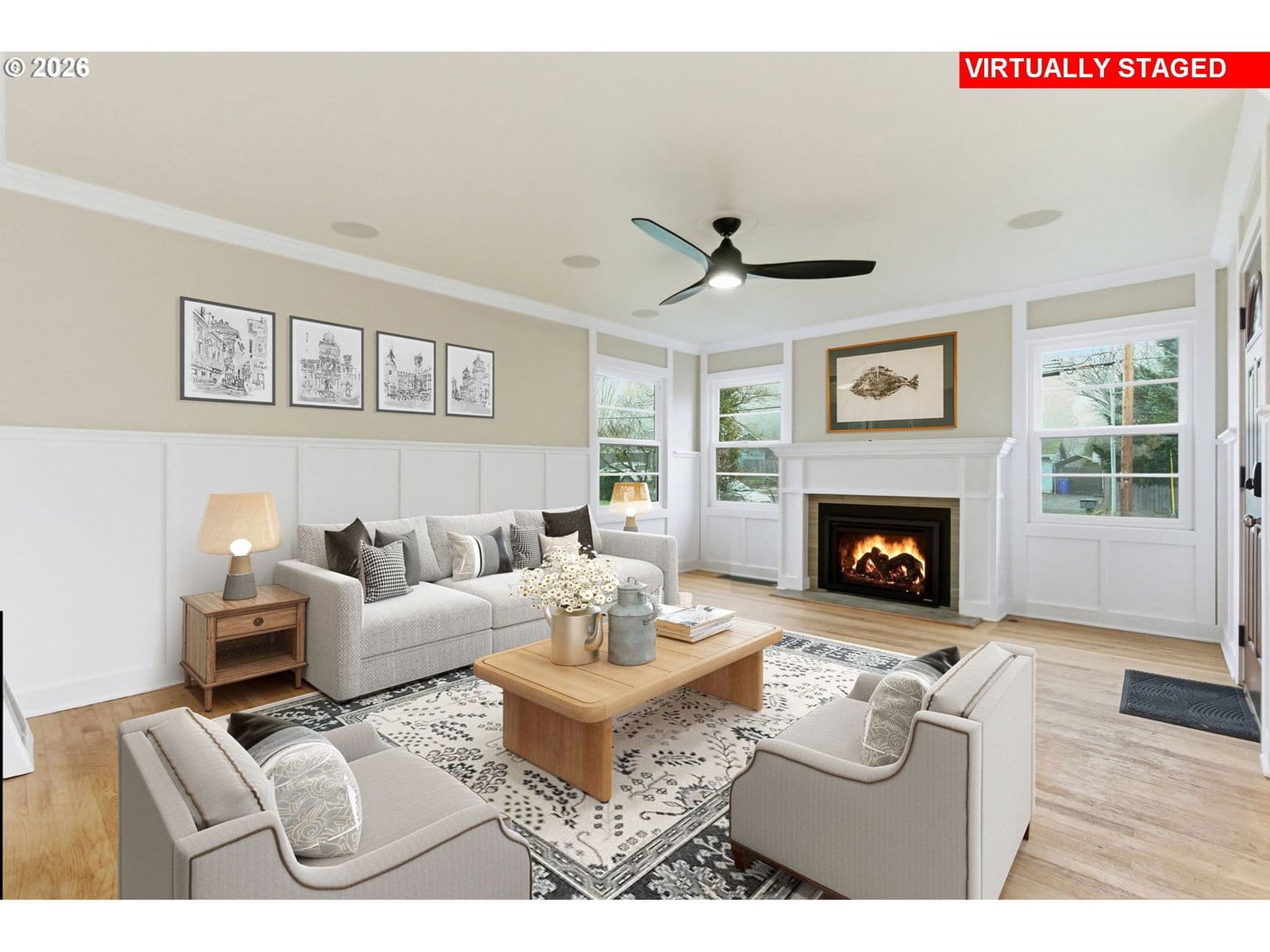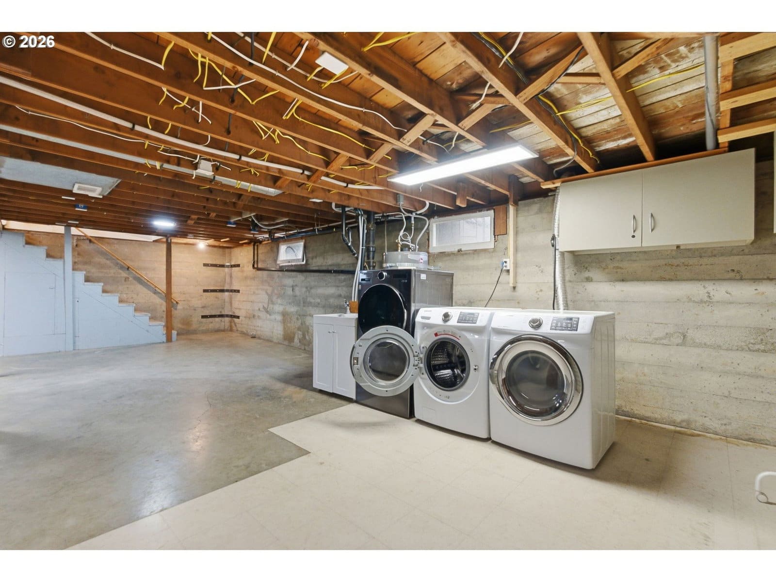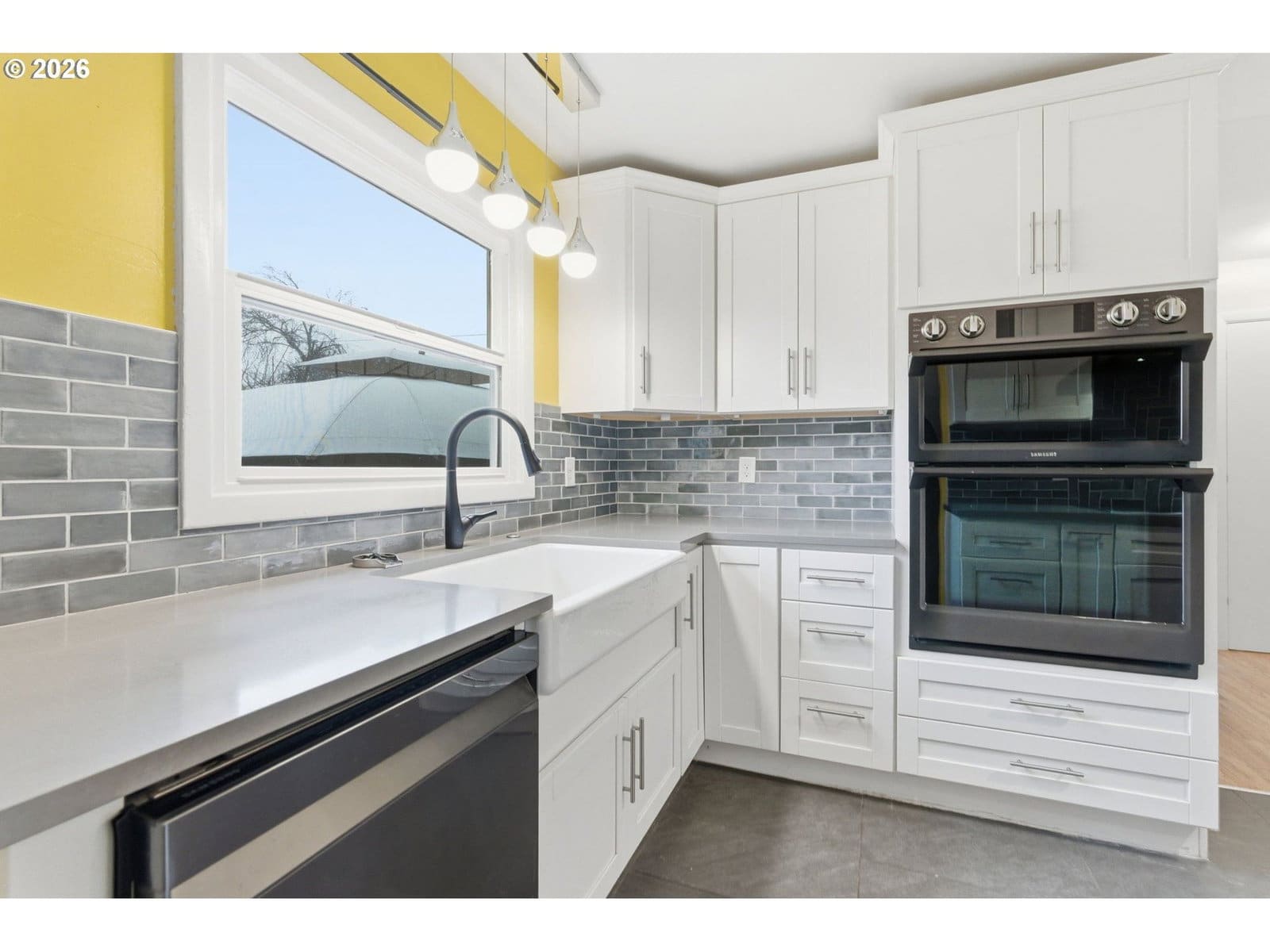 Beautifully updated Portland home where classic character meets modern upgrades. This well-maintained property offers timeless charm and thoughtfulimprovements throughout.The inviting living room is a standout with a cozy gas fireplace, custom mantel, built-in surround sound, and elegant wainscoting. The dining area continues the wainscoting detail, creating a cohesive and welcoming entertaining space. Gorgeous original hardwood floors flow throughout the main living areas. The home offers 3 bedrooms (3rd non-conforming), providing flexible space for a home office or guest room. The third bedroom includes hardwood floors, a walk-in closet, and its own mini-split for heating and cooling. The beautifully remodeled kitchen features abundant new cabinetry, quartz countertops, farmhouse sink with cup washer, tasteful backsplash, and slate floors. High-end stainless steel appliances include a French-style refrigerator, dishwasher, bi-oven, built-in microwave with convection and air-fry features, stylish rangehood, and a pantry. The bathroom has also been thoughtfully updated. A full basement offers excellent potential to build equity by finishing the space for additional living area, storage, home gym or Flex space. Major updates provide peace of mind, including a new roof and gutters (2024), triple-pane energy-rated windows (2023–2024), added attic insulation, updated electrical wiring (2024), all interior plumbing and a new water line from the street (2025), newer furnace and heat pump (2023–2024), electrical panel (2020), and gas fireplace(2023). The home is wired with Ethernet in most rooms and for security cameras. Additional features include an electric car charger, washer and dryer included, and a one-car garage. Outdoor amenities include a large covered patio, hot tub with cover, tool shed, garden area, fenced chicken coop, and fully fenced backyard. Zoned RML1 with potential to divide (buyer to verify). Move-in ready with future opportunity. LOVE WHERE YOU LIVE!! [Home Energy Score = 5. HES Report at https://rpt.greenbuildingregistry.com/hes/OR10183663]