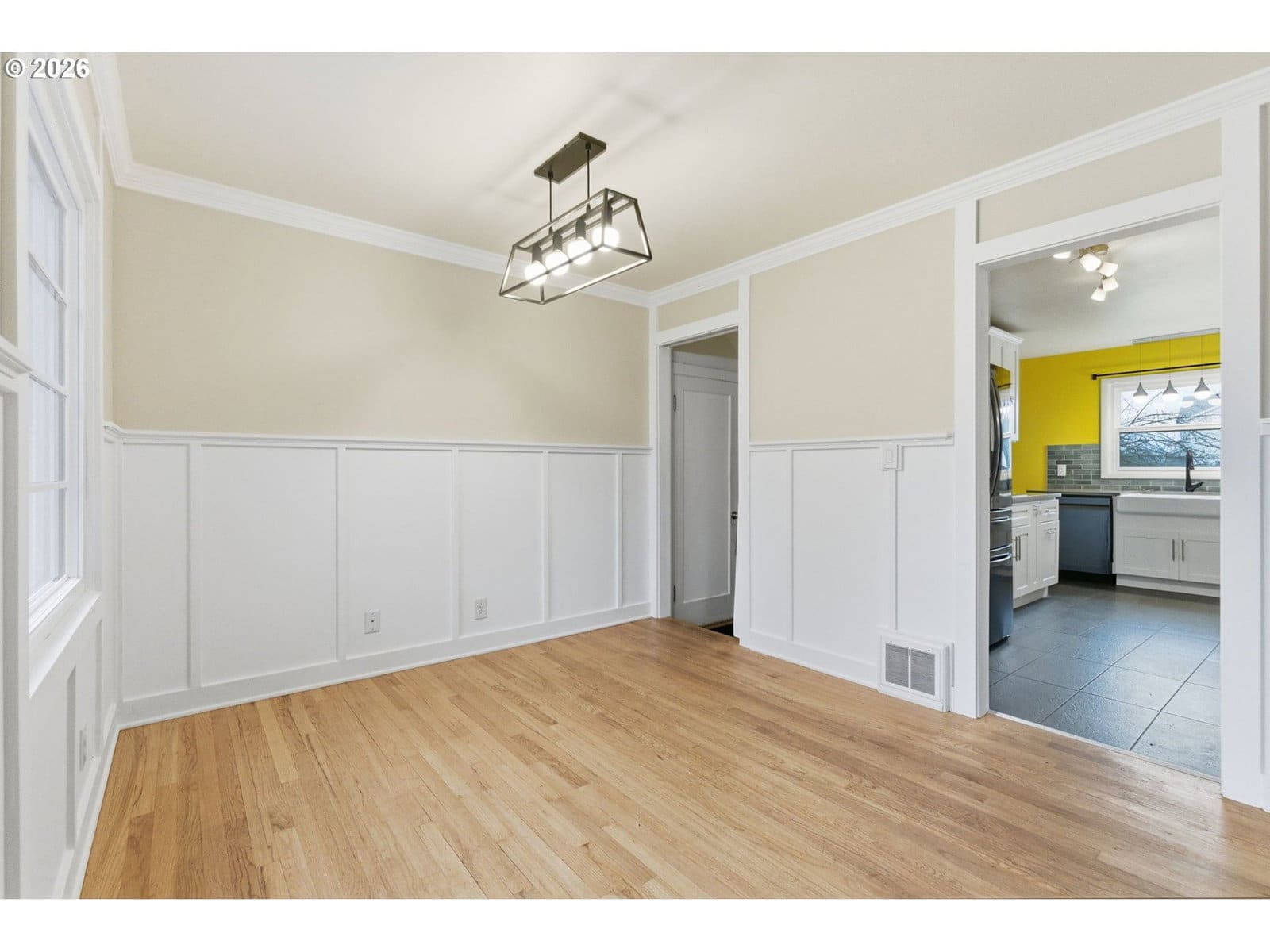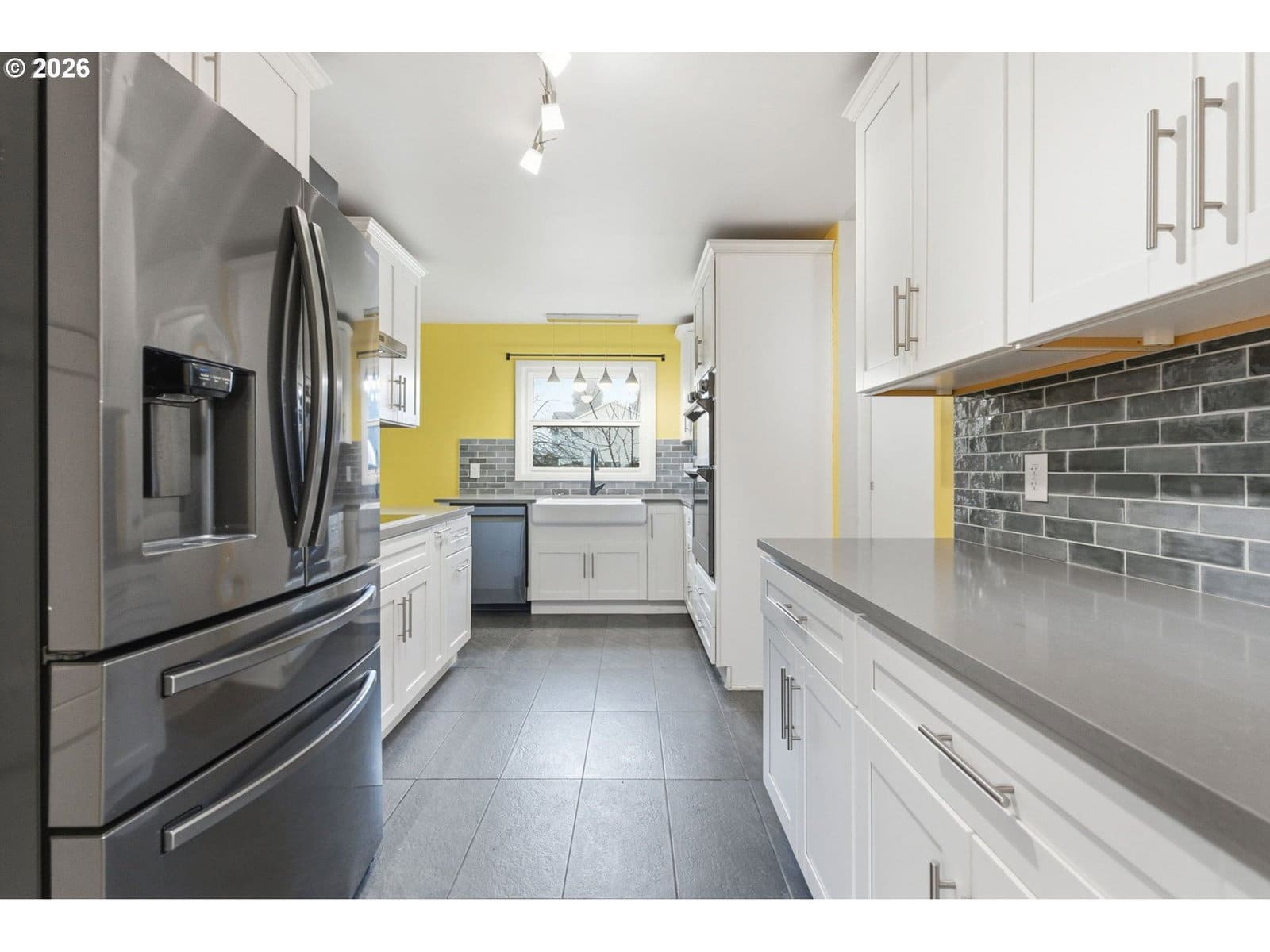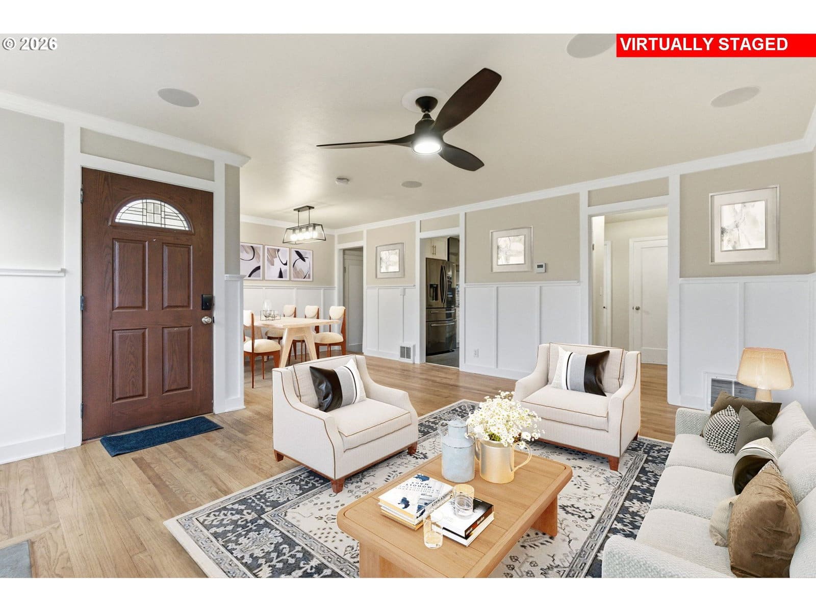 Beautifully updated Portland home where classic character meets modern upgrades. This well-maintained property offers timeless charm and thoughtfulimprovements throughout.The inviting living room is a standout with a cozy gas fireplace, custom mantel, built-in surround sound, and elegant wainscoting. The dining area continues the wainscoting detail, creating a cohesive and welcoming entertaining space. Gorgeous original hardwood floors flow throughout the main living areas. The home offers 3 bedrooms (3rd non-conforming), providing flexible space for a home office or guest room. The third bedroom includes hardwood floors, a walk-in closet, and its own mini-split for heating and cooling. The beautifully remodeled kitchen features abundant new cabinetry, quartz countertops, farmhouse sink with cup washer, tasteful backsplash, and slate floors. High-end stainless steel appliances include a French-style refrigerator, dishwasher, bi-oven, built-in microwave with convection and air-fry features, stylish rangehood, and a pantry. The bathroom has also been thoughtfully updated. A full basement offers excellent potential to build equity by finishing the space for additional living area, storage, home gym or Flex space. Major updates provide peace of mind, including a new roof and gutters (2024), triple-pane energy-rated windows (2023–2024), added attic insulation, updated electrical wiring (2024), all interior plumbing and a new water line from the street (2025), newer furnace and heat pump (2023–2024), electrical panel (2020), and gas fireplace(2023). The home is wired with Ethernet in most rooms and for security cameras. Additional features include an electric car charger, washer and dryer included, and a one-car garage. Outdoor amenities include a large covered patio, hot tub with cover, tool shed, garden area, fenced chicken coop, and fully fenced backyard. Zoned RML1 with potential to divide (buyer to verify). Move-in ready with future opportunity. LOVE WHERE YOU LIVE!! [Home Energy Score = 5. HES Report at https://rpt.greenbuildingregistry.com/hes/OR10183663]
