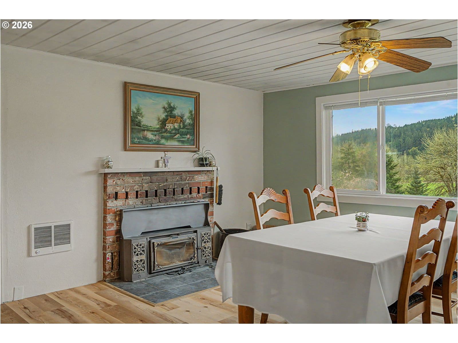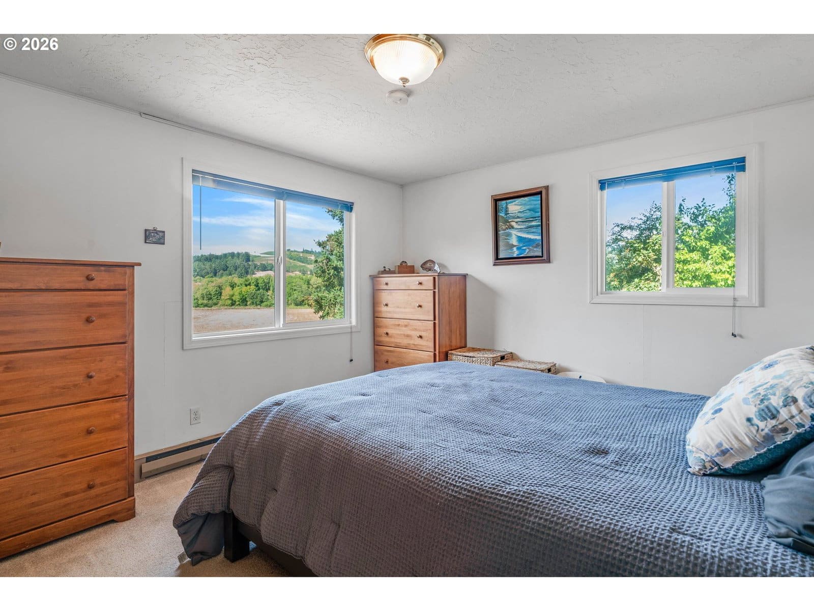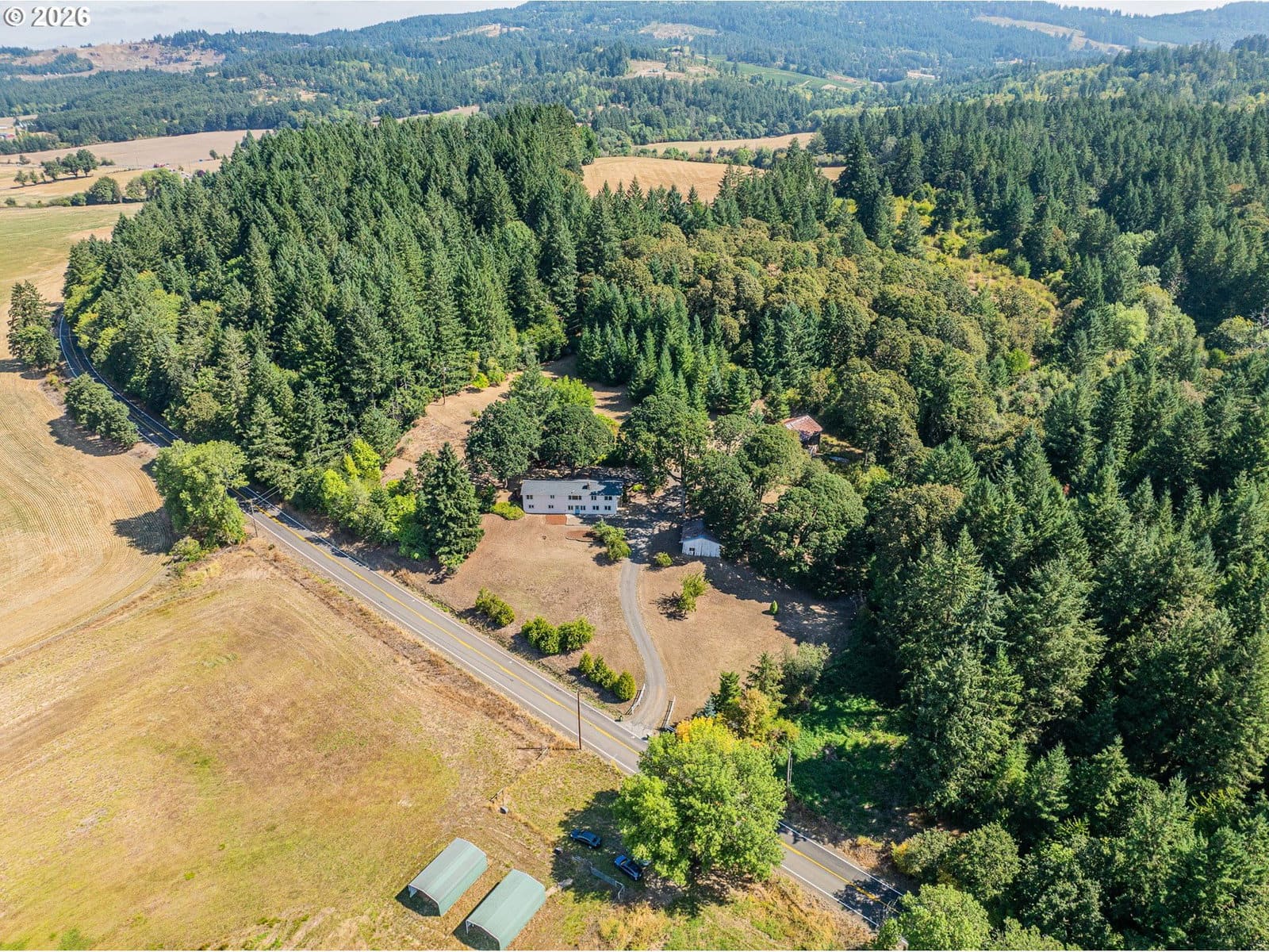 Nestled among the trees with breathtaking valley views, this 5-bedroom, 2-bath ranch-style home offers privacy, comfort, and versatility in the heart of Oregon wine country. Visitors often rave about the beautiful property, where you’ll find fruit trees, a fenced garden area, and abundant wildlife, from deer and owls to the occasional elk herd. Inside, the main level features a bright kitchen with adjoining dining area and cozy fireplace, a spacious living room, mudroom with separate entry, three bedrooms, and a fully updated hallway bathroom. The finished lower level is perfect for multigenerational living or rental income with its own entrance, full kitchen, living room with fireplace, two bedrooms, full bath, laundry, and storage. Two operating wells serve the property and can be switched, plus a secondary well can run independently. Enjoy seasonal creek views, 2 outdoor decks, nearby bird sanctuaries, and proximity to top wineries, Chehalem Ridge Nature Park, Bald Peak Park, and charming downtown Newberg—just 15 minutes away. Close to shopping yet offering serene country living, this property delivers space, beauty, and endless possibilities.