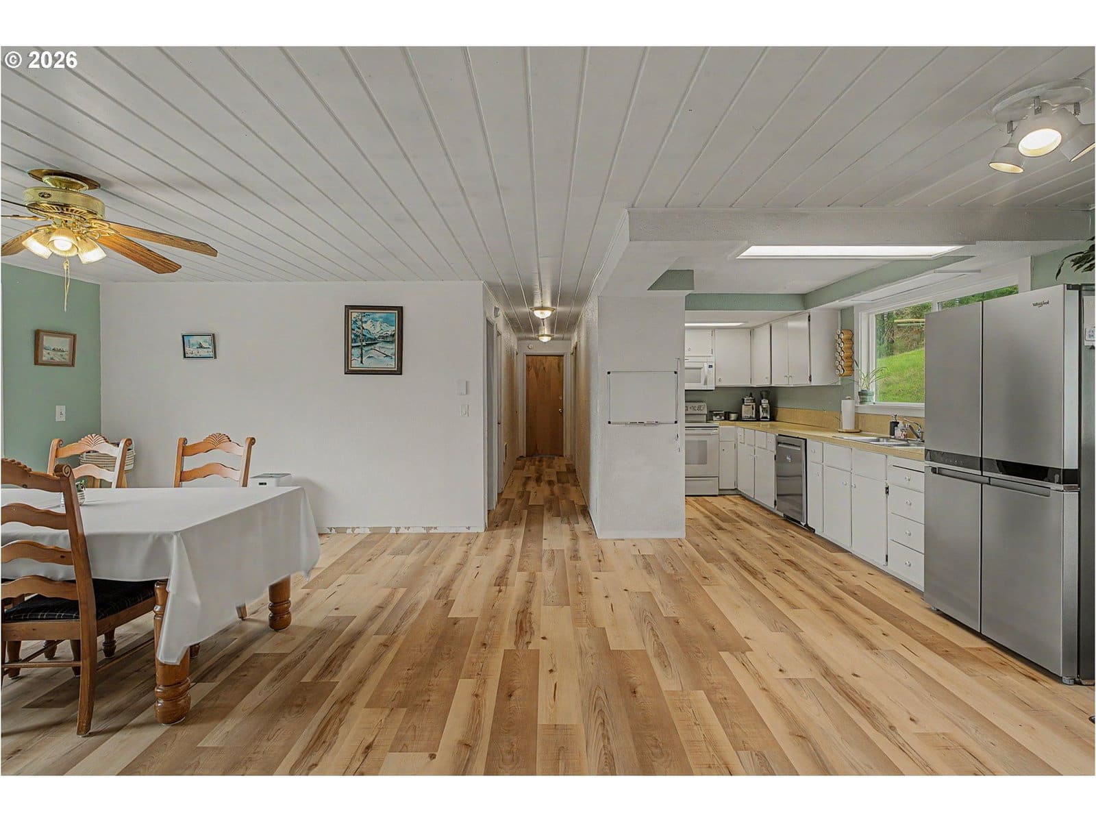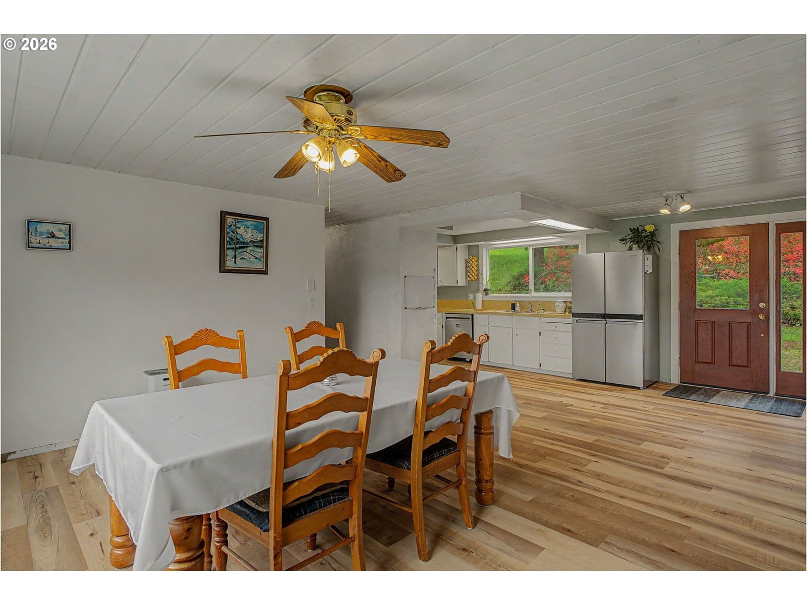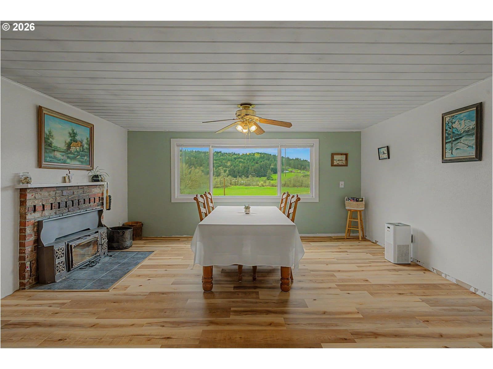 Nestled among the trees with breathtaking valley views, this 5-bedroom, 2-bath ranch-style home offers privacy, comfort, and versatility in the heart of Oregon wine country. Visitors often rave about the beautiful property, where you’ll find fruit trees, a fenced garden area, and abundant wildlife, from deer and owls to the occasional elk herd. Inside, the main level features a bright kitchen with adjoining dining area and cozy fireplace, a spacious living room, mudroom with separate entry, three bedrooms, and a fully updated hallway bathroom. The finished lower level is perfect for multigenerational living or rental income with its own entrance, full kitchen, living room with fireplace, two bedrooms, full bath, laundry, and storage. Two operating wells serve the property and can be switched, plus a secondary well can run independently. Enjoy seasonal creek views, 2 outdoor decks, nearby bird sanctuaries, and proximity to top wineries, Chehalem Ridge Nature Park, Bald Peak Park, and charming downtown Newberg—just 15 minutes away. Close to shopping yet offering serene country living, this property delivers space, beauty, and endless possibilities.