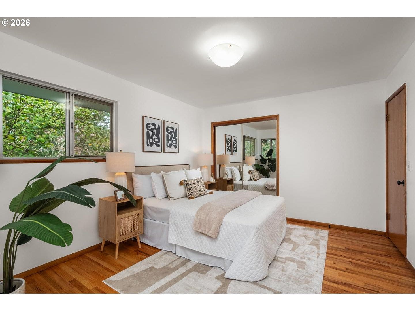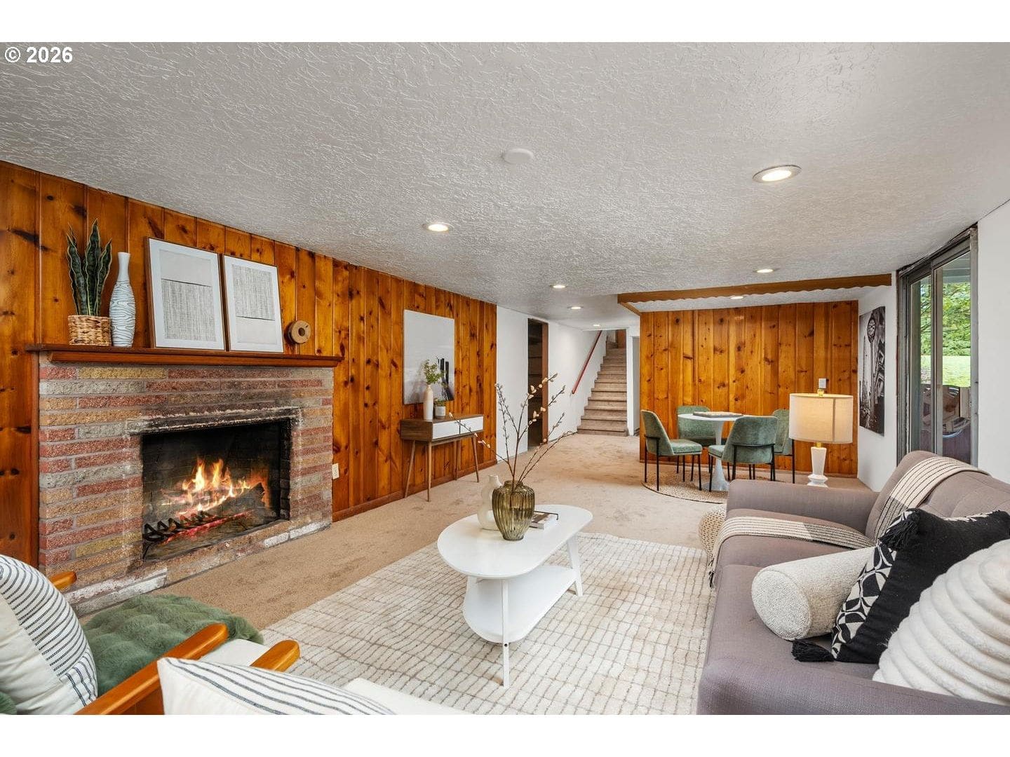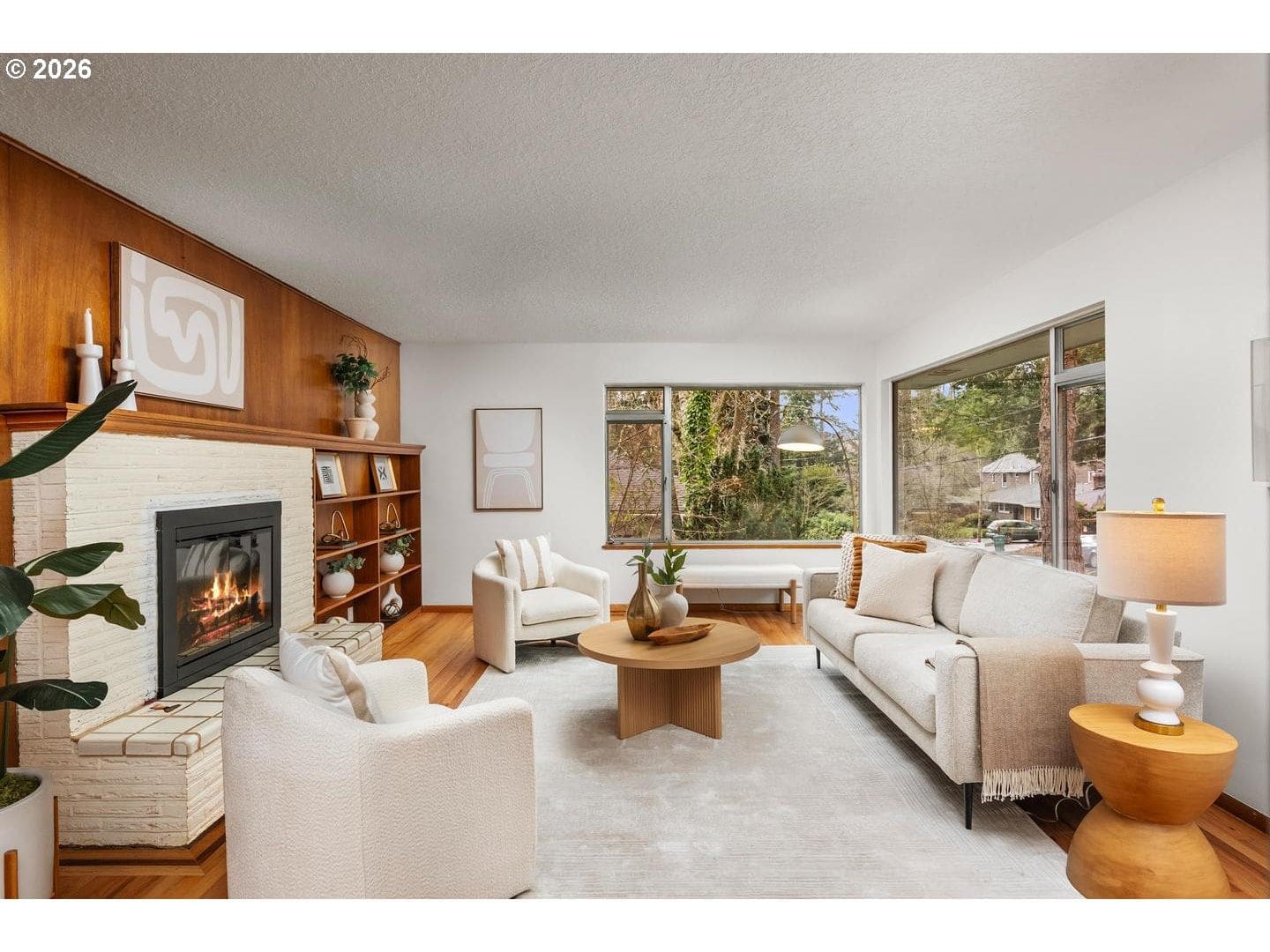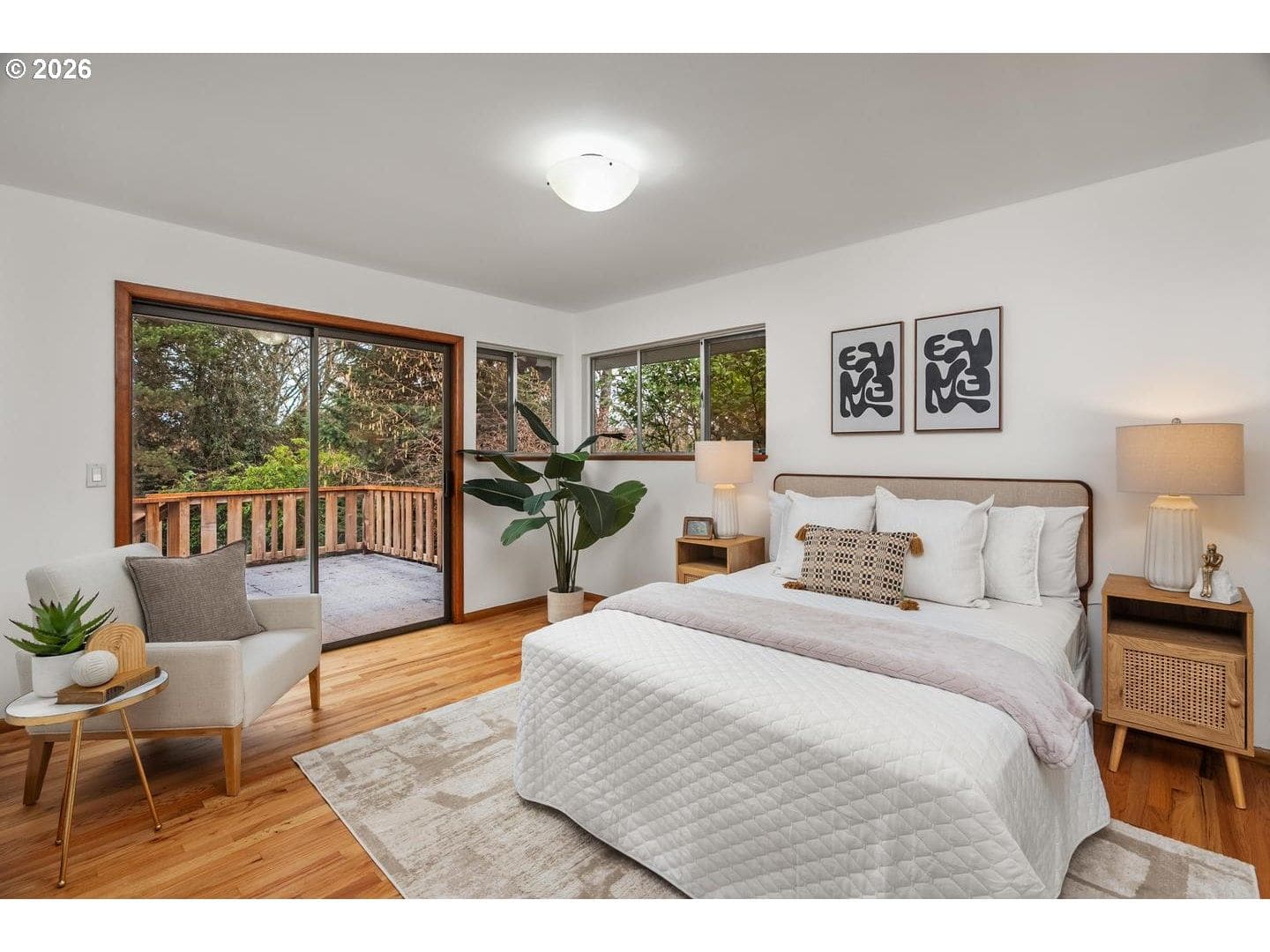 Remodeled, midcentury dayranch with huge, private yard in desirable Garden Home. Updated kitchen features soft-close cabinets, slab granite counters and stainless gas appliances. Remodeled main bathroom has updated two-sink vanity, tile floor and tile shower. Lower bath updated with stacked stone shower and pedestal sink. Spacious living room with big picture window and original midcentury bookcases. Extensive original hardwoods throughout living, dining, hallway and all bedrooms. New interior paint and family room carpet. Fantastic yard with deck, patio and expansive lawn. New architectural roof and gutters, December 2025.