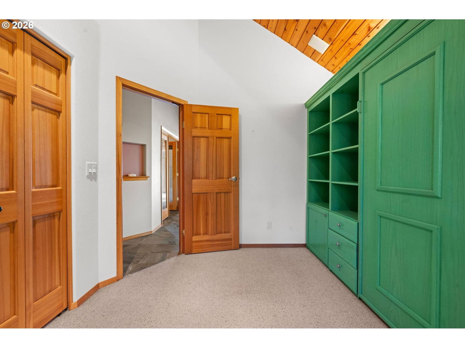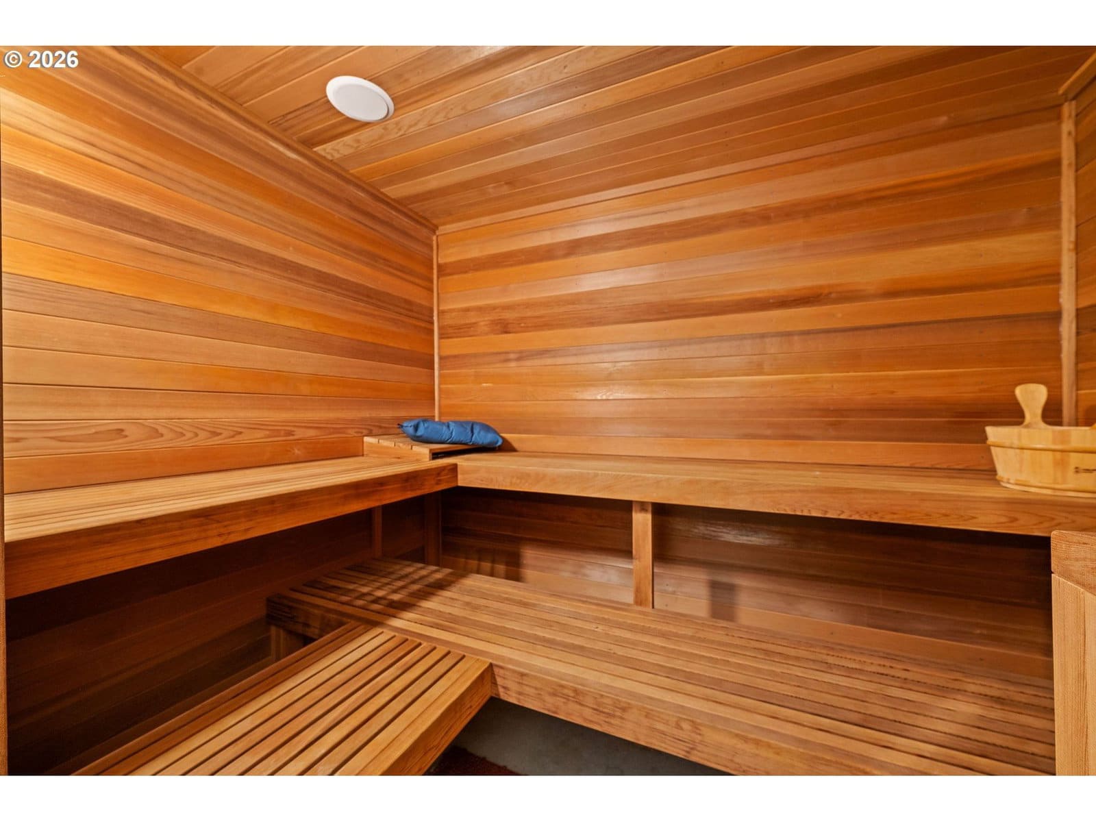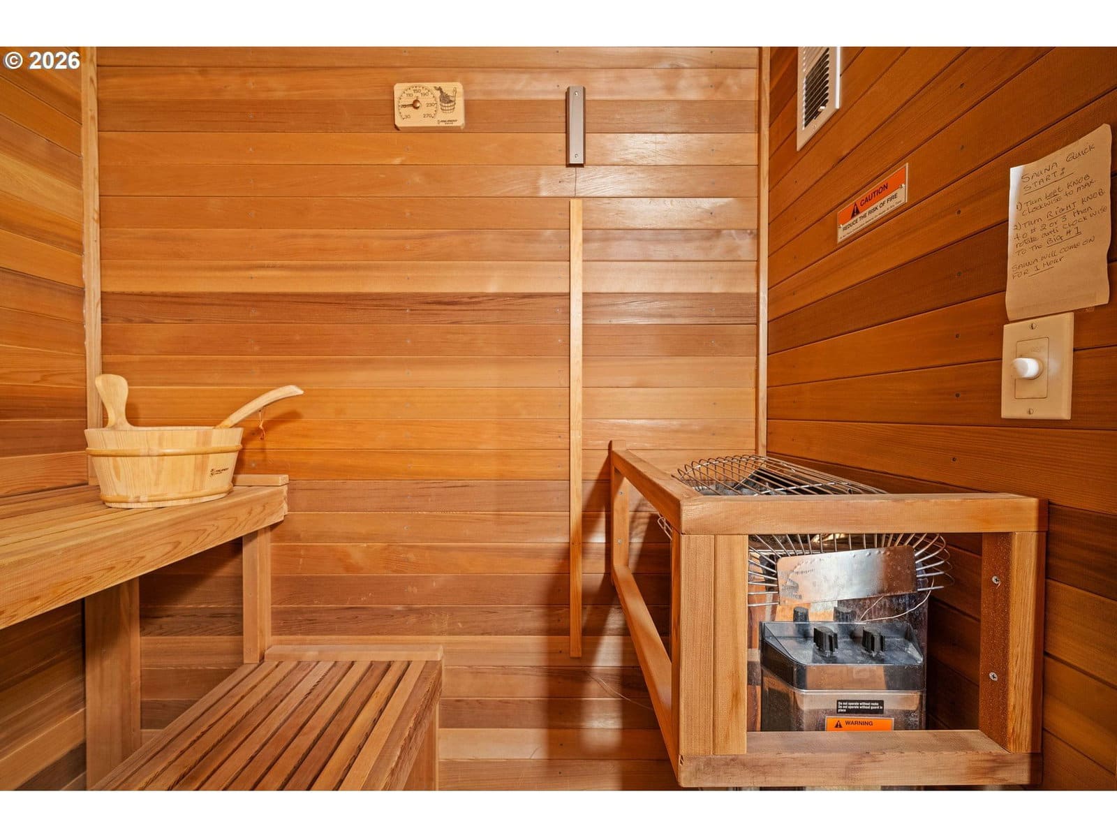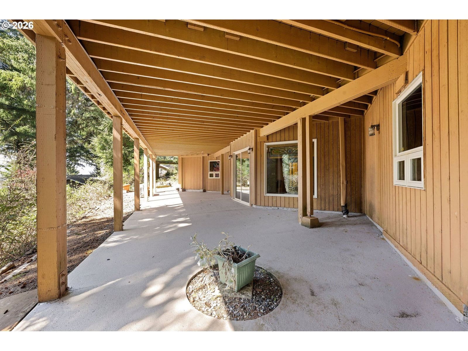 Step into this custom home where ocean views greet you. Vaulted knotty pine ceilings and expansive picture windows flood the space with natural light, seamlessly blending the indoors with the beauty outside. The main floor boasts two master ensuites and a full bath with a relaxing sauna. Versatile rooms with Murphy beds and built-in shelving invite endless possibilities, whether you dream of a craft room, home office, or a welcoming space for guests. The gourmet kitchen is equipped with high-end Viking appliances, while slate floors and a cozy fireplace create a warm, inviting atmosphere. Entertain on the sprawling ocean-view deck, complete with a hot tub and covered patio. Downstairs, a spacious family room an additional two bedrooms offer even more room to unwind. This secluded retreat sits on a generous lot, offering privacy and space to savor coastal living.