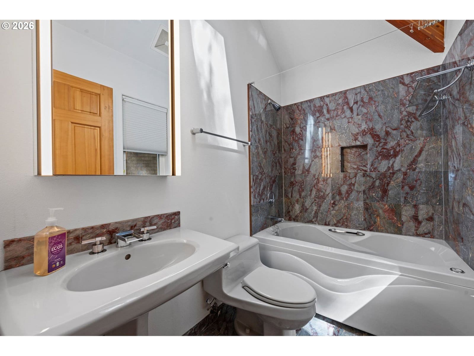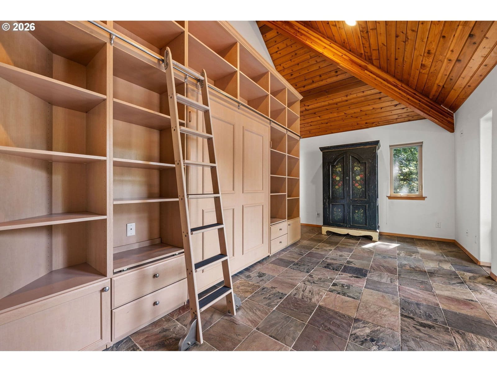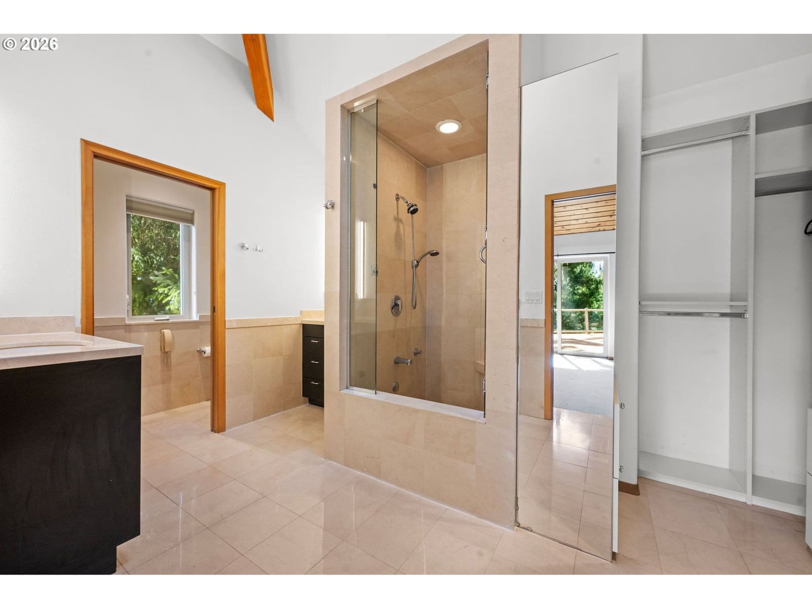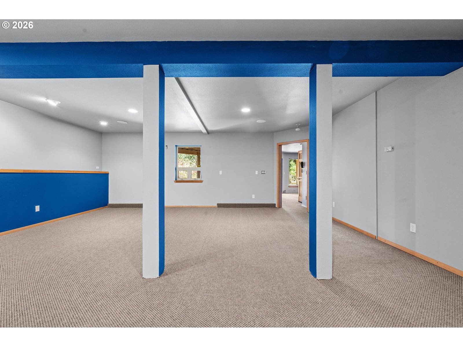 Step into this custom home where ocean views greet you. Vaulted knotty pine ceilings and expansive picture windows flood the space with natural light, seamlessly blending the indoors with the beauty outside. The main floor boasts two master ensuites and a full bath with a relaxing sauna. Versatile rooms with Murphy beds and built-in shelving invite endless possibilities, whether you dream of a craft room, home office, or a welcoming space for guests. The gourmet kitchen is equipped with high-end Viking appliances, while slate floors and a cozy fireplace create a warm, inviting atmosphere. Entertain on the sprawling ocean-view deck, complete with a hot tub and covered patio. Downstairs, a spacious family room an additional two bedrooms offer even more room to unwind. This secluded retreat sits on a generous lot, offering privacy and space to savor coastal living.