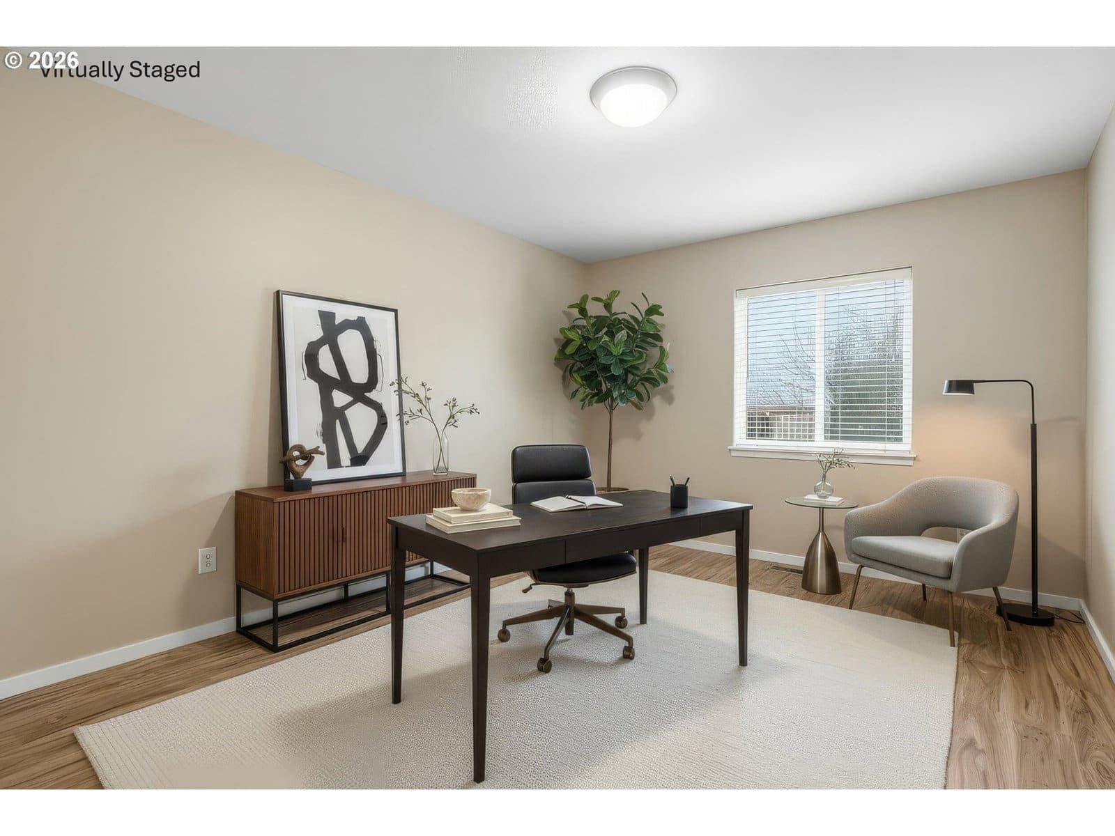 Step into your comfortable new home with all new floors and paint so it feels fresh and bright. The great room floor plan includes an open kitchen with stainless steel appliances and an island plus space for a table. This great room is warmed by the ambiance from the gas fireplace and will be a wonderful space to entertain. Spacious primary suite provides a peaceful place to relax. There is an alarm system wired in, for extra peace of mind. The low homeowner's dues provide for front yard maintenance. Rentals are allowed. Located approximately 1 mile from I-5 and shopping. Don't miss this fantastic value in a well maintained home!
