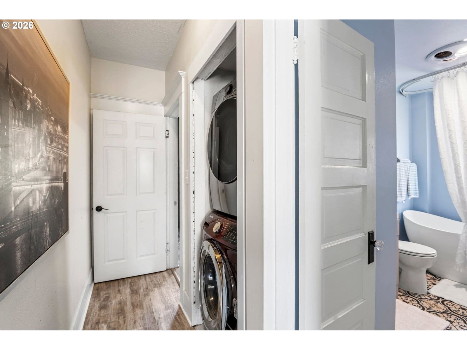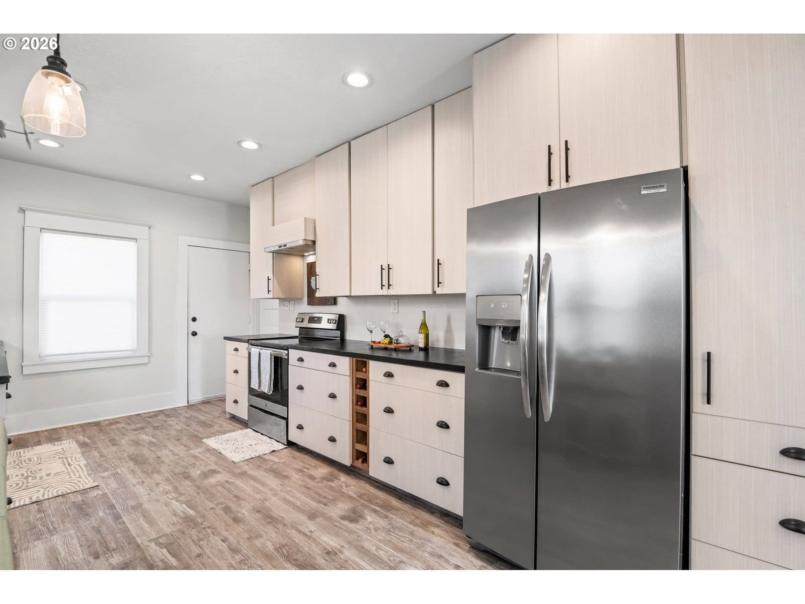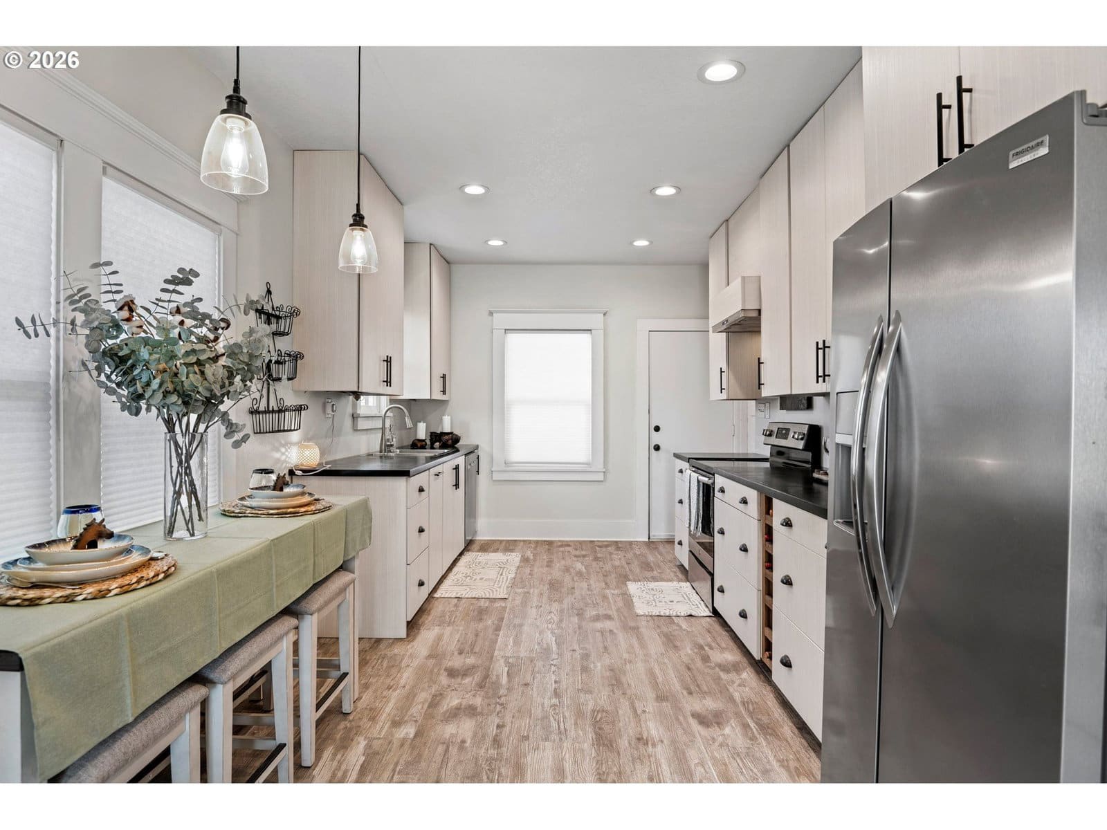 Beautifully updated 2-bedroom cottage offers a perfect blend of comfort and modern style. The home features a fully remodeled kitchen with new cabinetry and Corian counters. New waterproof luxury vinyl plank flooring throughout for durability and easy maintenance. The primary bedroom has been tastefully enhanced with crown molding and classic beadboard detailing, adding architectural character and a polished, upscale feel. The main bathroom includes a relaxing soaking tub, perfect for unwinding after a long day. The washer and dryer were relocated to the main floor for added ease. Outdoors, a lush bamboo-lined backyard creates an exceptional sense of privacy, transforming the space into a tranquil garden retreat, perfect for quiet mornings or intimate gatherings.