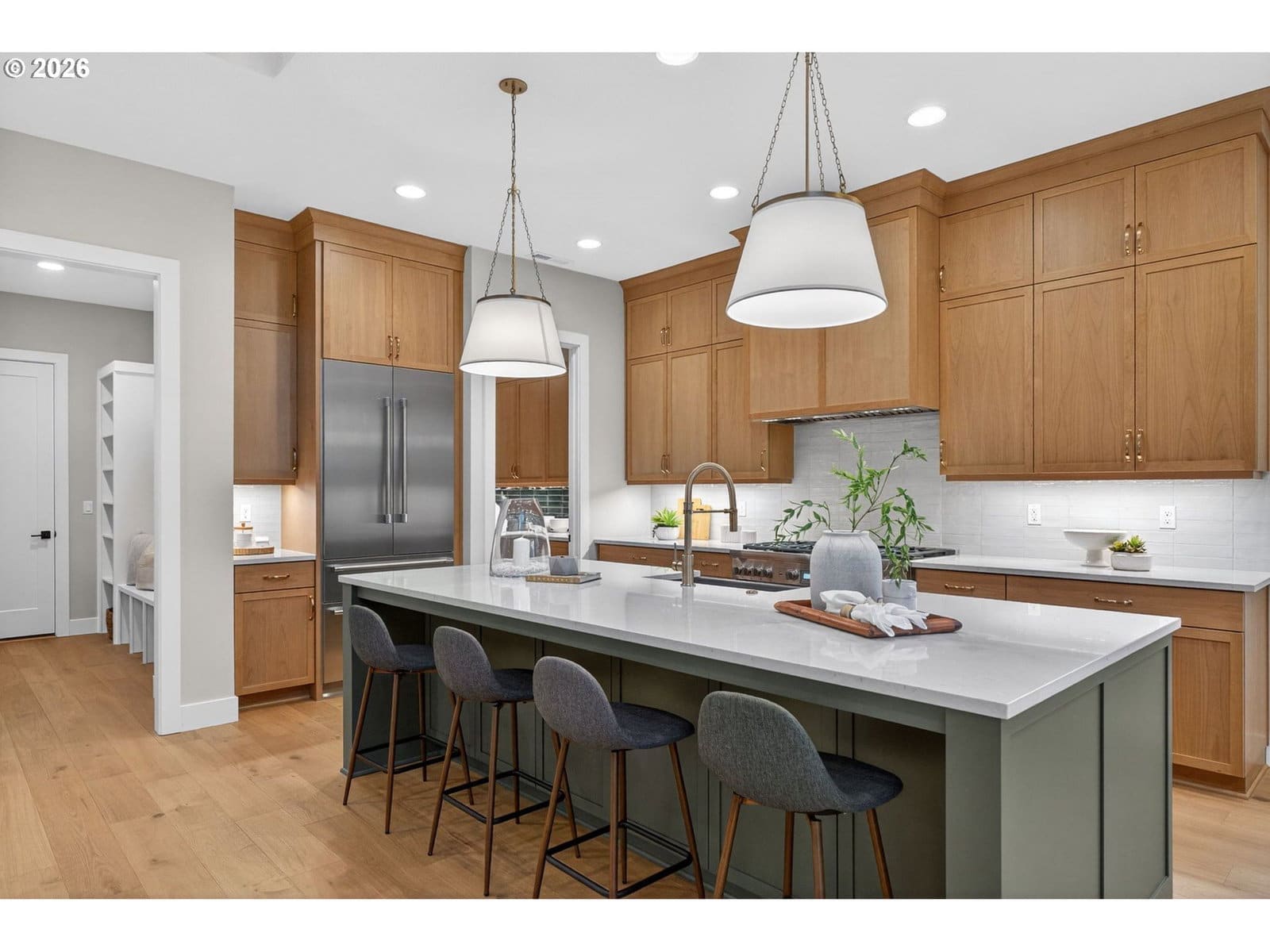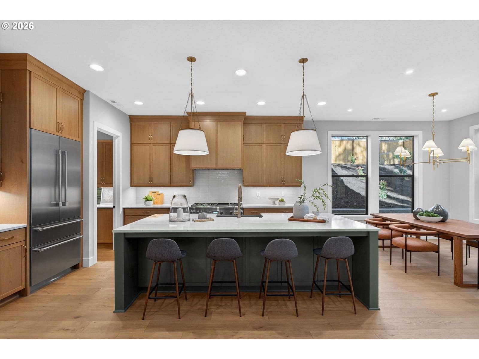 New custom home by Westwood Homes secluded and nestled on a private, charming, large lot in the Garden Home neighborhood. Thoughtful details, peaceful surroundings, and a setting that feels like a true escape - yet still close to everything you need. The great room showcases a gas fireplace with built in cabinetry and opens up to outdoor living for expansive entertainment. Covered outdoor living includes outdoor heaters and a stone fireplace. The gourmet kitchen is equipped with high-end Thermador stainless steel appliances, including a 48" gas range with cabinet hood, built-in microwave, built-in dishwasher, built-in fridge, with a large walk-in pantry with custom cabinets and plumbed for a second refrigerator. Primary suite is on the main with curb-less shower, tile flooring, access to outdoor living, and generous designer finishes, also plumbed for washer/dryer in the large walk-in closet. Bonus room upstairs has built in dry bar. JR suite upstairs has mud set shower. Additional bedrooms upstairs with walk-in closets. Three-car garage. EV/solar-ready, offering modern convenience and sustainability. Hot tub pre-wired. Generator hook up. Additional concrete parking. Driveway and landscape lighting. Fully landscaped and flat, useable, fully fenced and private rear yard. House is move in ready!