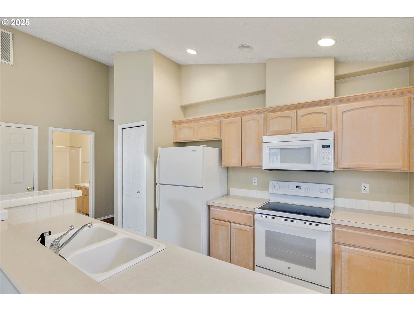 Located in the desirable Cascadia Village neighborhood, this well-appointed 3-bedroom, 2-bath home offers an open and inviting floor plan with tall, vaulted ceilings and laminate flooring throughout the main living areas. The spacious great room features a sliding glass door that opens to the backyard. The kitchen includes an eat-bar, built-in microwave, refrigerator, and is open to the dining area—ideal for everyday living and entertaining. The primary bedroom suite offers a walk-in shower and double closets for added storage. Outside, enjoy a fully fenced, low-maintenance backyard, perfect for relaxing or easy upkeep.