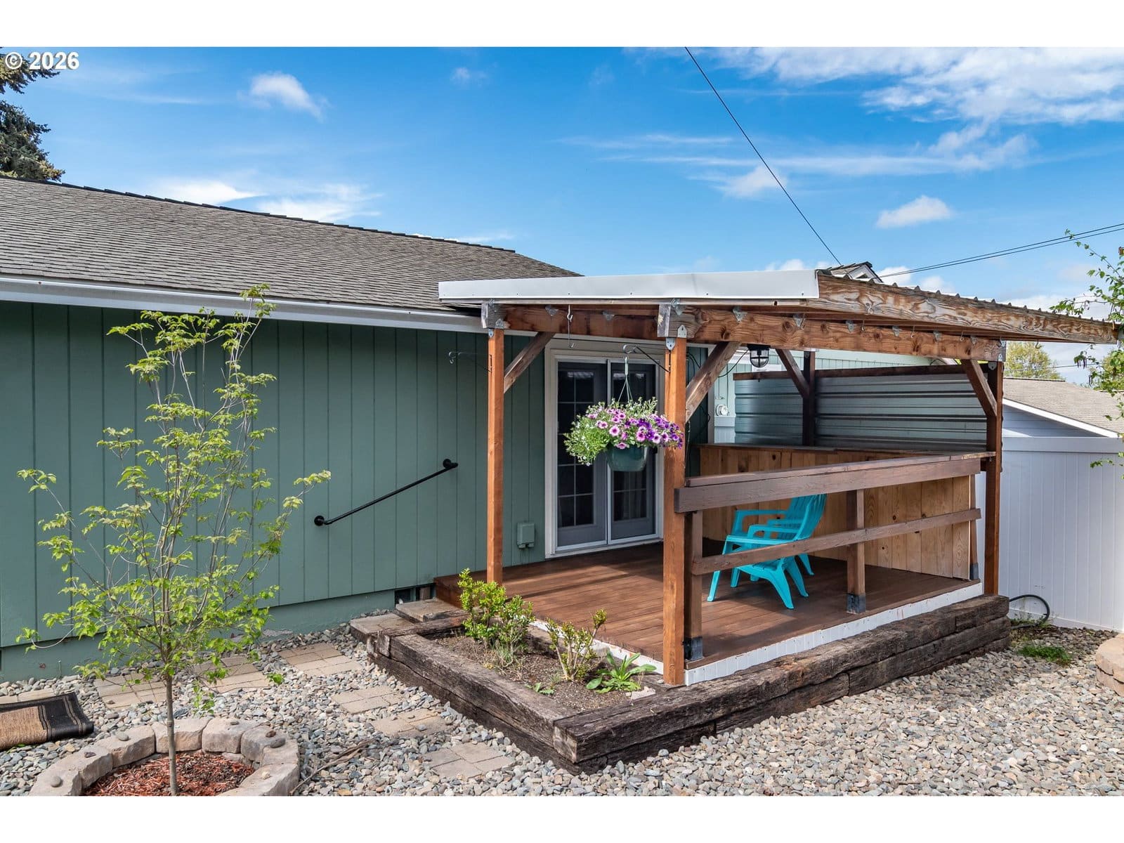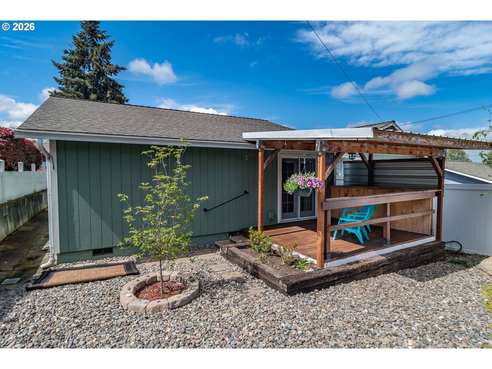 Charming move-in ready 3-bedroom condo tucked into a quiet neighborhood. HOA is $325/month and includes water, sewer, garbage; exterior yard maintenance, pest control as well as exterior maintenance/repair/replacement on roof, gutters, and garage doors. Easy-care laminate flooring runs throughout the home. The kitchen features stainless steel appliances. The primary bedroom offers a walk-in closet and french doors that open to a private covered deck and vinyl-fenced backyard—perfect for relaxing or entertaining. Detached extra-deep garage with workbench and storage. The driveway offers tandem parking, providing additional convenience.