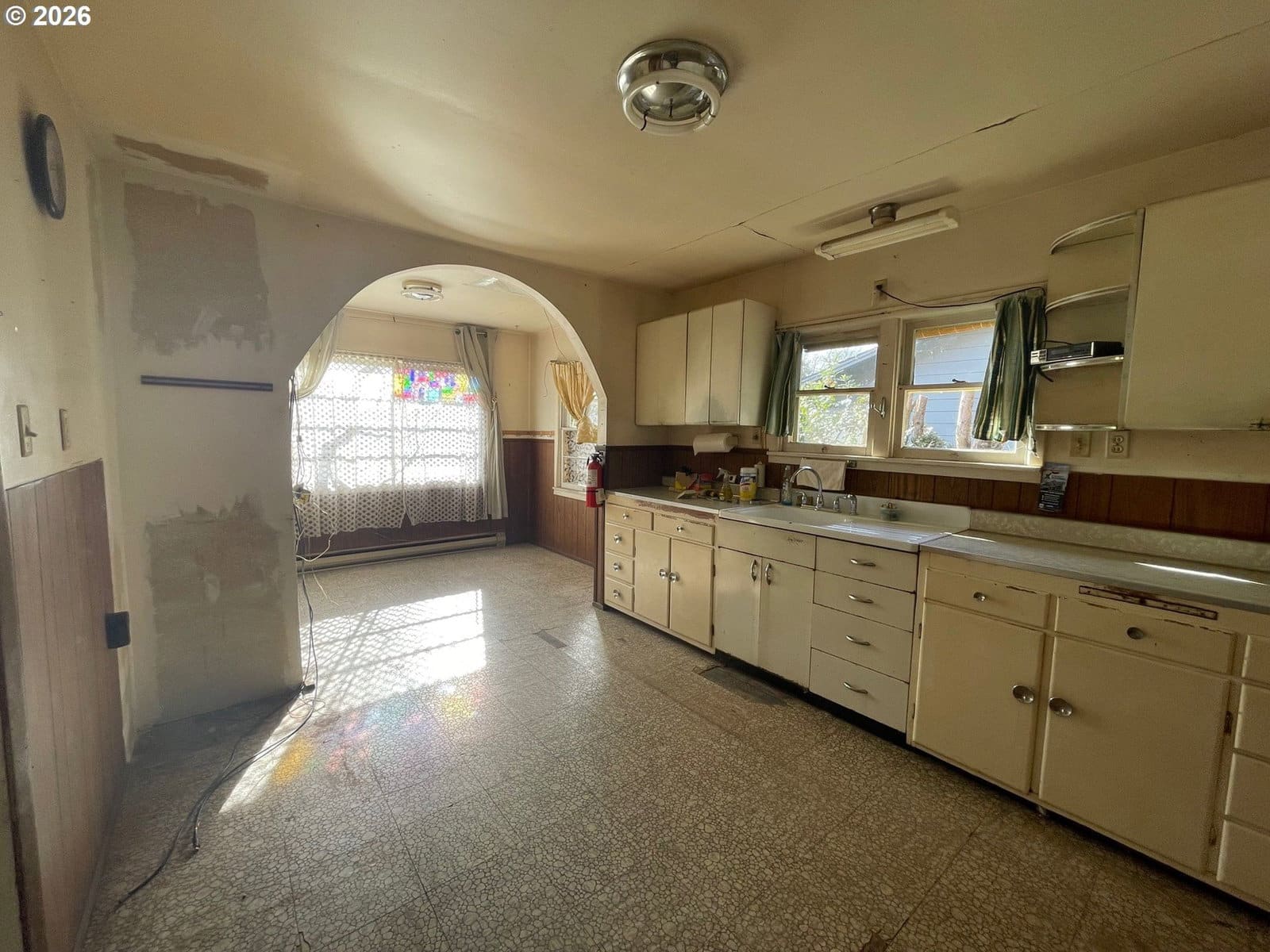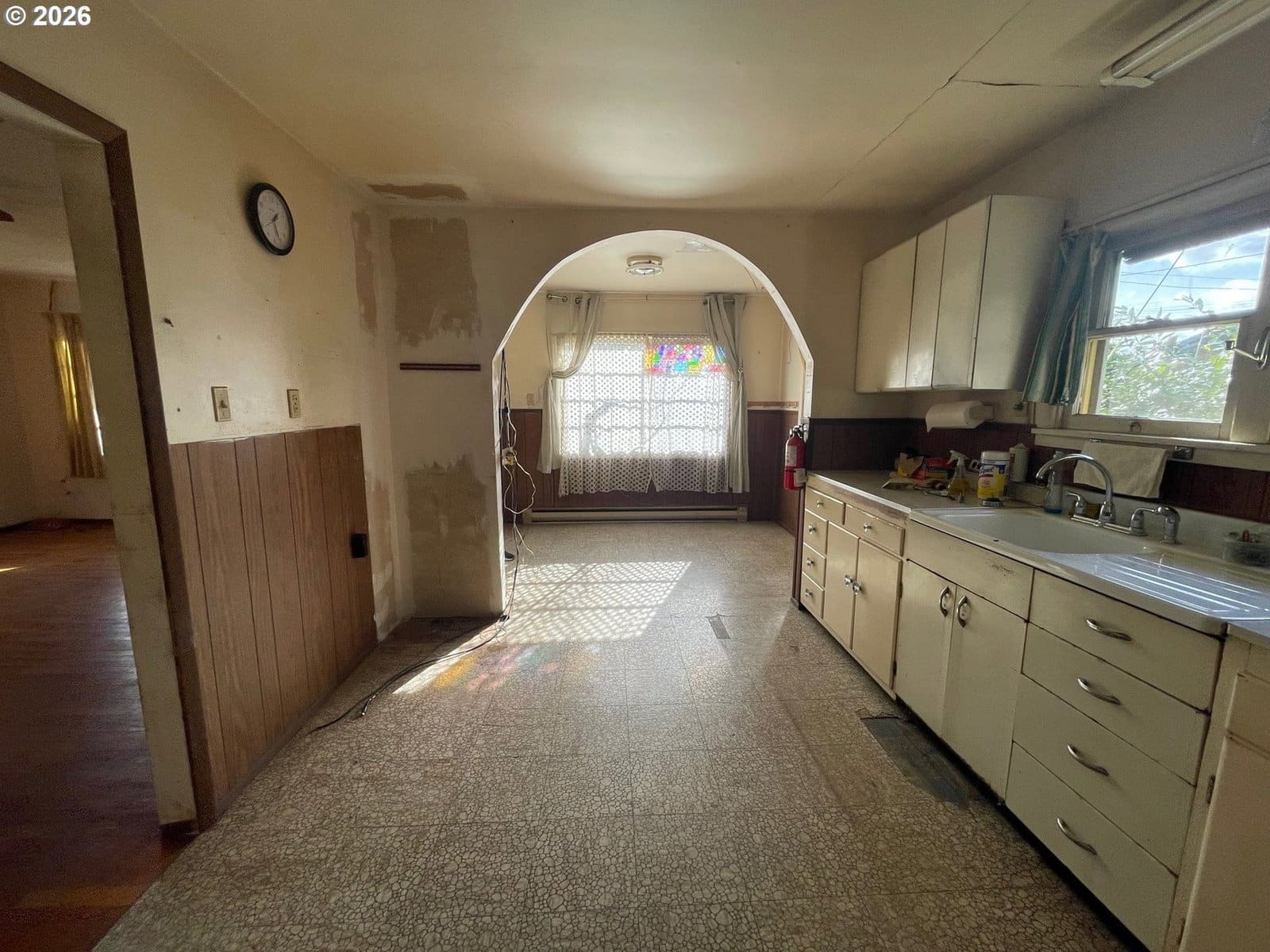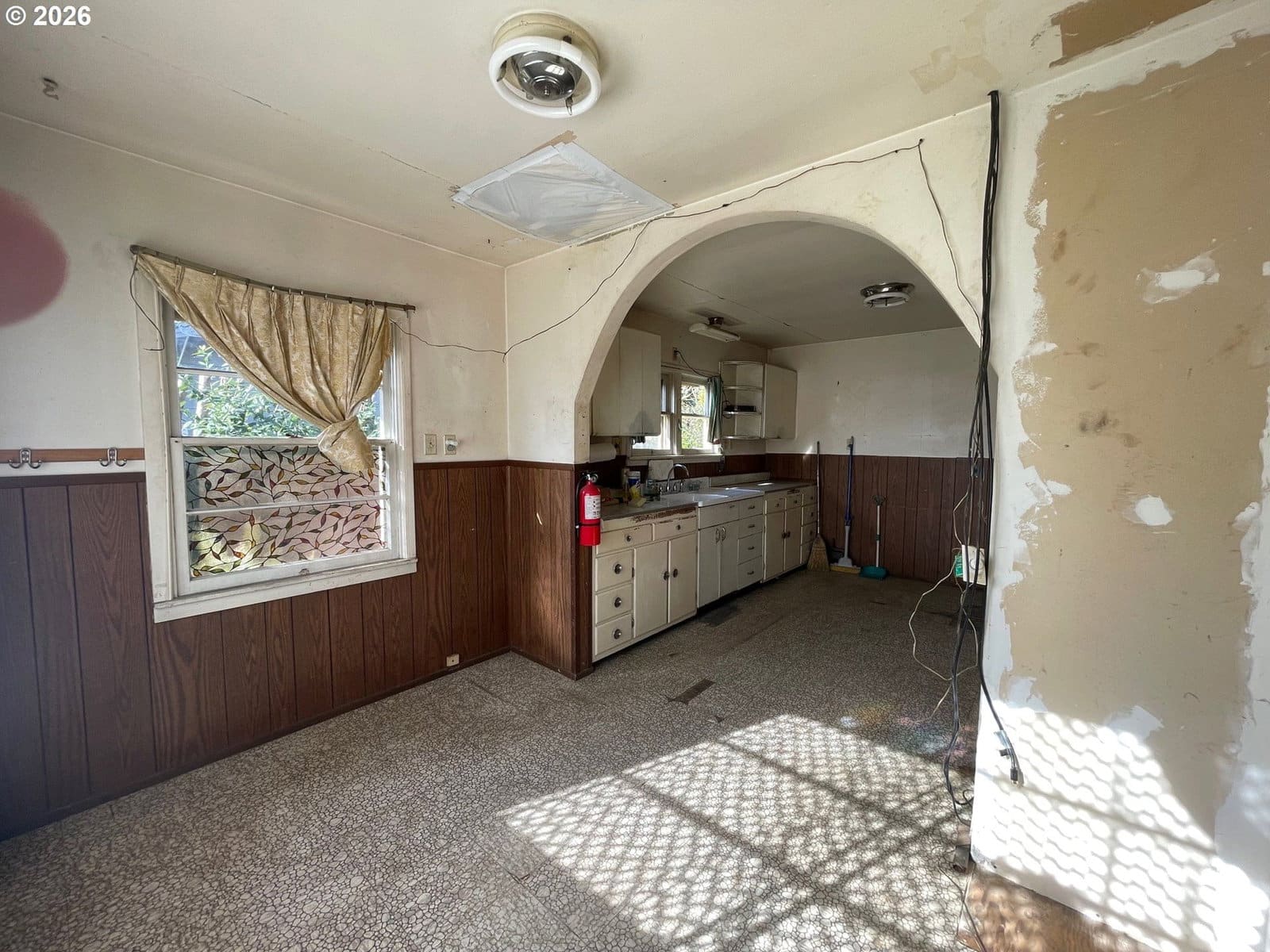 Solid vintage fixer boasting a NEW roof and gutter system located in an a super tidy west Eugene neighborhood featuring classic elements like wood floors and an arched dining room doorway but needing a complete rehab to shine!