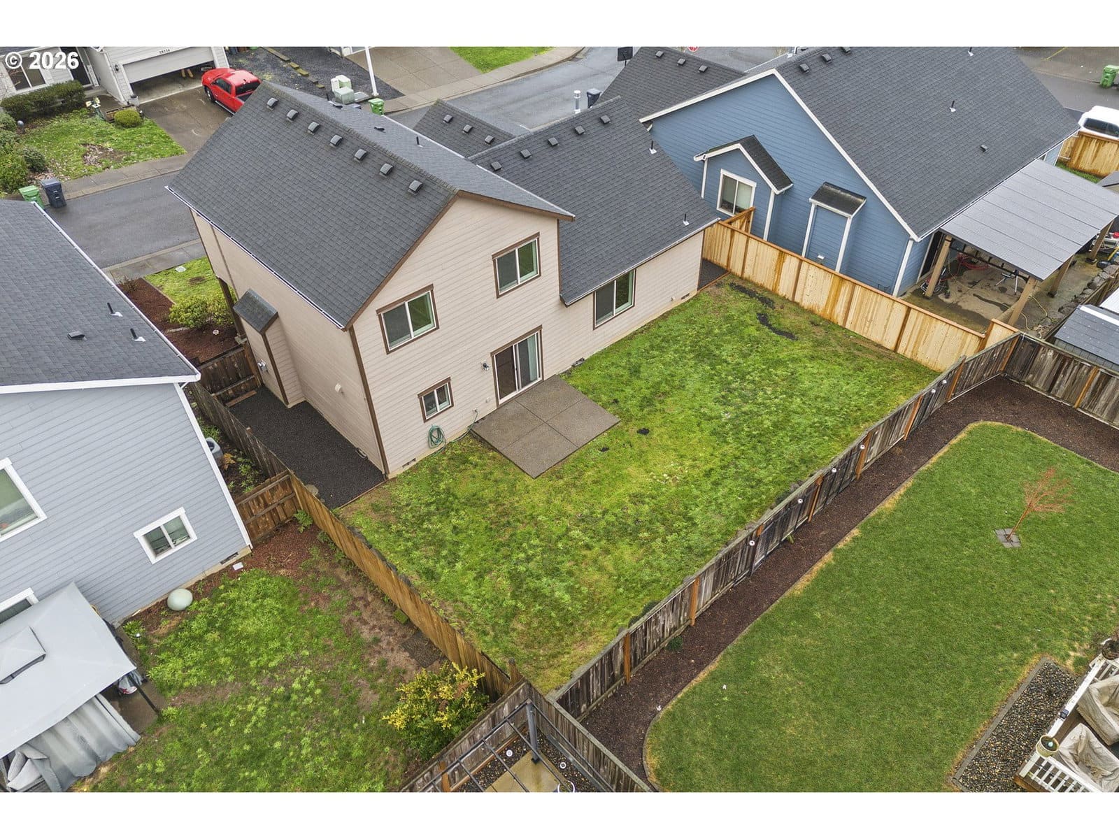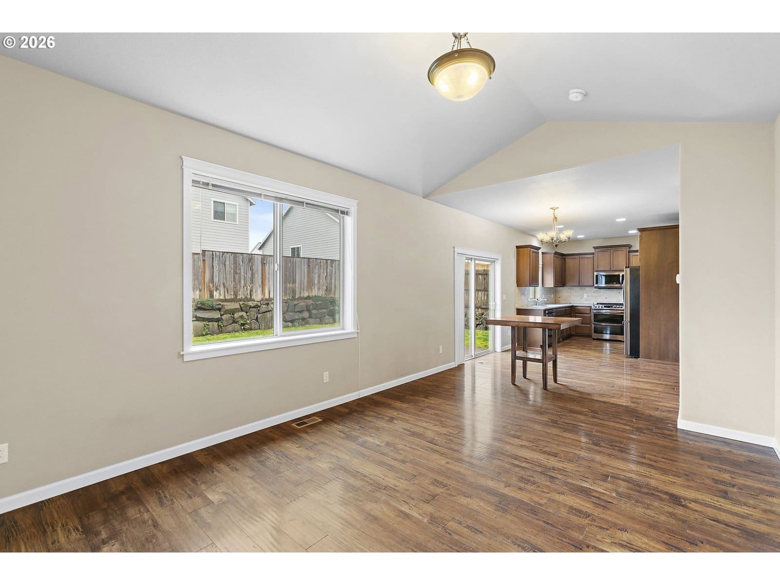 Tucked away on a quiet private street, this 3-bedroom, 2.5-bath home offers 1,541 sq ft of thoughtfully planned living space designed for both comfort and functionality. Built in 2015 and recently refreshed with brand-new carpet, this home is truly move-in ready.Upon entry, you’re welcomed into a separate living room featuring a gas fireplace, creating a cozy and inviting space to unwind. The heart of the home is the open family room, kitchen, and dining area, ideal for gathering and entertaining. The kitchen showcases granite countertops, LG stainless steel appliances, generous cabinetry, and convenient access to the backyard. Laminate flooring on the main level provides durability and continuity throughout the space. A main-level laundry room and half bath add everyday convenience.Upstairs, the vaulted primary suite offers a relaxing retreat with a walk-in closet, double vanity, and walk-in shower. Two additional bedrooms and a full bath provide flexibility for guests, work-from-home needs, or hobbies.Step outside to a spacious, fully fenced yard with patio, perfect for summer evenings, pets, or play. Additional features include air conditioning, a 2-car garage, and a peaceful setting while remaining close to everyday amenities.Comfort, flow, and location come together seamlessly in this well-cared-for home.